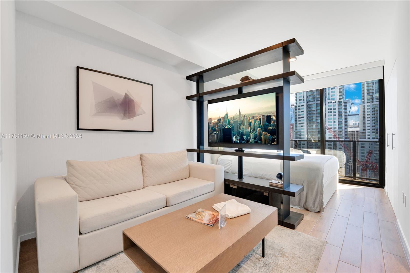iscover luxurious living in the heart of Miami , a fully furnished residence offering breathtaking views of Biscayne Bay and the Miami skyline. This modern unit boasts floor-to-ceiling windows and a 9’2” ceiling height, seamlessly blending natural light with its elegant interior design.Spacious Balcony: Soak in stunning water and city views. Porcelain Wood-Grain Tile Flooring: Beautiful and durable throughout the unit. Custom Italkraft Kitchen Cabinetry: Italian design paired with quartz countertops for a sleek, functional space. Frigidaire Stainless Steel Appliances: Includes a built-in microwave and more. Smart Features: Ecobee thermostat, smart keyless entry, and pre-wiring for high-speed communication and entertainment systems. Convenience: Built-in full-size washer and dryer.