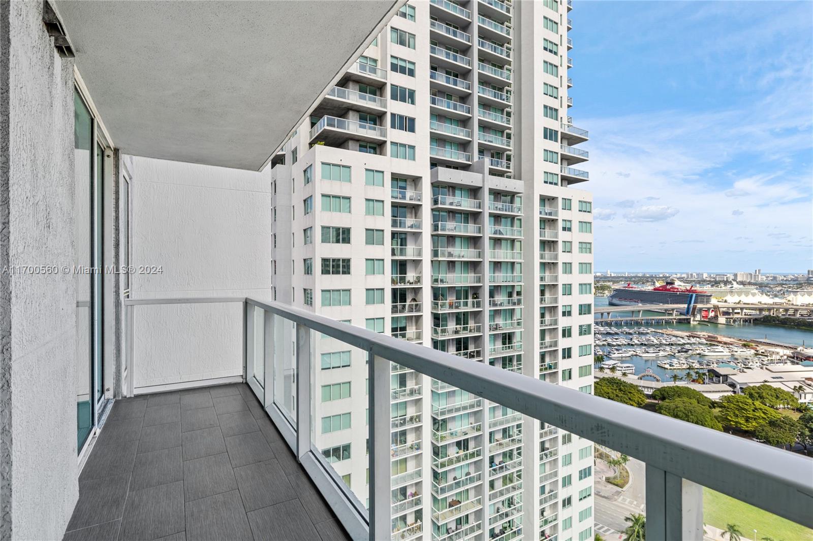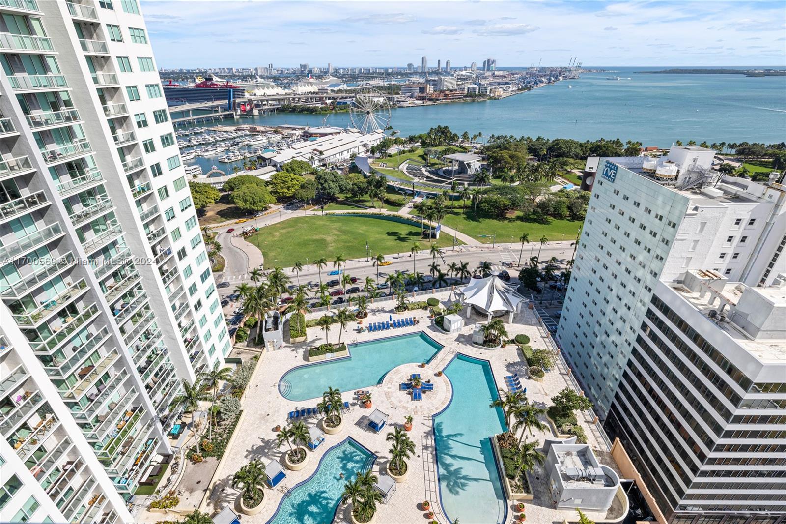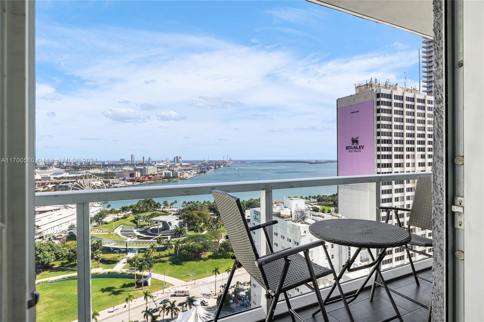 Welcome to this stunning waterfront 1-bedroom, 1-bath residence on the 24th floor of the luxurious Vizcayne South Tower. Enjoy incredible sweeping views of Biscayne Bay and Miami Beach from your spacious private terrace. The unit boasts 9 ft ceilings, floor-to-ceiling windows, and elegant white glass porcelain floors throughout. You'll love the contemporary light fixtures, marble bath and shower, and a European-style kitchen equipped with stainless steel appliances. This amazing residence also includes a walk-in closet and comes with 1 assigned parking space. The Vizcayne building offers first-class amenities, including a state-of-the-art fitness center, a full-service spa, four luxurious pools, a jogging track, a party room, conference rooms, valet service, and much more.