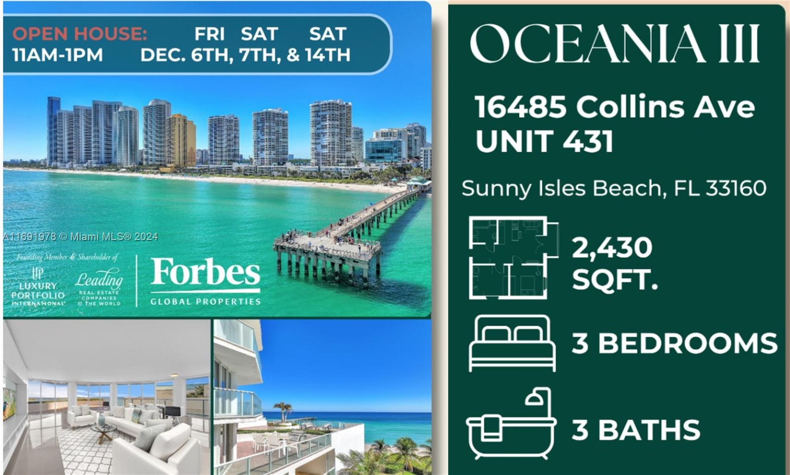 16485 Collins Ave-(direct Ocean View Corner), Unit 431, Sunny Isles Beach, FL 33160