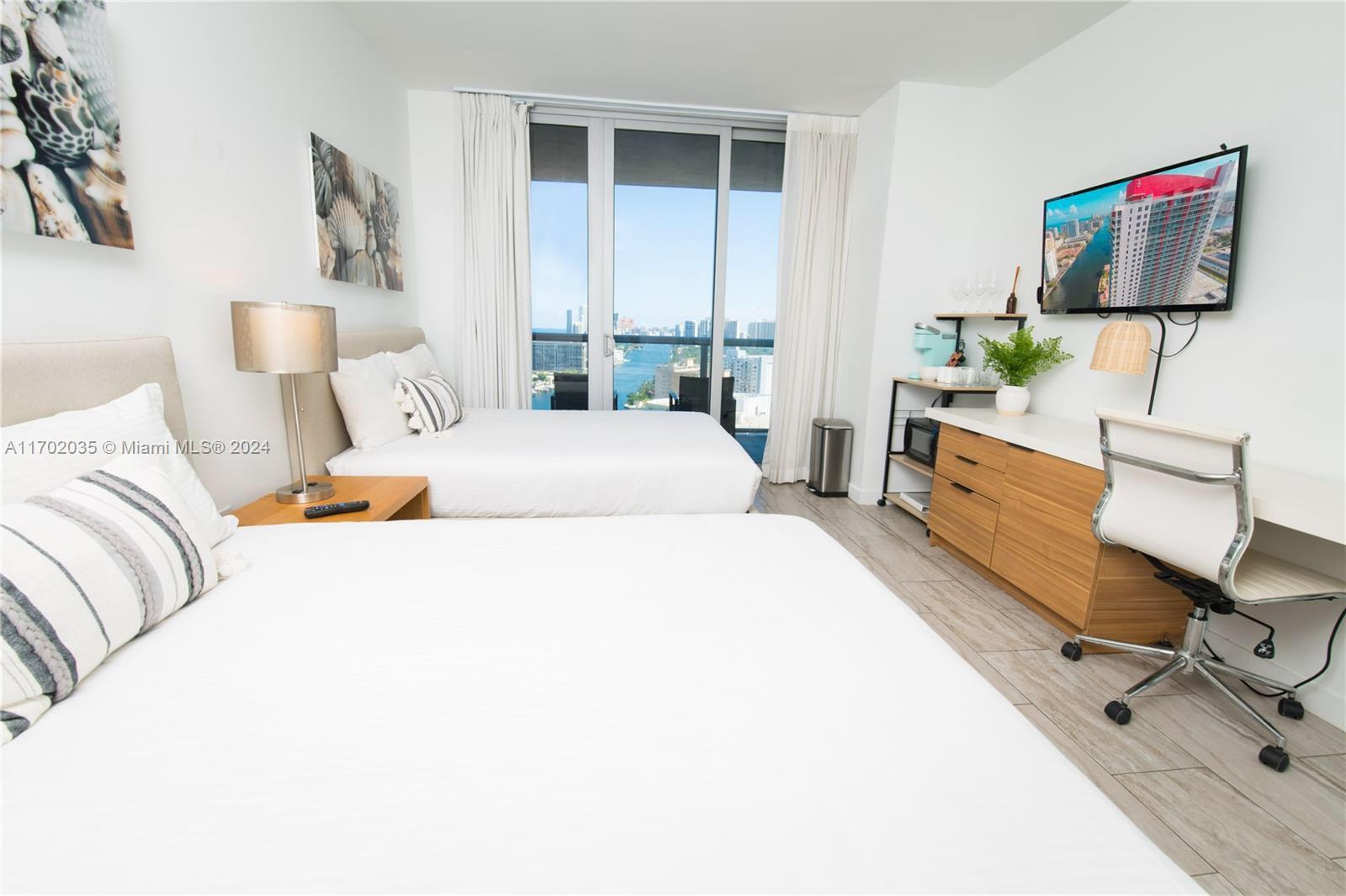 Best Price In The Area! Surreal SOUTH views to the Intracoastal w/ views of the ocean & bay. Views of Sunny Isles skyline from balcony. This turnkey unit is located at the Beachwalk Resort. Unit #1809 is a Fully furnished 2 Bedroom, with the capacity for Short Term Rentals. Building amenities include a private rooftop for owners only, garage parking, complimentary shuttle to the beach, pool, fitness center, & restaurant w/ intracoastal views. The unit can be rented daily via Airbnb/VRBO/Booking w/ no rental restrictions. The 2 bd has 2 separate entrances; 1 to side A (1 bed /1 bath apartment w/ balcony) & 1 to side B (studio suite w/ private balcony). The unit can be rented together or individually! Call Now for a showing or more info.