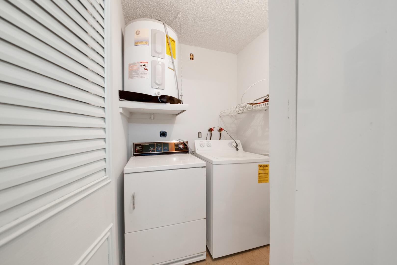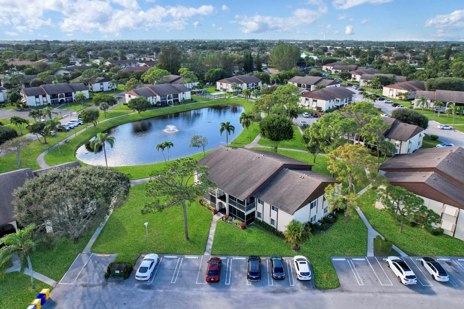 Enjoy this lovely 1 bedroom 1 bath condo located in this quaint community of La Pinata. Located on the First Floor with a Lake View this spacious corner unit has an open floorplan and includes: interior laundry room with full size Washer & Dryer, walk-in Pantry/Storage, fresh Paint in living area, Screened Porch, Walking Paths and much more. This friendly 55+ community is centrally located near shops, medical, Turnpike and I-95.