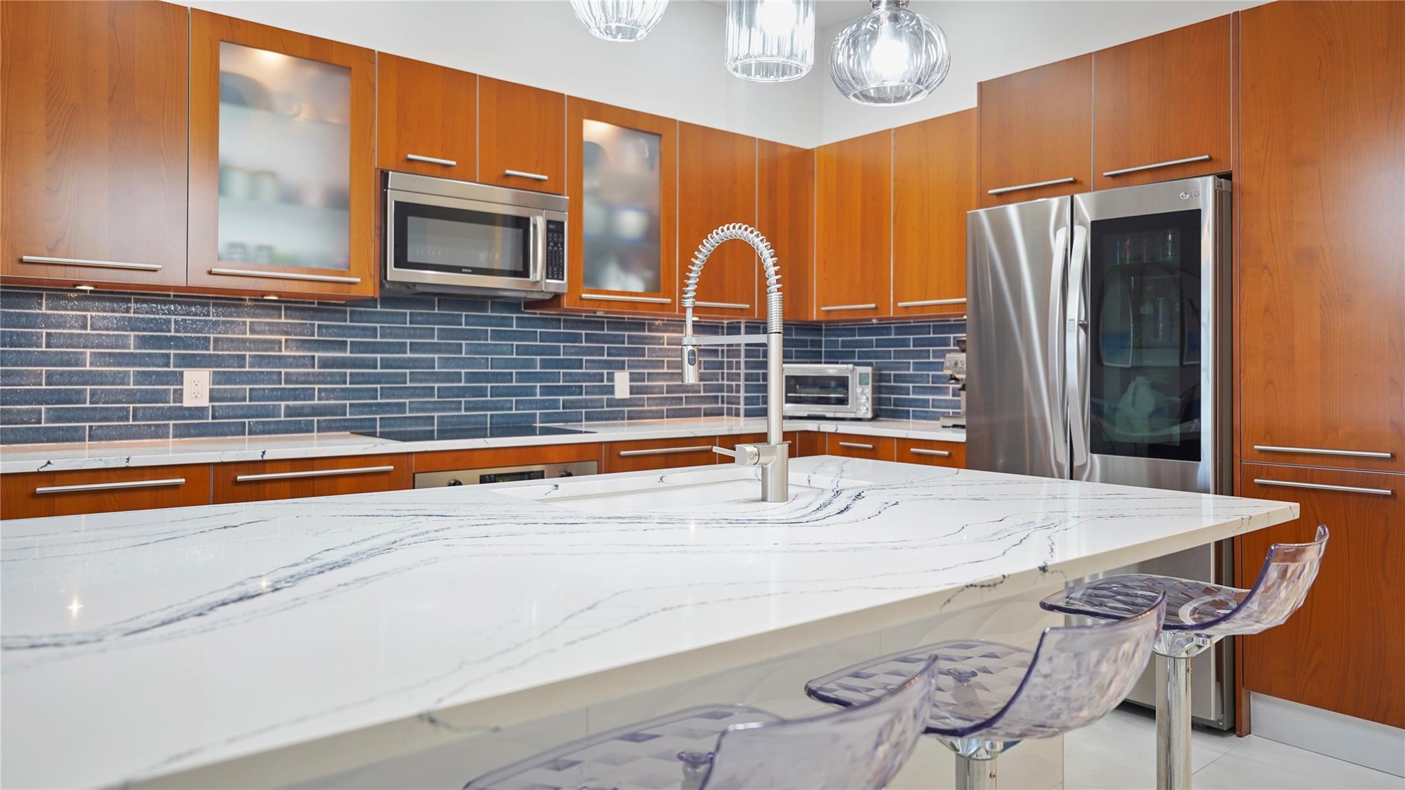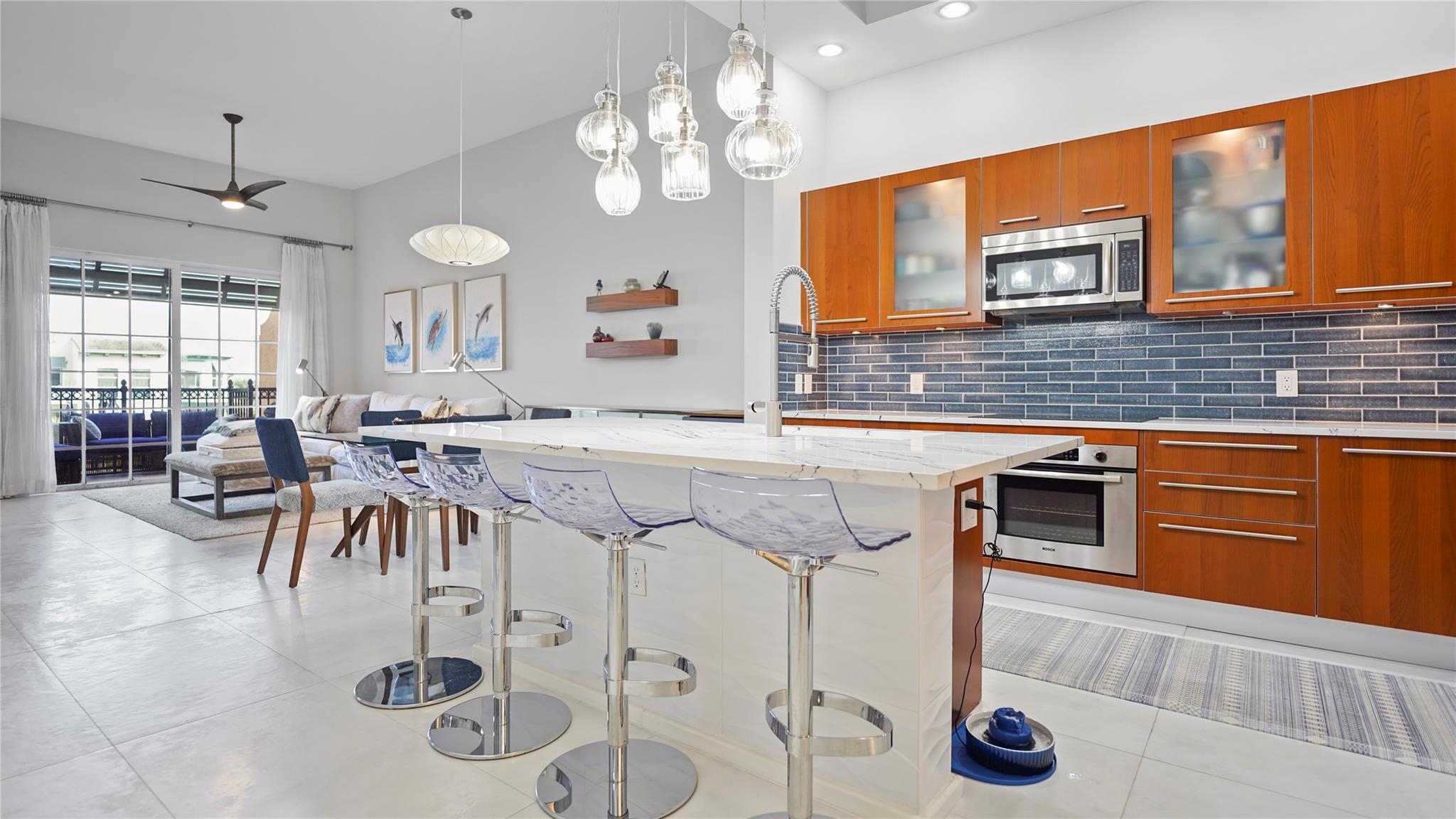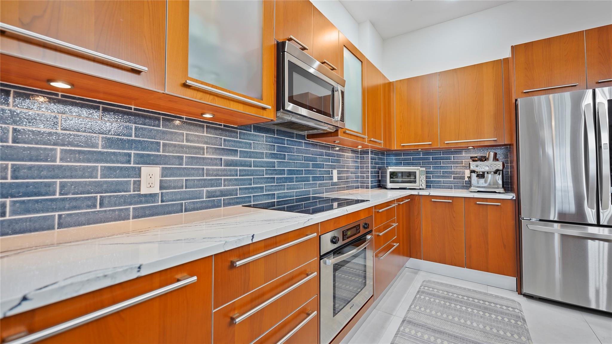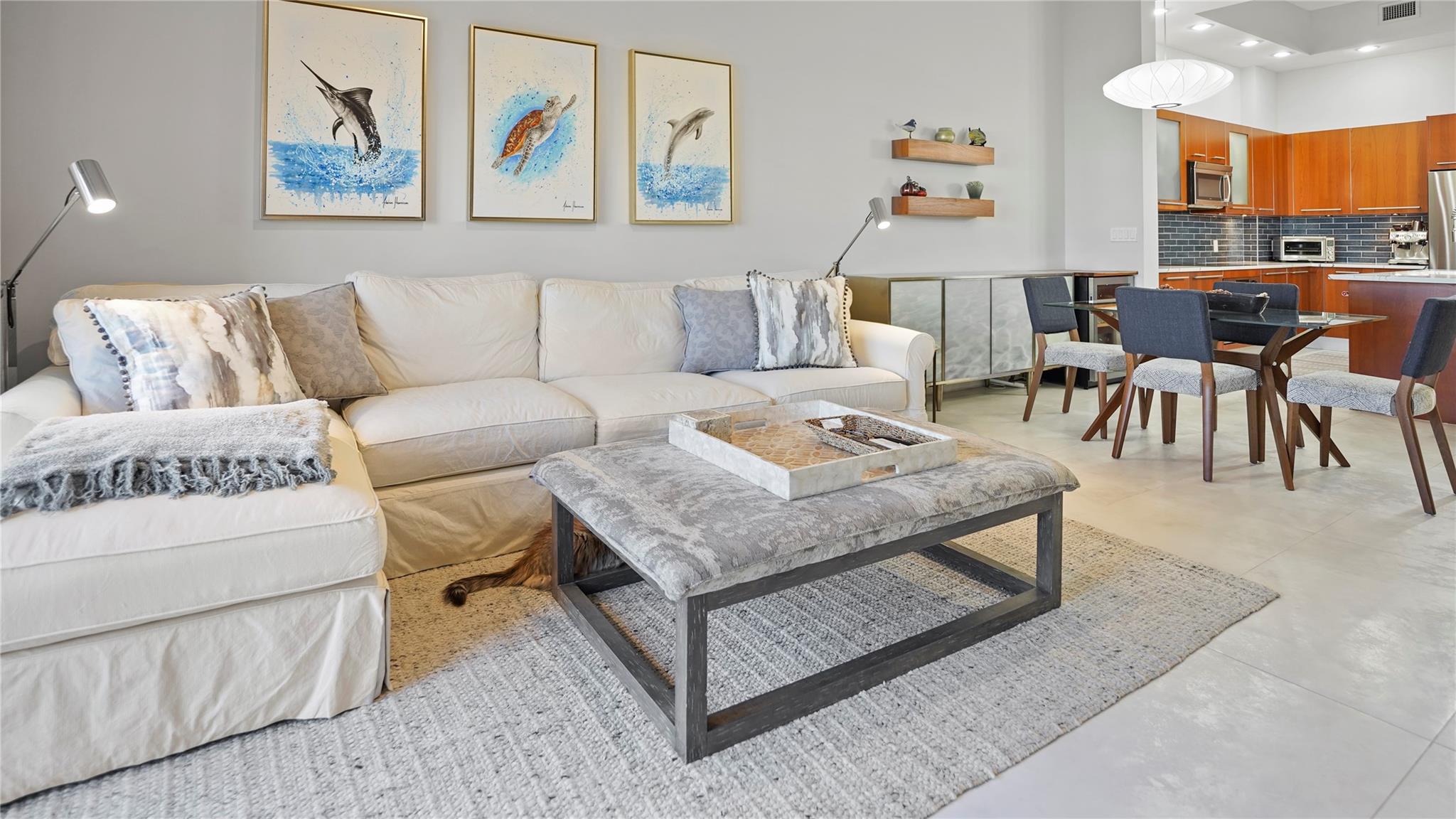 Coastal living in remodeled beach PH boasting 3 bedrooms / 2 en suite baths + powder room. Contemporary design features soaring 12’ ceilings, abundant natural light, and unmatched privacy and tranquility. Snaidero Italian kitchen and bath vanities, quartz countertops, and large format rectified porcelain tiles. Sleek kitchen w/ island bar, stainless steel appliances including a glass-door refrigerator, induction cooking & under-counter task lighting. Impact glass windows throughout, private terrace & covered front porch. Includes 2 secure covered parking spaces & storage unit. Oceanfront amenities; resort-style pool, cabanas. spa, fully equipped fitness center, clubroom, bike/kayak/paddle-board storage & private beach access. Positioned in seaside village of Lauderdale-by-the-Sea.
