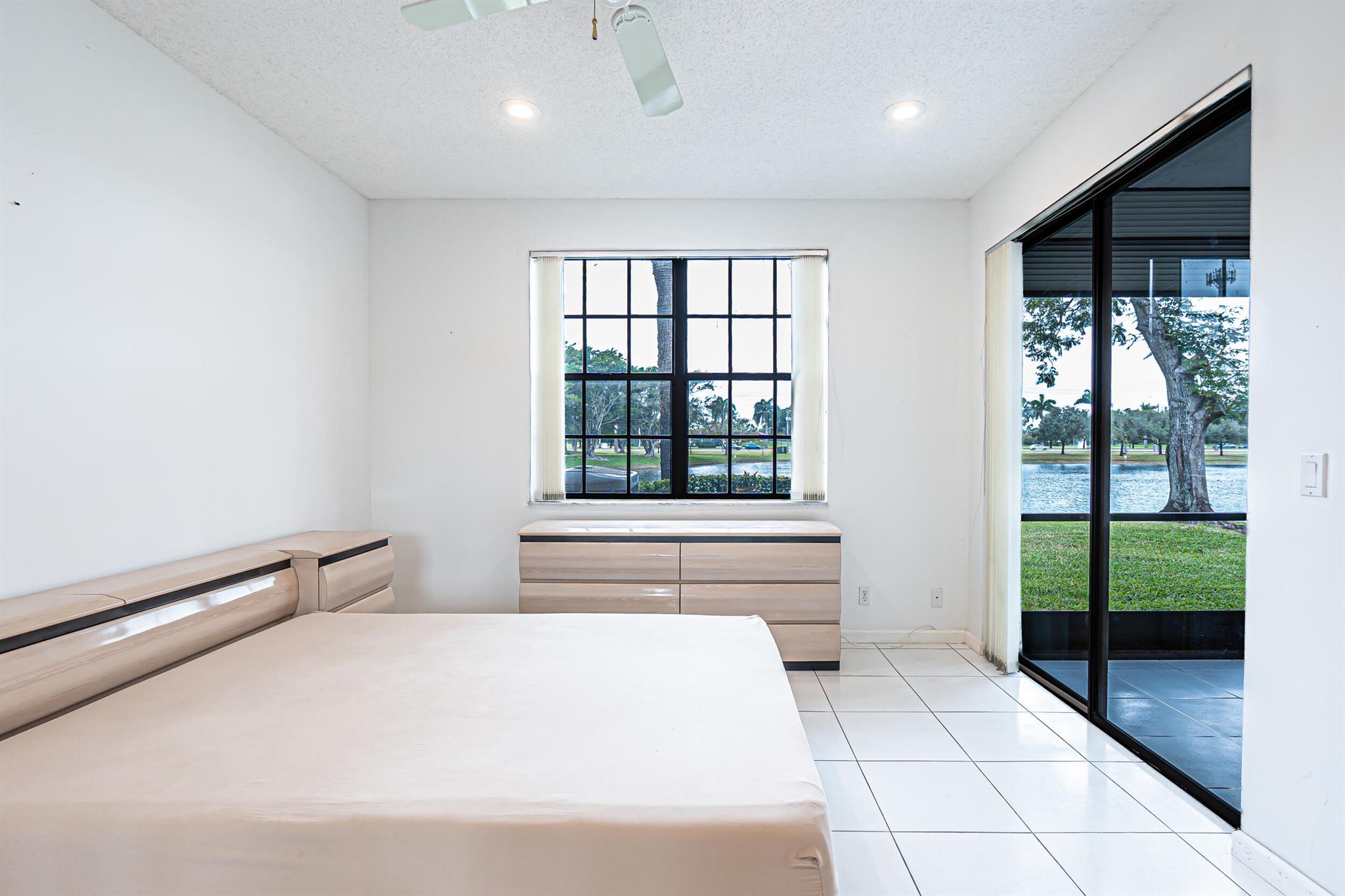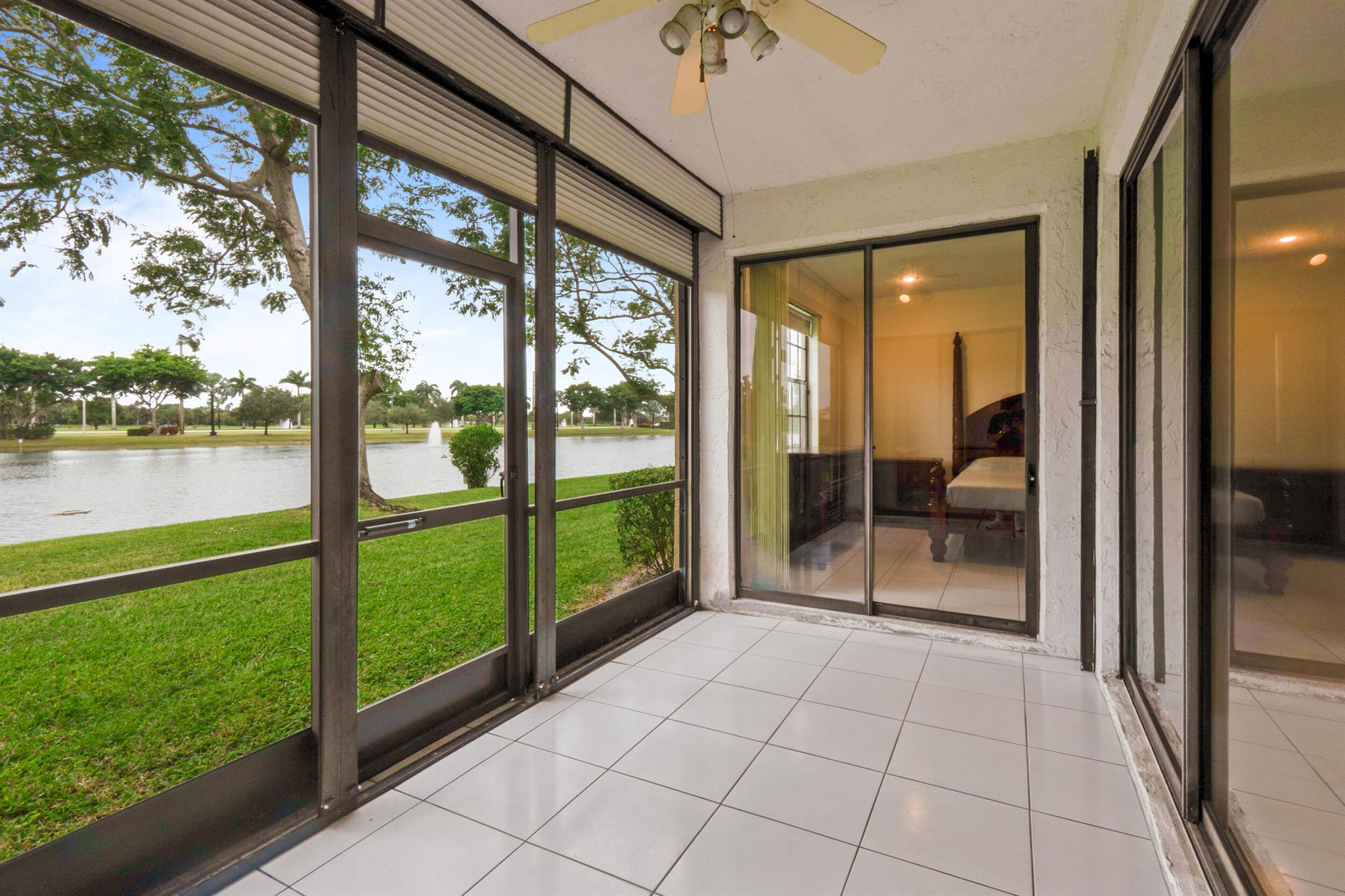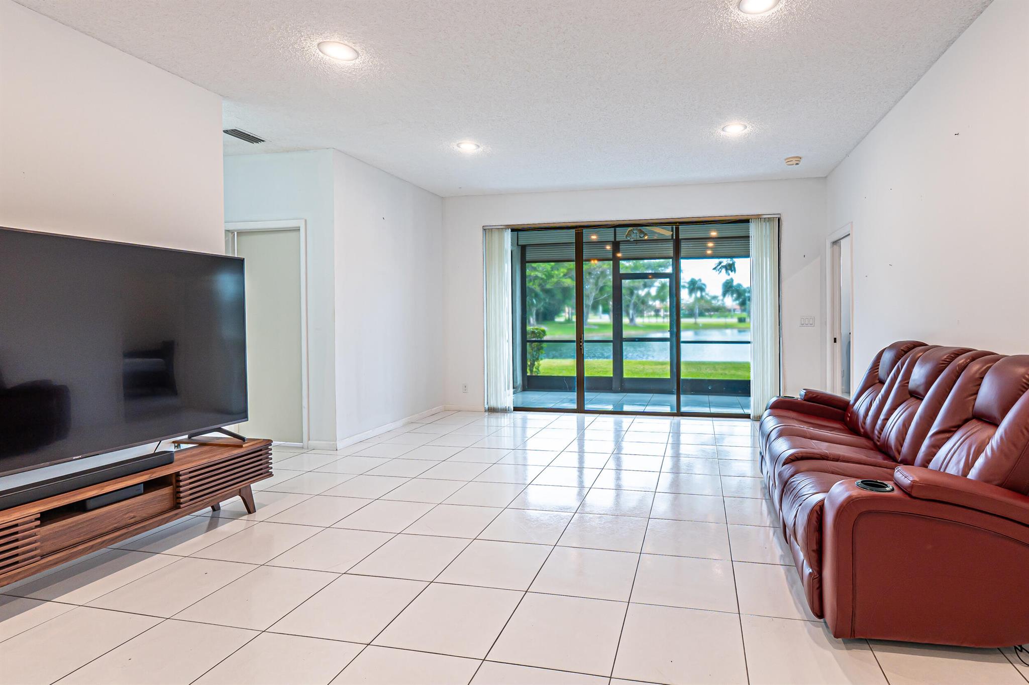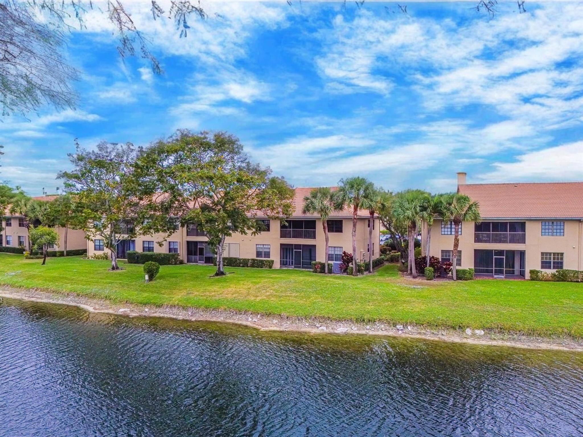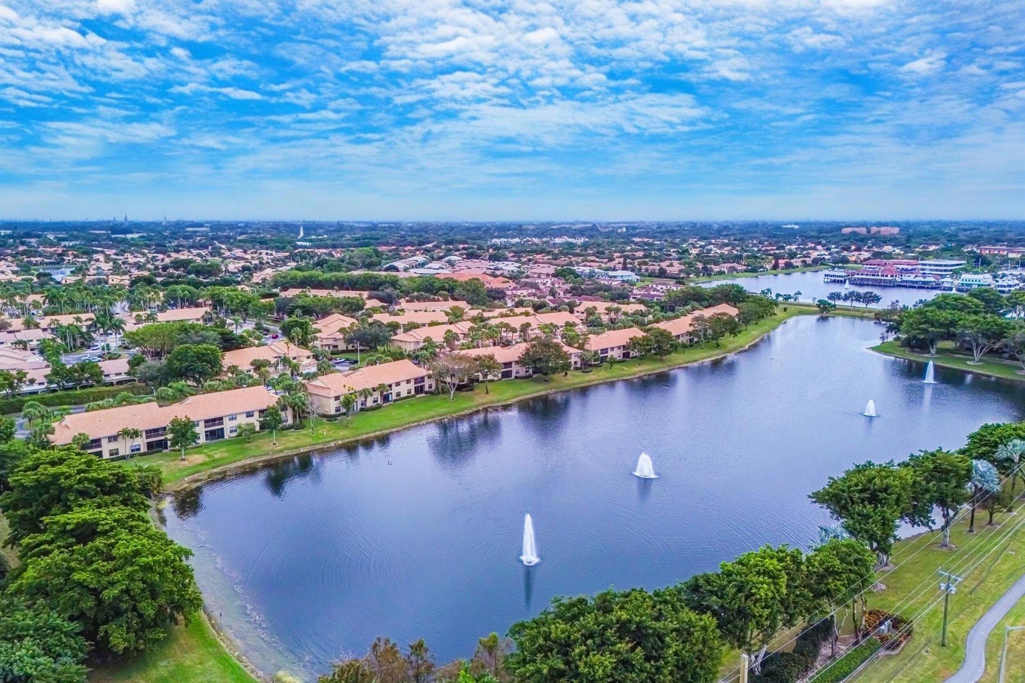 Enjoy lake views from this spacious 3BR/2BA 1st-floor corner unit with a private garage in Boca Pointe. Located west of I-95--no flood zone, no assessments, and not impacted by new condo laws. This home offers rare privacy with no shared walls on three sides and only one neighbor above. Features include a bright split floor plan, granite kitchen, formal dining, tile floors, laundry room, and enclosed patio overlooking the water. The primary suite boasts dual closets and a large ensuite bath. Set in a quiet 2-story building with access to the community pool. Boca Pointe membership not required. Prime location near everything!
