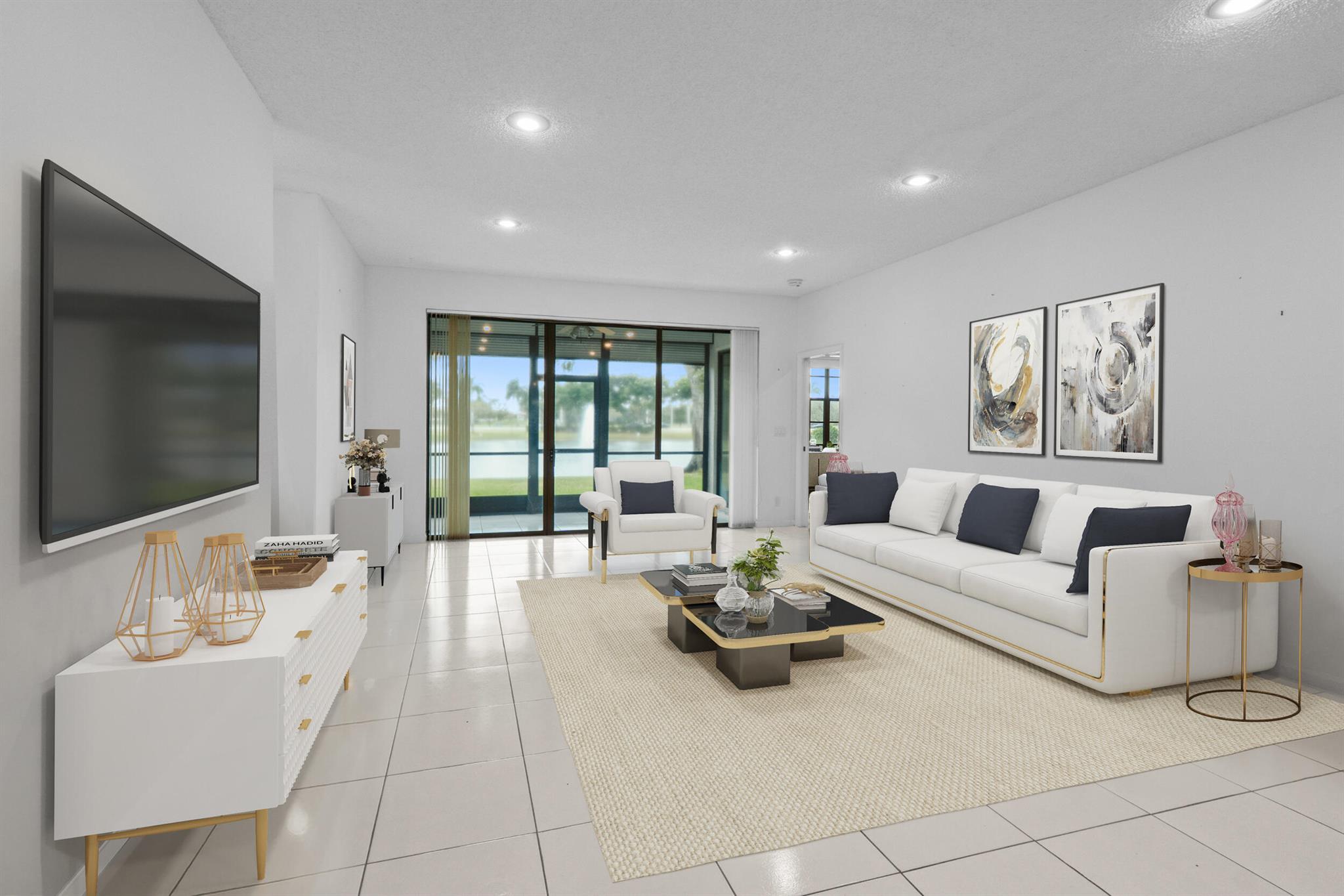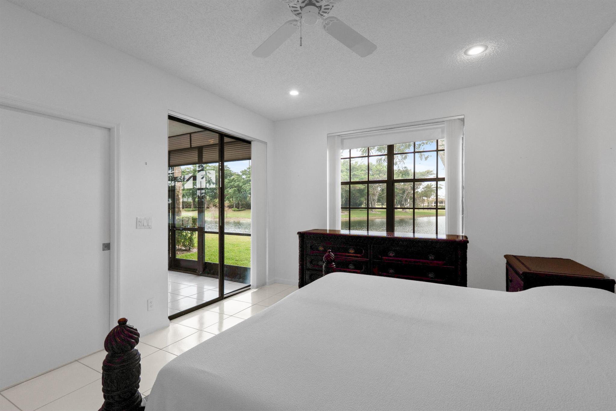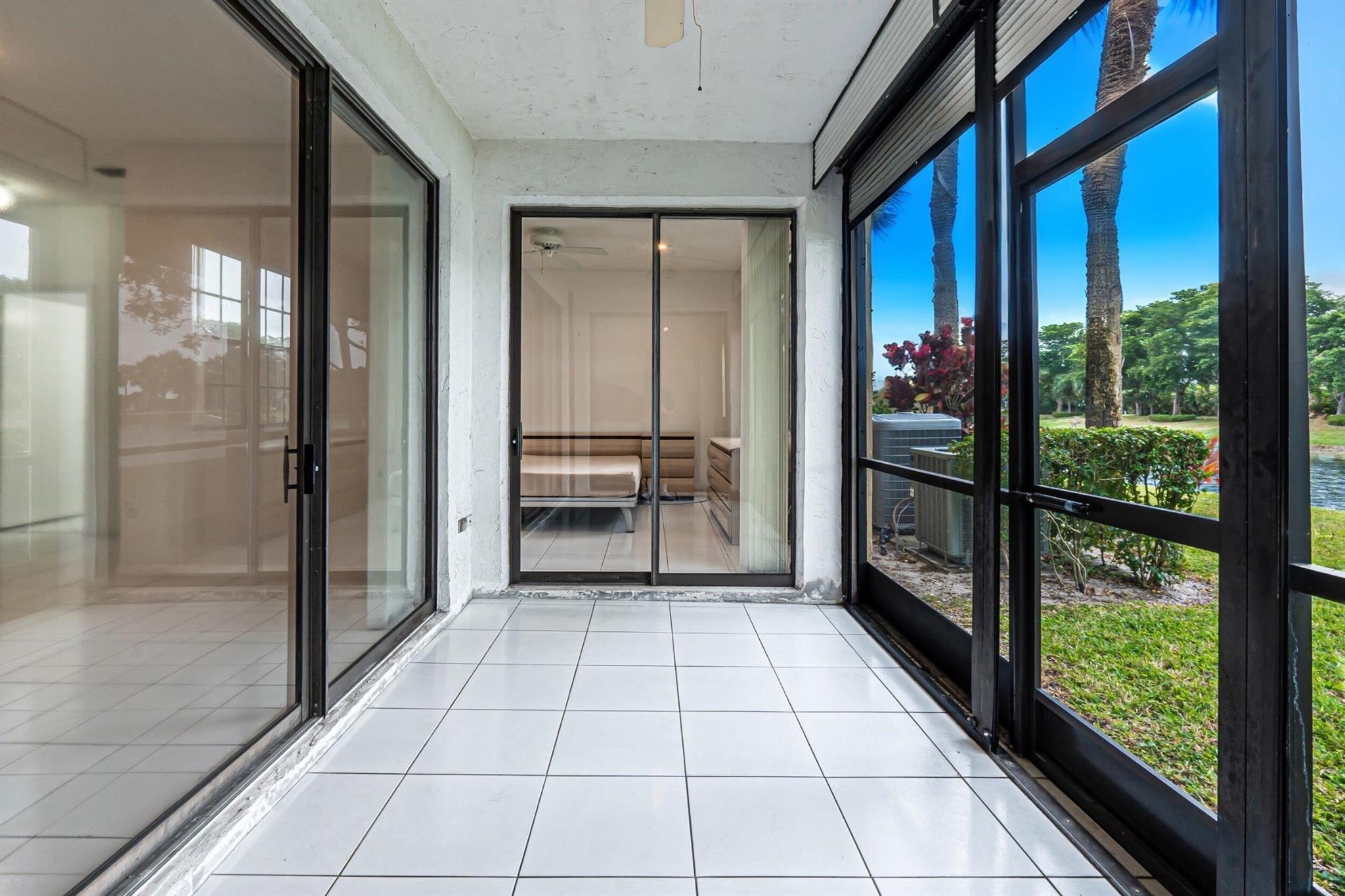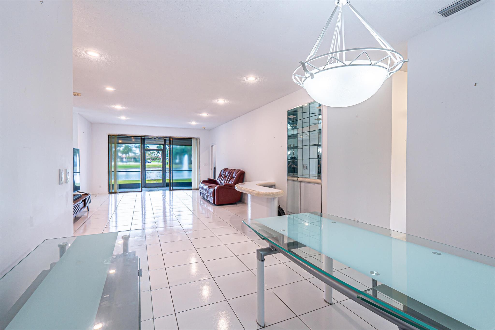 Enjoy lake views from this spacious 3BR/2BA 1st-floor corner unit with a private garage in Boca Pointe. Located west of I-95--no flood zone, no assessments, and not impacted by new condo laws. This home offers rare privacy with no shared walls on three sides and only one neighbor above. Features include a bright split floor plan, granite kitchen, formal dining, tile floors, laundry room, and enclosed patio overlooking the water. The primary suite boasts dual closets and a large ensuite bath. Set in a quiet 2-story building with access to the community pool. Boca Pointe membership not required. Prime location near everything!