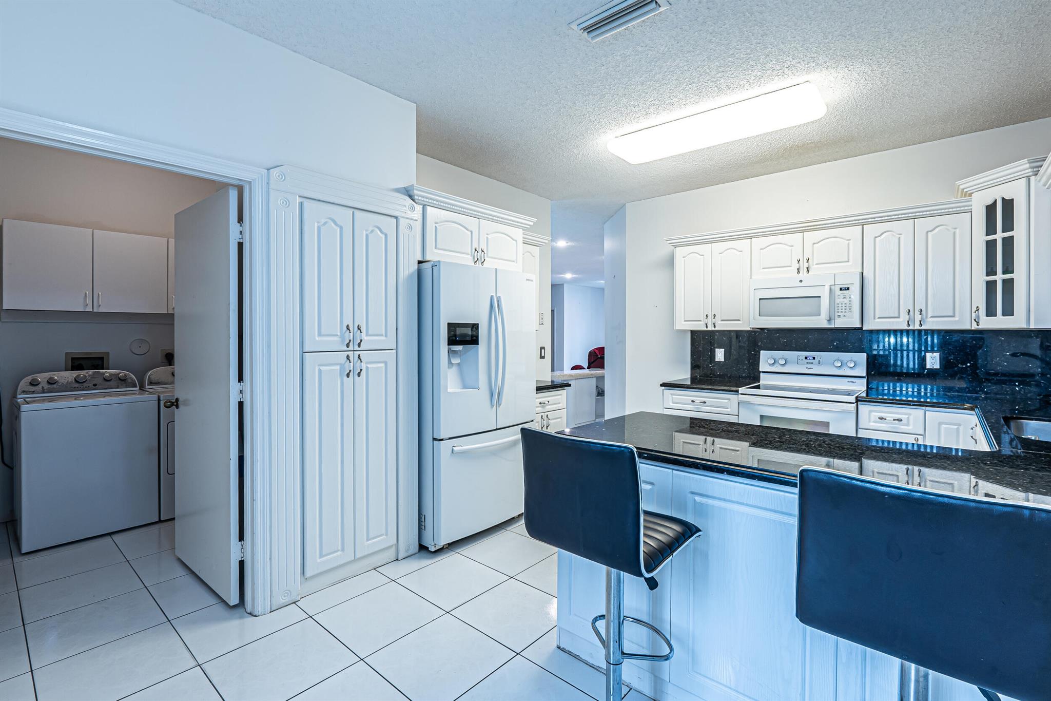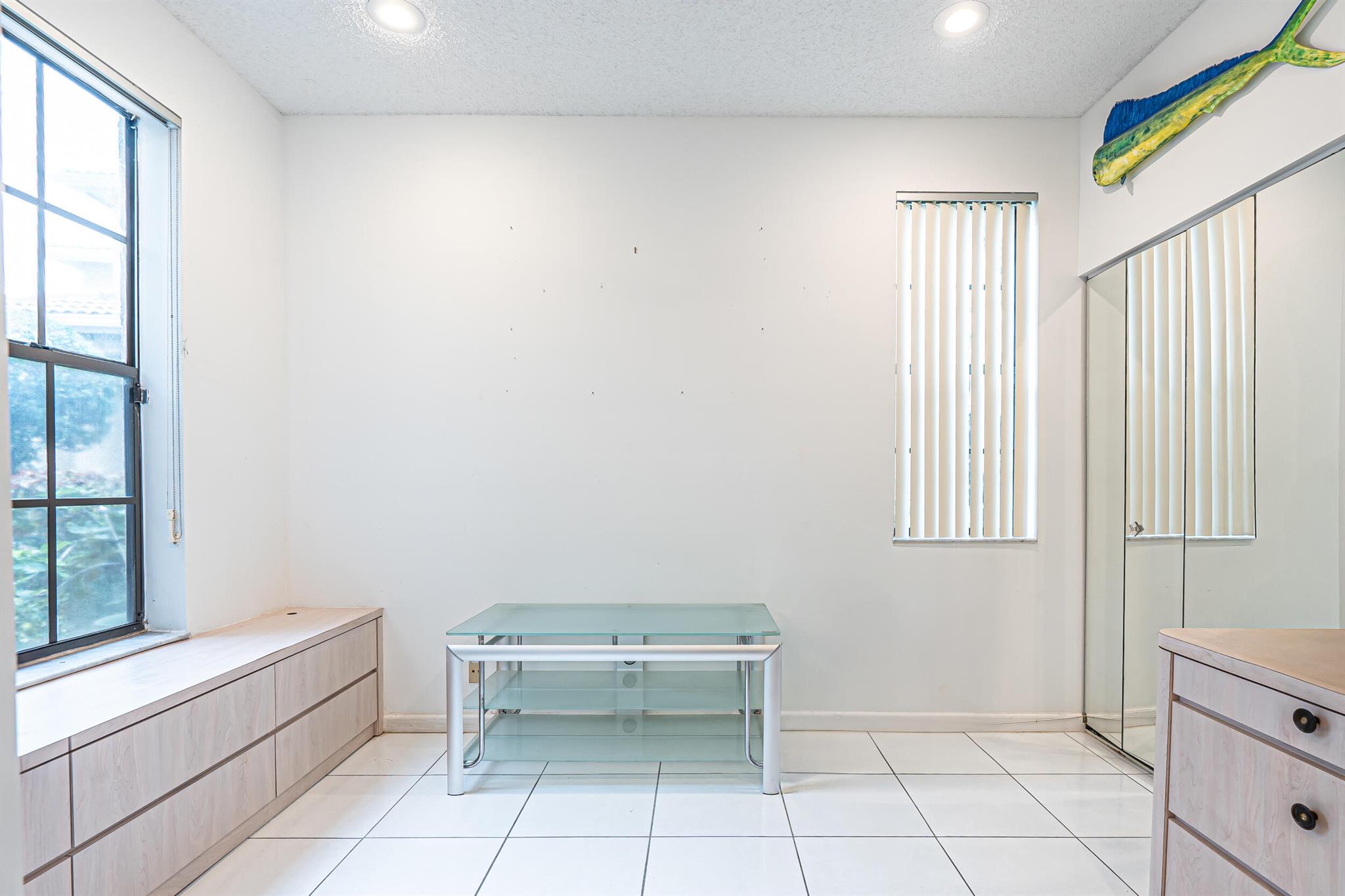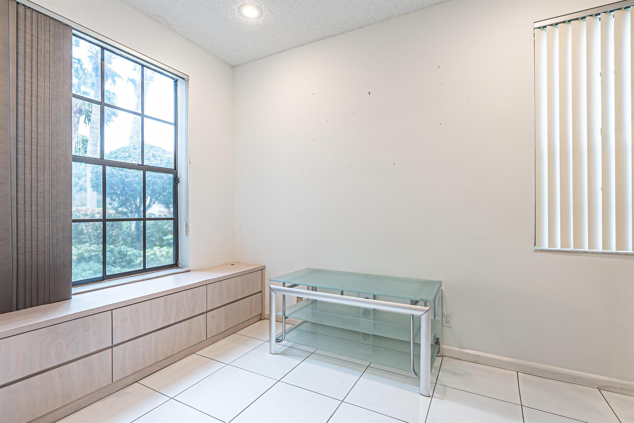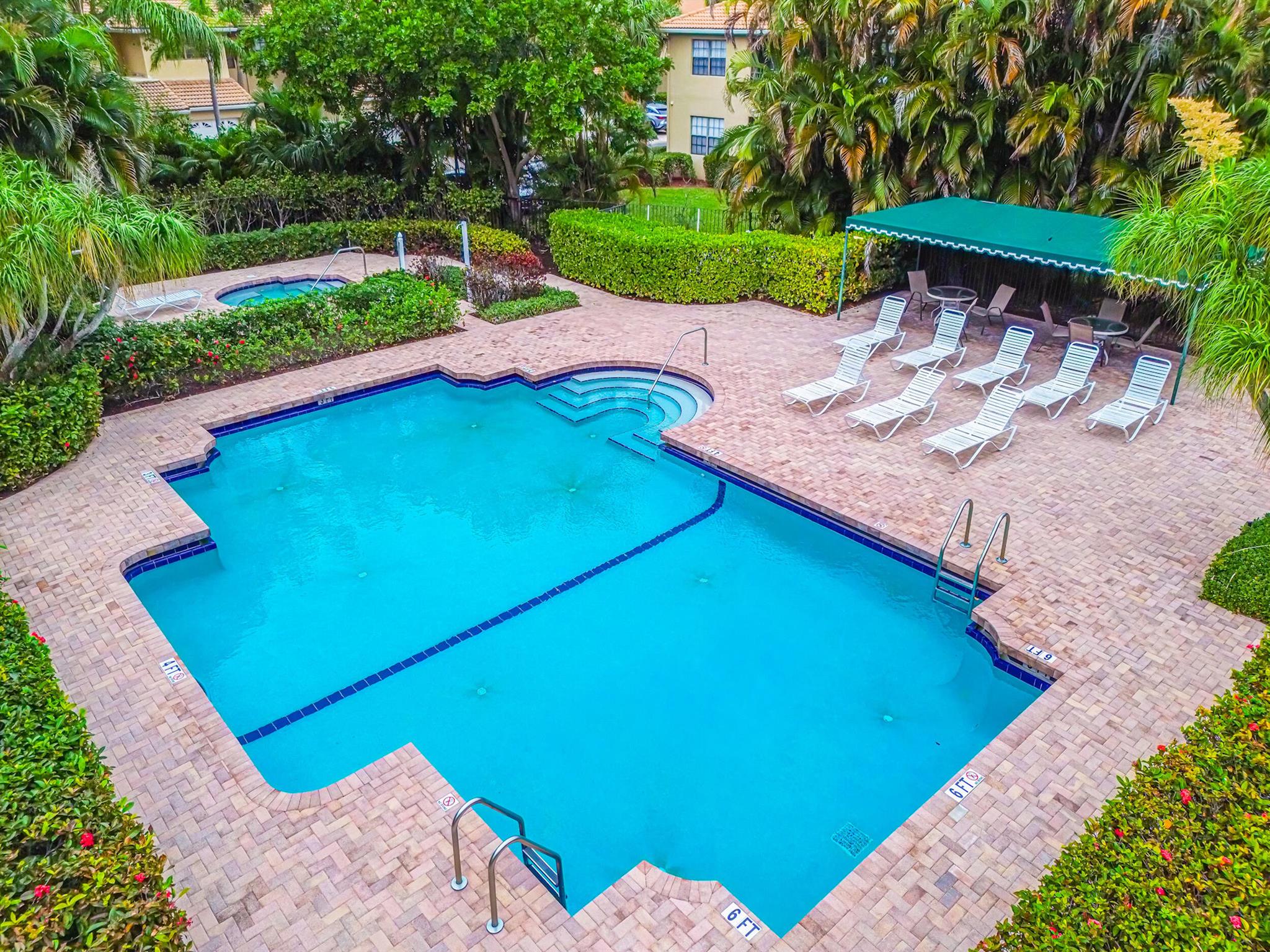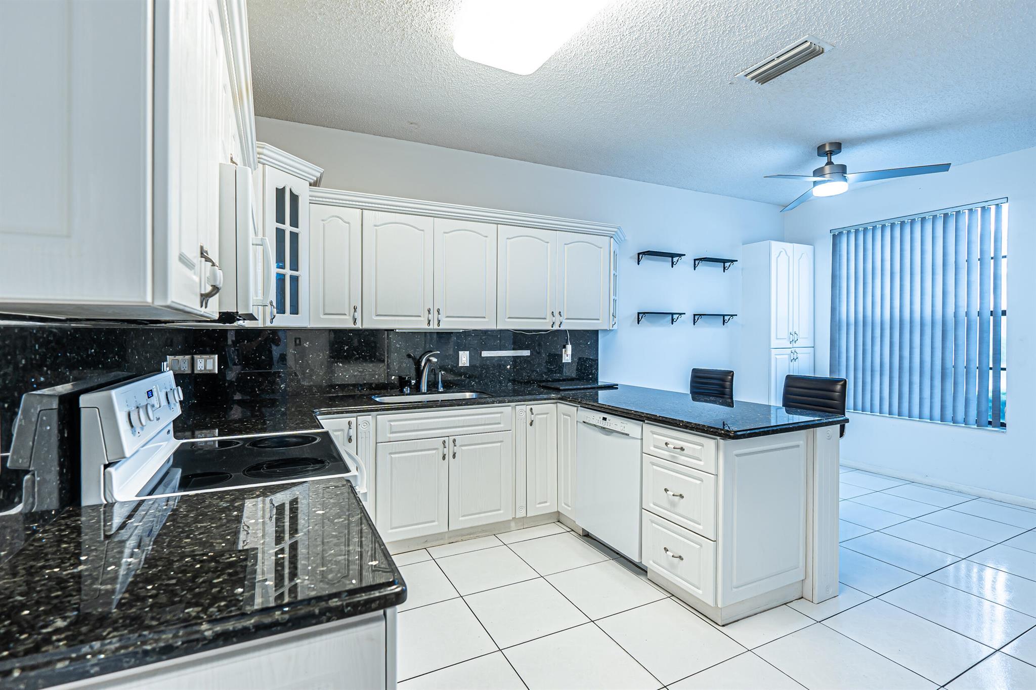 Enjoy lake views from this spacious 3BR/2BA 1st-floor corner unit with a private garage in Boca Pointe. Located west of I-95--no flood zone, no assessments, and not impacted by new condo laws. This home offers rare privacy with no shared walls on three sides and only one neighbor above. Features include a bright split floor plan, granite kitchen, formal dining, tile floors, laundry room, and enclosed patio overlooking the water. The primary suite boasts dual closets and a large ensuite bath. Set in a quiet 2-story building with access to the community pool. Boca Pointe membership not required. Prime location near everything!