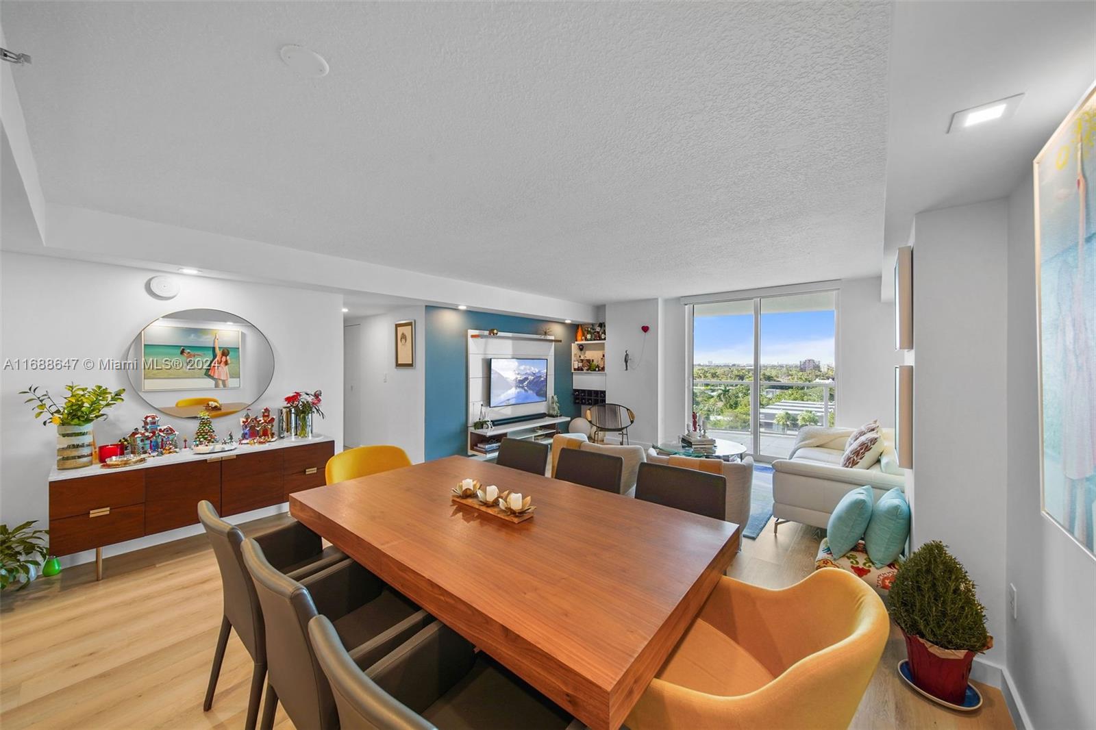 This thoughtfully designed condo at Skyline on Brickell offers a sophisticated yet family-friendly space ideal for a growing family. Floor-to-ceiling windows bring in natural light, showcasing bay views, lush greenery, and the vibrant Miami skyline. Equipped with a Nest A/C controller and a new unit from July 2024, it ensures energy efficiency year-round. The open living area features LED recessed lighting, and the modern kitchen boasts stainless steel appliances plus an in-unit washer and dryer. Both bedrooms offer spacious walk-in closets with custom doors, and bathrooms have elegant Spanish tile floors. Skyline amenities include covered parking, a tennis court, private marina, fitness center with sauna, pool, BBQ areas, a dog park, EV chargers, 24/7 concierge, and valet.