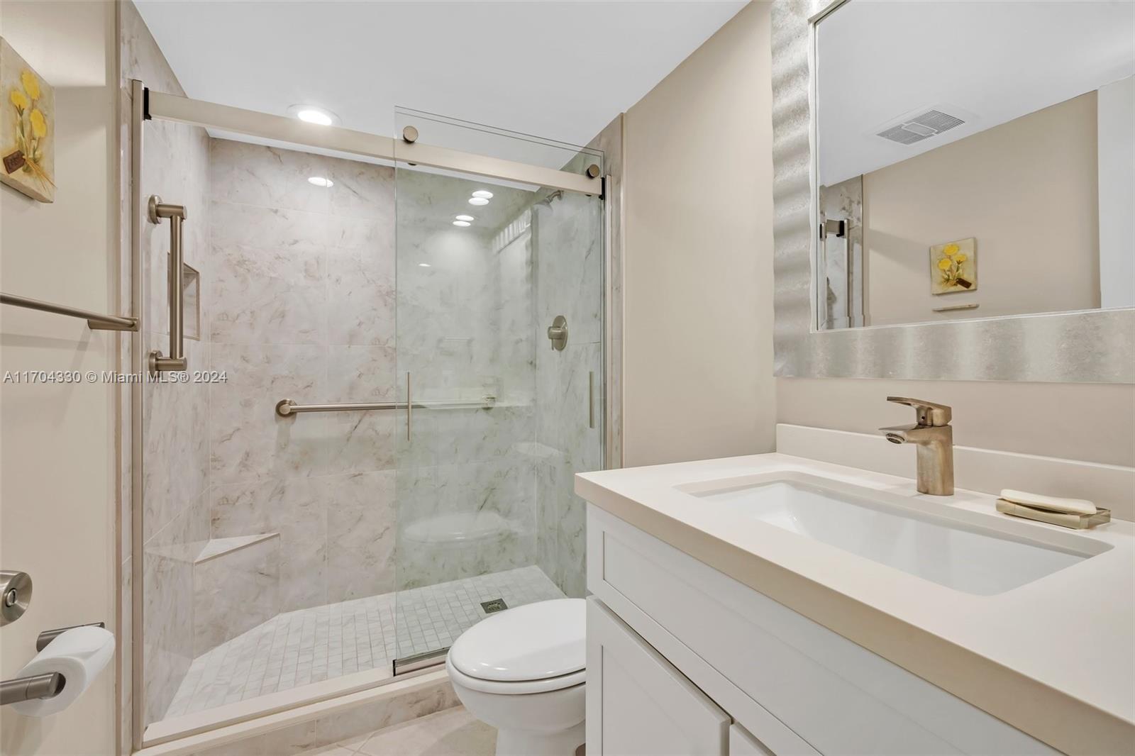 Beautiful three bedroom, two and half bath top floor home with remodeled kitchen and all upper level SS appliances, washer/dryer in unit, updated bathrooms and large open floorplan for dining/living area. Impact windows everywhere but balcony. Split bedroom floorplan, MBR sits apart with ensuite bath with hot tub, and large walk-in closet with organizers. (all BR closets have them). Large windows keep this home bright, yet mature trees provide shade to keep you comfortable. This Palm Aire neighborhood is a peaceful enclave, lushly landscaped and serene. Any owner will enjoy the large entertainment complex now rising at the adjacent casino complex, and yet appreciate this location away from the bustle of construction. Also available to rent $2600/mo, 1 yr. lease only