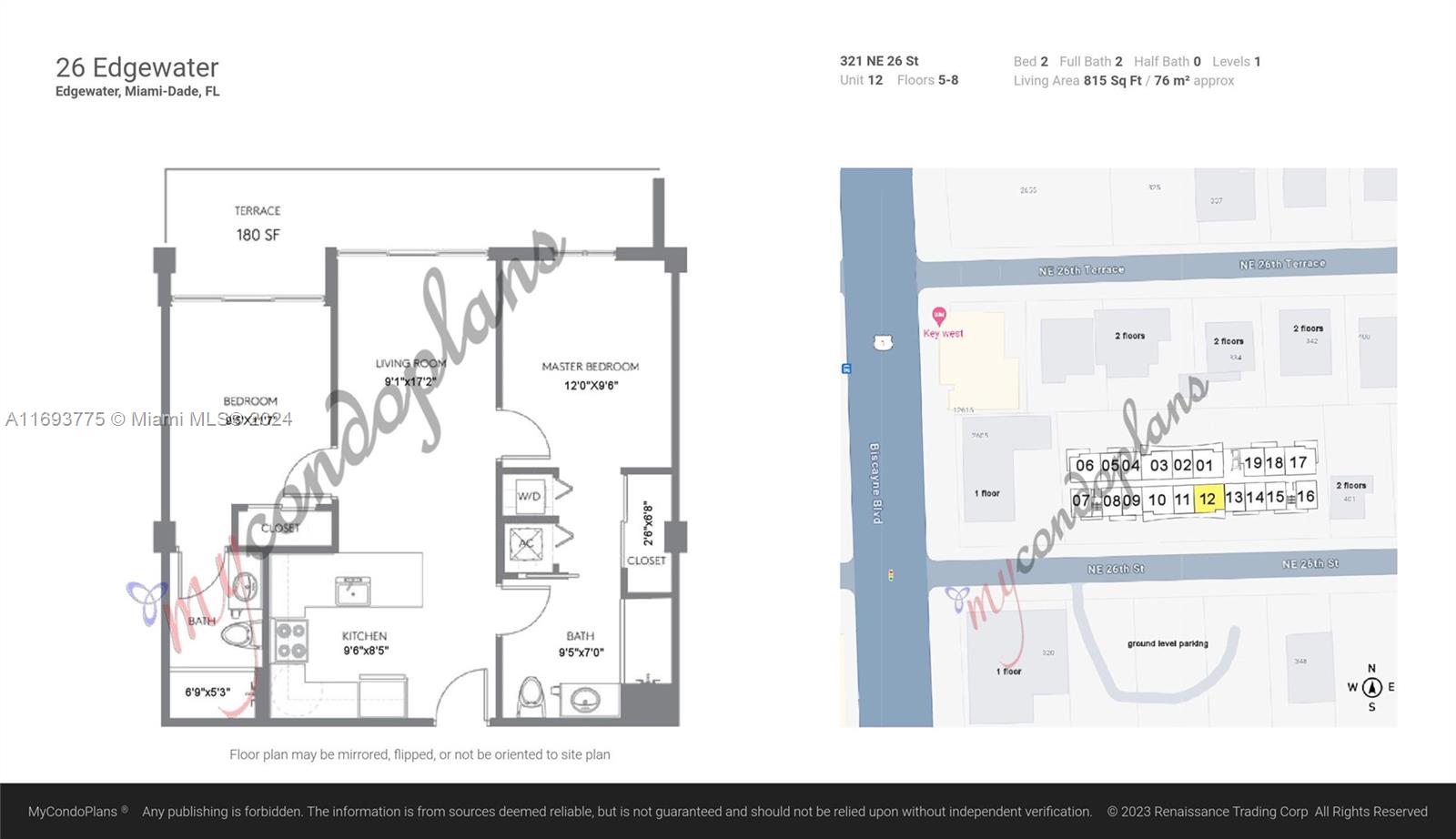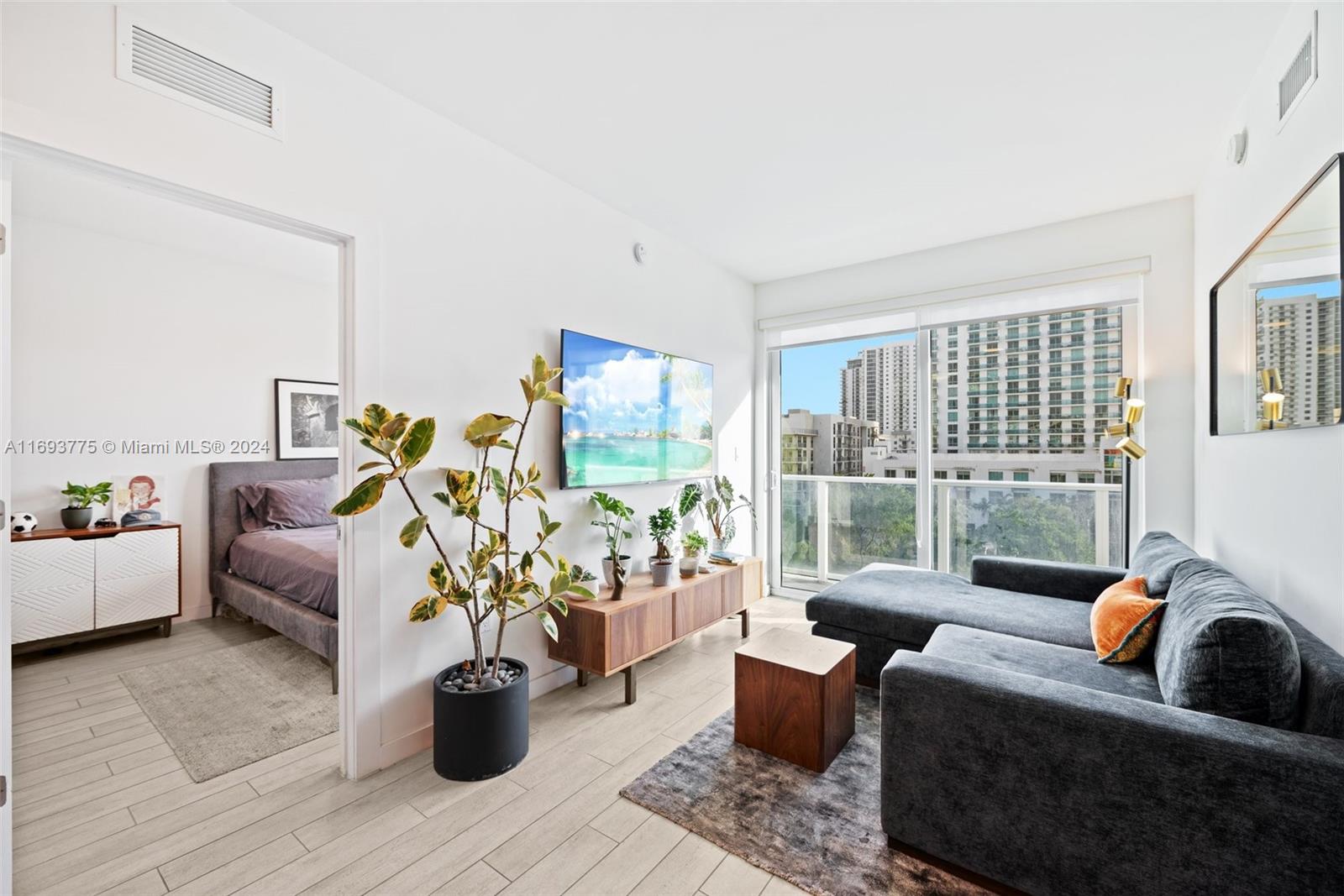 Welcome to 26 Edgewater, a boutique condo building completed in 2018 by Stripey Real Estate Development and Modus Architects. This 2-bed, 2-bath unit offers 815 Sqft of stylish comfort, featuring 9-foot ceilings, impact-resistant windows, and sleek porcelain wood flooring. Both bedrooms include blackout shades for added privacy and comfort. The Italian-inspired kitchen boasts quartz countertops, stainless steel appliances, and quality cabinetry. The bathrooms feature frameless glass showers and designer fixtures. Step onto the 180 sq. ft. balcony to enjoy sunsets or create your personal retreat. Building amenities include a rooftop heated pool, fitness center, and lounge. Located near Wynwood, the Design District, and Miami Beach, this condo is priced to sell—schedule your showing today!