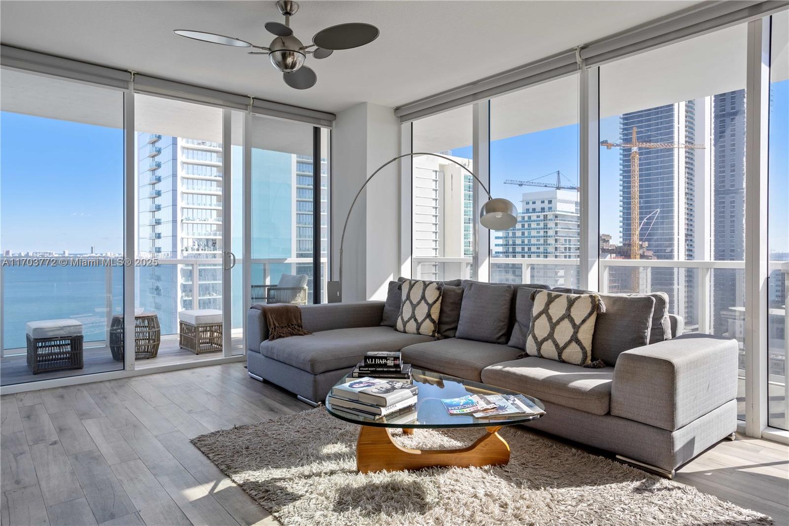 Breathtaking, Seldom Available 3 bed 2 1/2 bath Corner residence at exclusive Bayhouse. Bay views from the heart of Edgewater. Unit boast custom closets, designer light fixtures, porcelain wood tile throughout custom screen shades in the main area & black-out shades in all bedrooms, and comes with 2 assigned parking spaces. This boutique type building offers beautiful amenities that include pool, state of the art gym, business center, playroom, media room. Enjoy the best bay and sunset city views from this spacious modern unit full of light. This prime location provides easy access to the best dining, shopping, & entertainment options in Wynwood, Midtown, Design District, Brickell, Miami Beach, with the soon to open Whole Foods at 29th & Biscayne. Don't miss this opportunity!