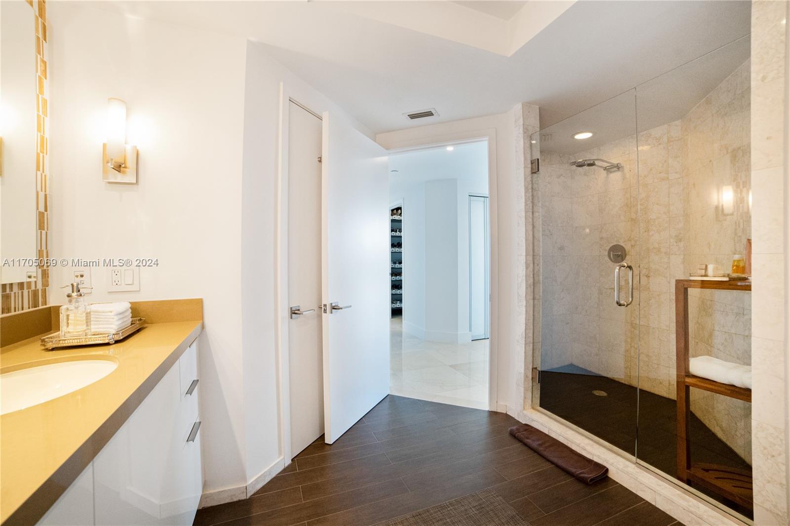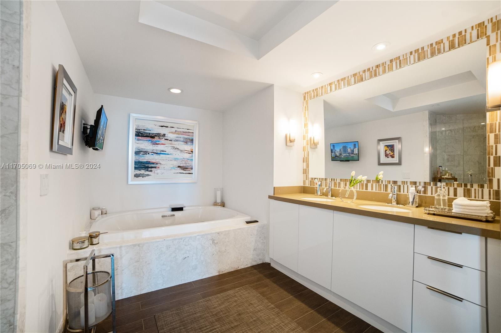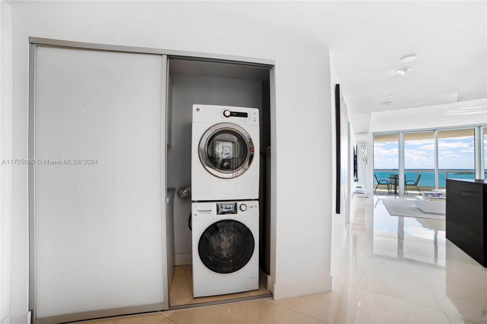 Beautifully renovated 2bedroom, 2bath residence located on the 15th floor of the prestigious Jade Brickell. Boasting breathtaking ocean and bay views, this unit offers a seamless blend of modern elegance and functional design. Enjoy the privacy of your own elevator entrance leading to a sleek minimalistic interior. The expansive balcony provides the perfect setting for morning coffee or evening relaxation, overlooking the serene waters of the bay. Inside, the unit features a fully equipped washer and dryer with a maid's sink for added convenience. The spa-like bathroom includes a double vanity, a luxurious soaking tub, and a spacious stand-in shower, perfect for unwinding after a long day. The primary suite offers his-and-hers closets, providing ample storage and a touch of sophistication.