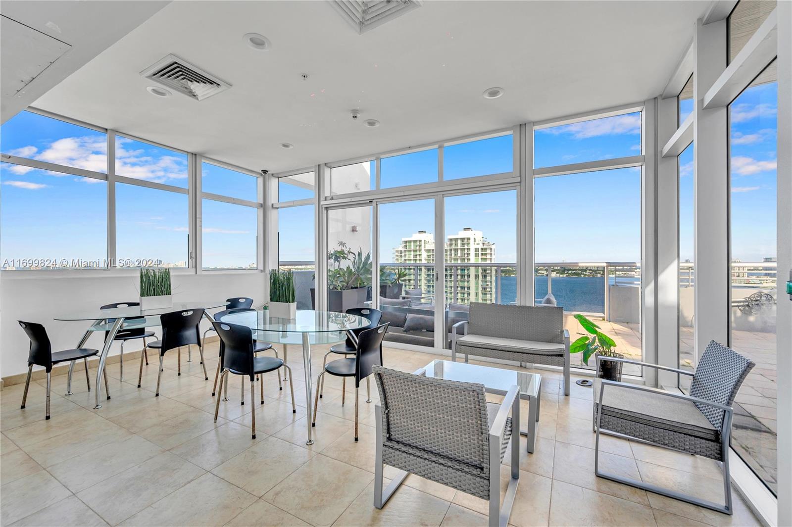 NONE OTHER LIKE IT! 3-bed plus den corner lanai residence with a one of a kind 3,200 sq ft wrap-around terrace! The ONLY residence in the building offering this expansive outdoor living space! Designed for ultimate privacy with no neighbors on three sides, this home provides breathtaking city, water, and lush green views. Open concept & light flooded living area with marble floors, stainless steel appliances, granite counters, and a steel-top kitchen island. In an exclusive boutique condo with three units per floor, enjoy rooftop amenities: pool, gym, BBQ area, sauna, and community room. Boat slips available. Newly updated & move-in ready, this waterfront gem between Miami Beach and Miami represents serene urban living. Buy the best value unit in North Bay Village before being priced out!