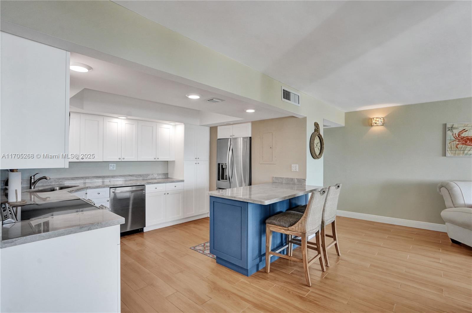 Water view from every room! No expense spared, completely renovated, open concept, neutral colors. All impact windows & doors. Walk in showers w/glass doors. Walk-in closets, huge windows. Deeded, covered parking space!!! New electric service. 50 yr inspection complete. Roof 11.5 yrs new. Pool is completely redone. Cable TV & wi-fi included. Walk across the street to the beach and Hollywood Broadwalk with music, food, shopping, festivals. Maintenance just went down to $634/mo. Secured lobby. New exercise room, BBQ area, extra storage. Lease after first year, min 90 days, once every 2 year period. 25% minimum downpayment if financing. No persons under 13 can reside on the property.