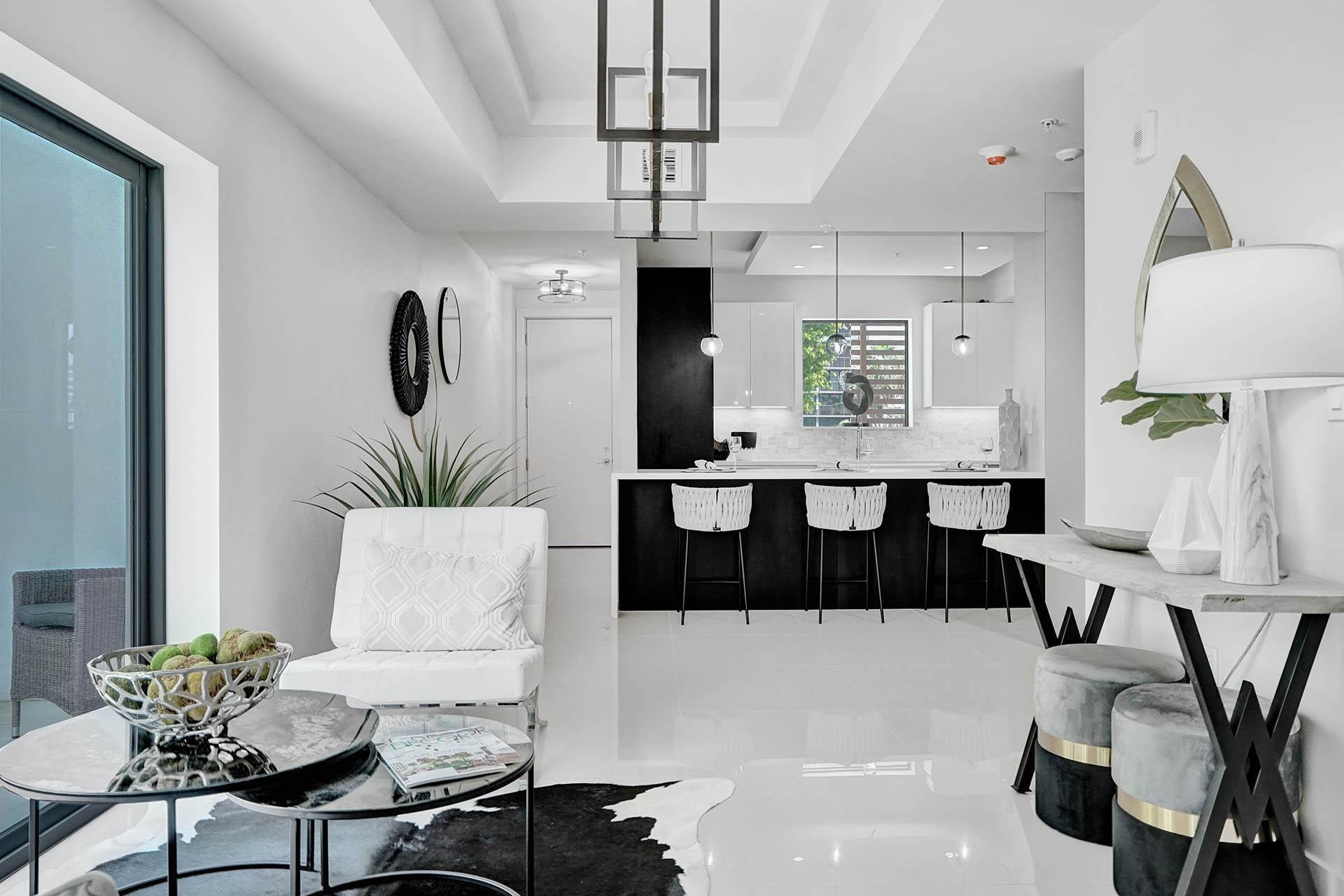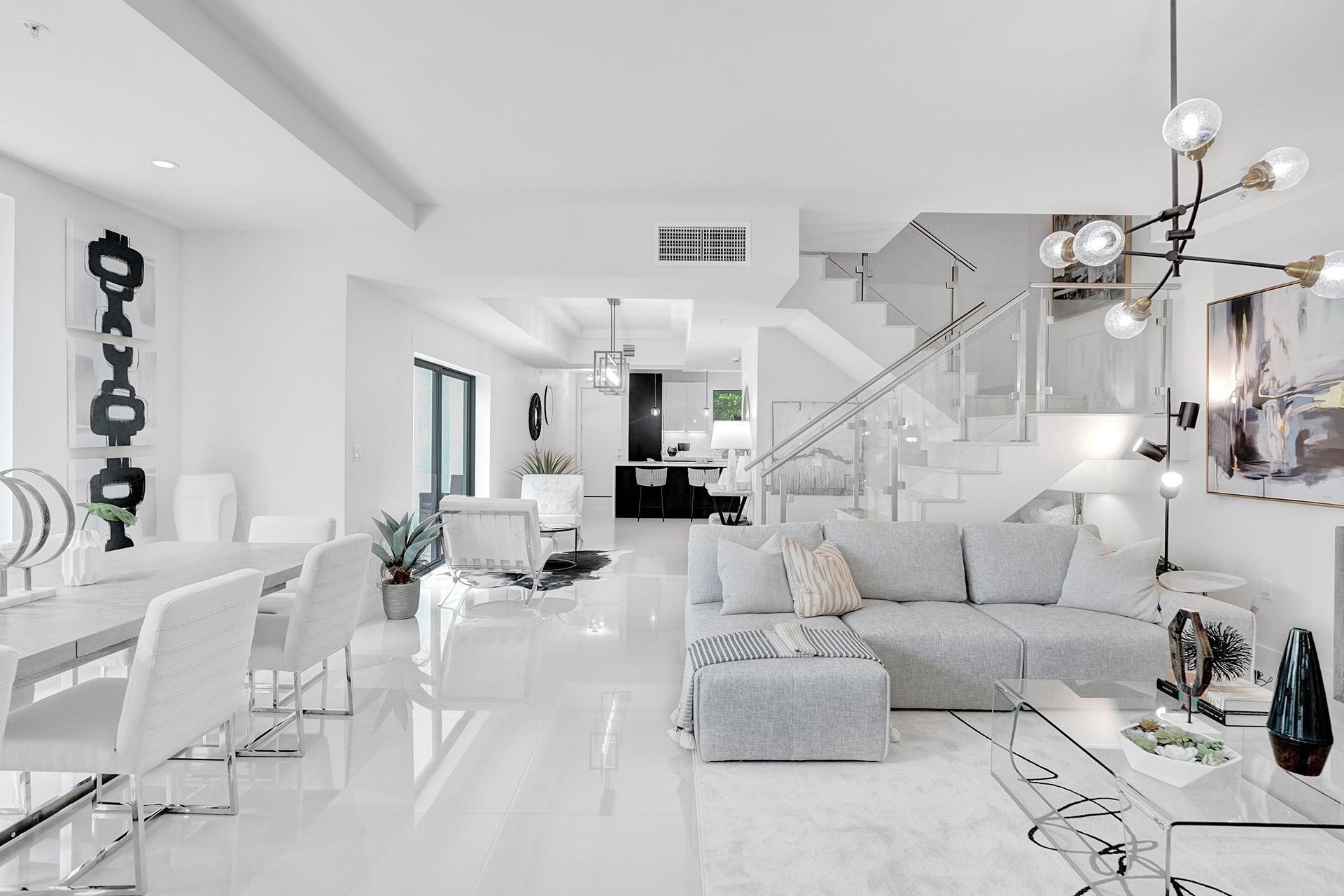 Newer construction-corner 2-story condo w/floor-to-ceiling glass lets the light pour in & has views of lush greenery, bringing the outdoors in. Beautiful large gourmet kitchen has high-end finishes w/subzero & wolf appliances, quartz counters & Italian cabinetry. Direct elevator entrance into this move-in ready property furnished w/a neutral palette. Huge terrace w/summer kitchen & backyard atmosphere. Private home feel w/the convenience condo living. Large main bedroom w/double w-i-c. Bedrooms are ensuite & have balconies. 2 covered parking spaces & storage closet. 2-story clubhouse w/pool, fitness center & more. Maintenance fee incl. EVERYTHING except electric. This amazing residence is very close to restaurants, shopping and only 600 ft to the beach! Pets welcome. 2 parking spaces.