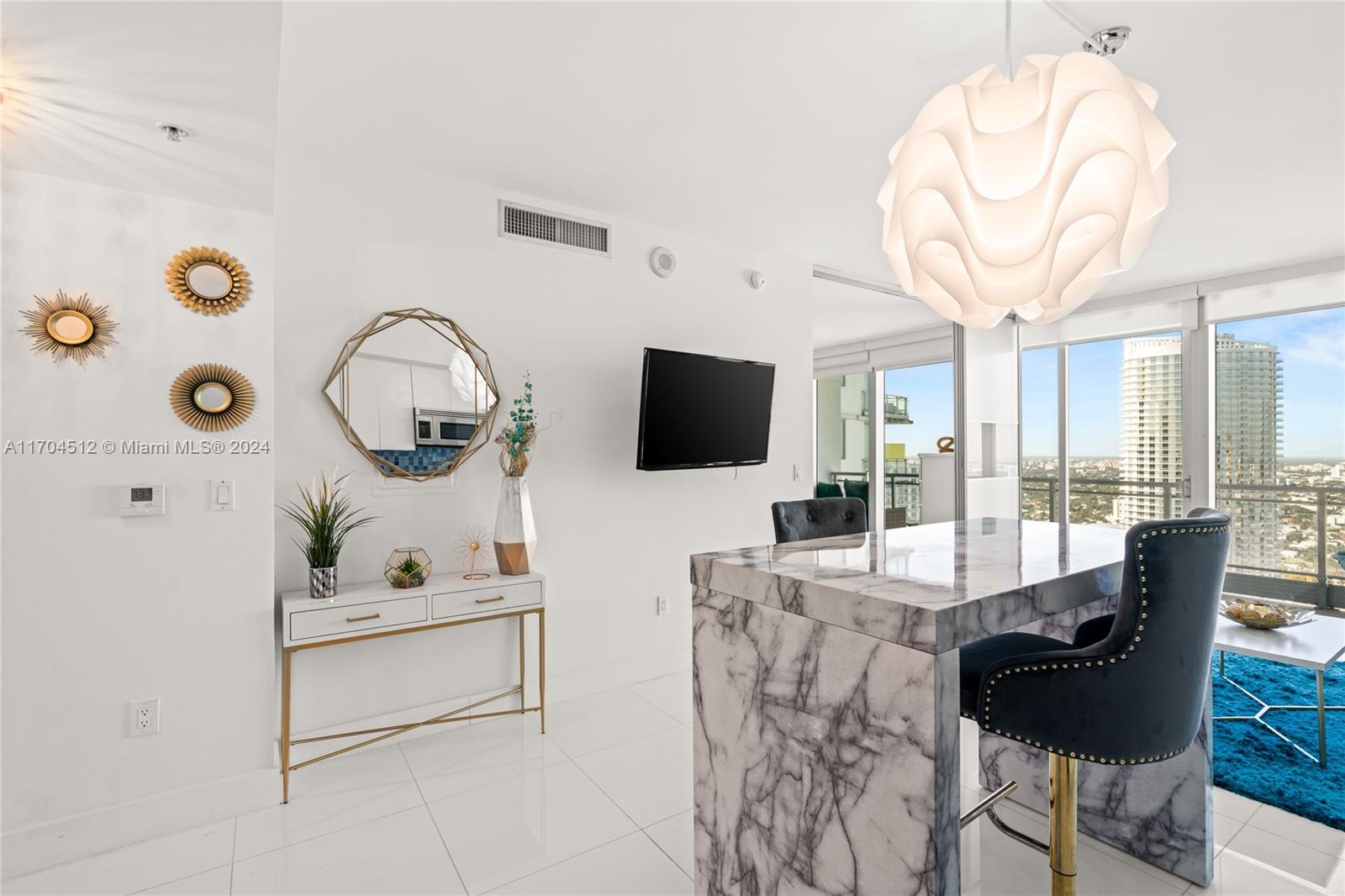 BE A PART of the soon-to-be Faena District Miami River. Conveniently located between Brickell and Downtown, enjoy sunset views from the 49th floor of the Mint Condominium Tower. Updated bathrooms in 2022 boast an ensuite bath with walk-in shower and half bath in the living area. Enjoy soaring views of Miami from this high floor; Major appliances including the washer/dryer, dishwasher, and refrigerator which have been updated. Enjoy gatherings in the kitchen with a bar-height island, tile backsplash, and open-concept kitchen/dining area. The Mint lifestyle amenities include a gym, spa, work/office center, pool deck, valet guest parking, and one parking space. Convenient location close to 95, all-inclusive amenities, and luxury living are all here. Furnished negotiable.