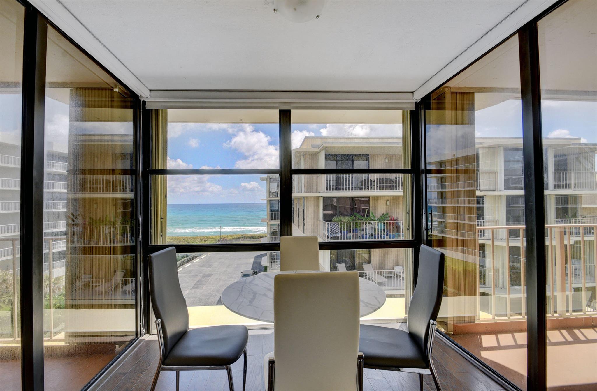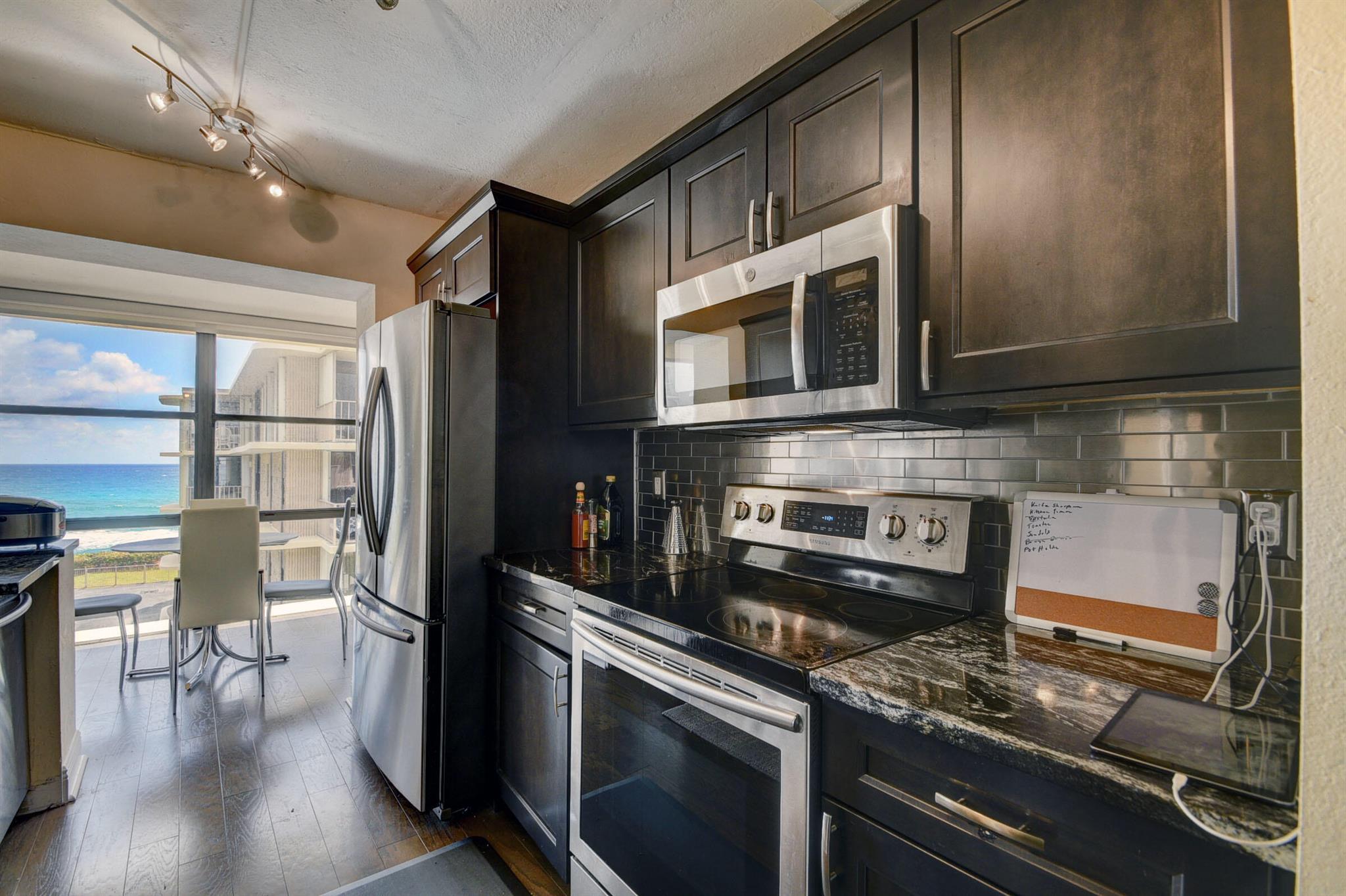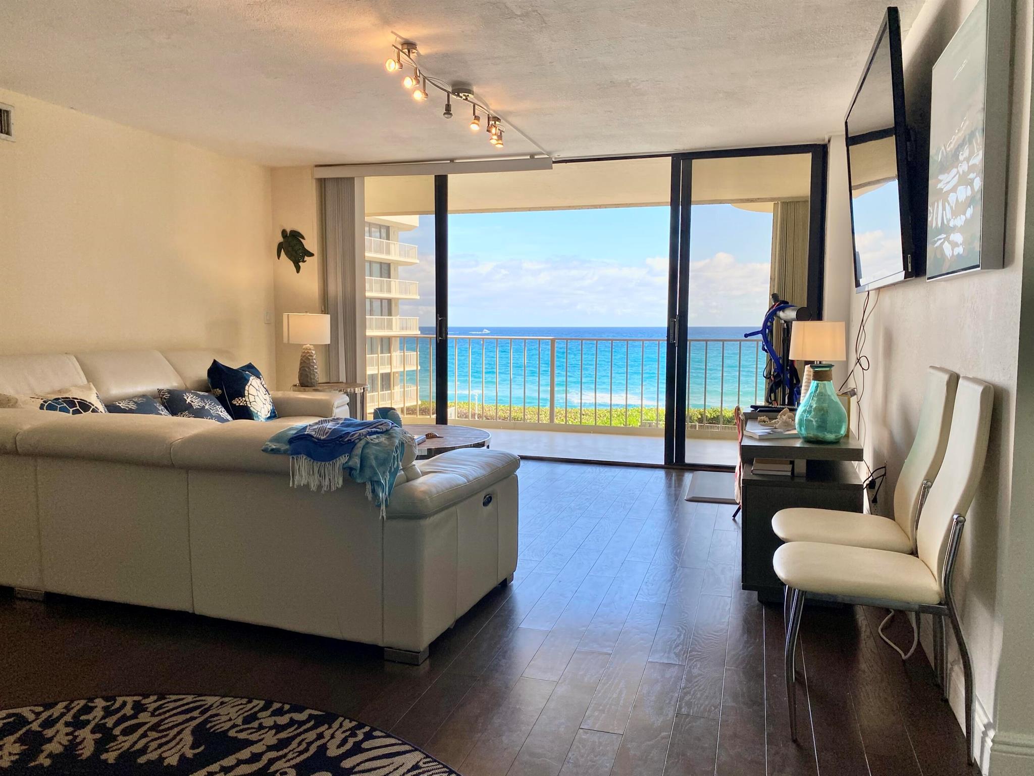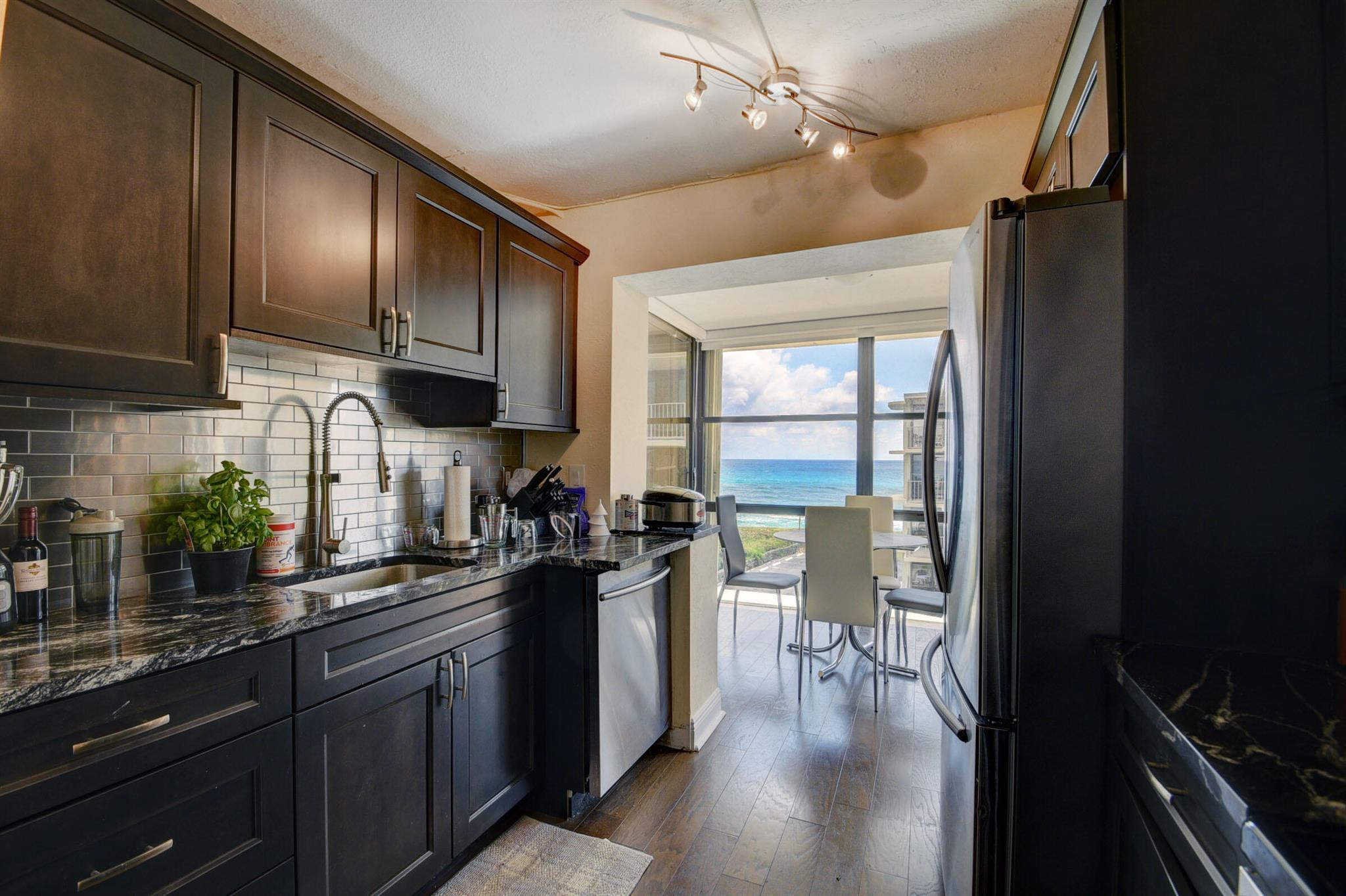 This stunning 2 bedroom 2 bath Penthouse with a split floor plan offers breathtaking Ocean Views from every room in the Condo. With its Eastern exposure, natural light fills the space throughout the day. Step onto the expansive balconies stretching over 30 feet and immerse yourself in the beauty of coastal living. This fully upgraded, move-in-ready property boasts: Modern kitchen, granite countertops, newer stainless steel appliances and ample storage. Spacious Bedrooms, large walk in closets and beautiful finishes. Updated bathrooms for comfort and style. Laminate flooring throughout, bathrooms tiled. Complete hurricane shutters, newer AC. and 1 garage parking space. Enjoy your own private beach, heated pool. sauna, clubhouse, fitness room, and storage, Conveniently located near