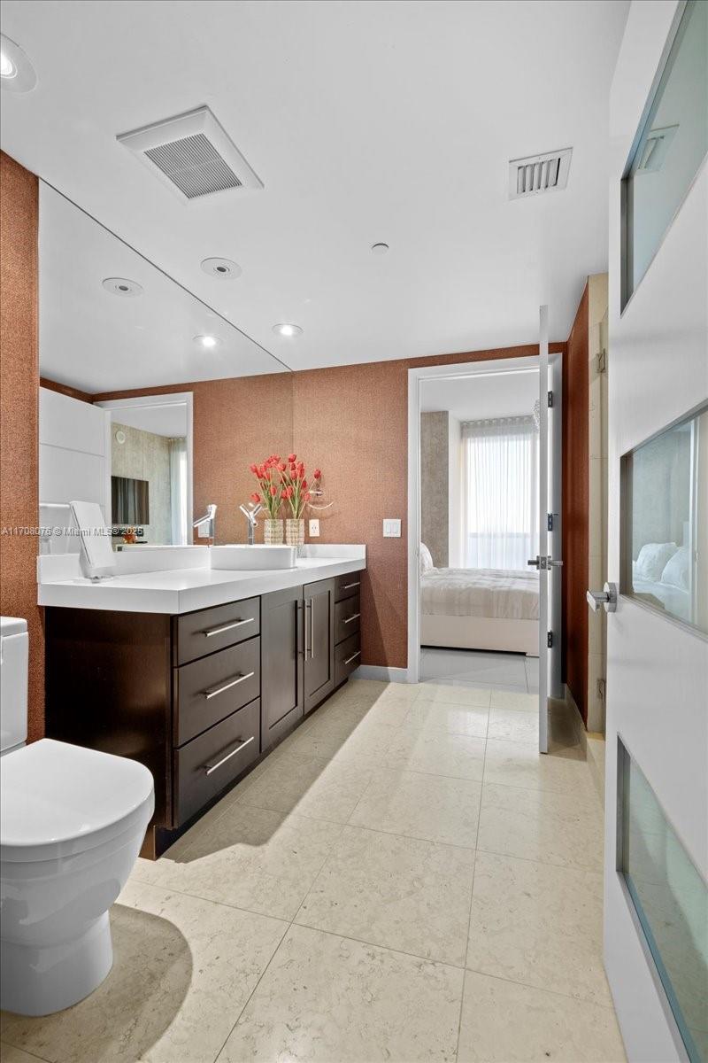 "EXCEPTIONAL OPPORTUNITY – LUXURIOUSLY 2 BEDROOMS + DEN, 44 FLOORS ABOVE BRICKELL. Enjoy breathtaking water views through floor-to-ceiling glass windows throughout the unit. No detail has been overlooked—custom upgrades include countertops, doors, cabinets, bathroom vanities, mirrors, and lighting. The extended kitchen countertops create a sophisticated dining area. With Miami’s finest amenities, ICON Brickell is the place to be! This unit also includes 2 parking spaces.