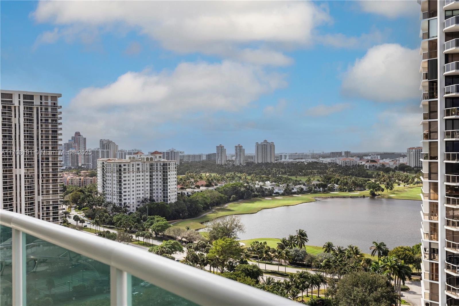 This expansive residence offers unhindered, breathtaking views of the ocean, intracoastal, and golf course circle. With 3 spacious bedrooms, 3.5 baths, a den (media room), and a separate laundry/maids' quarters, this home provides an ideal combination of comfort and versatility. Exclusive Amenities include a restaurant, movie theater, café, 2 gyms, 2 swimming pools, tennis courts, and complimentary exercise classes. The highly sought-after line of this unit features expansive balconies perfect for enjoying the stunning surroundings. Conveniently located just 5 minutes from Aventura Mall and Aventura Square, with numerous dining options nearby. Take a leisurely walk around the scenic 3.5-mile golf course circle.