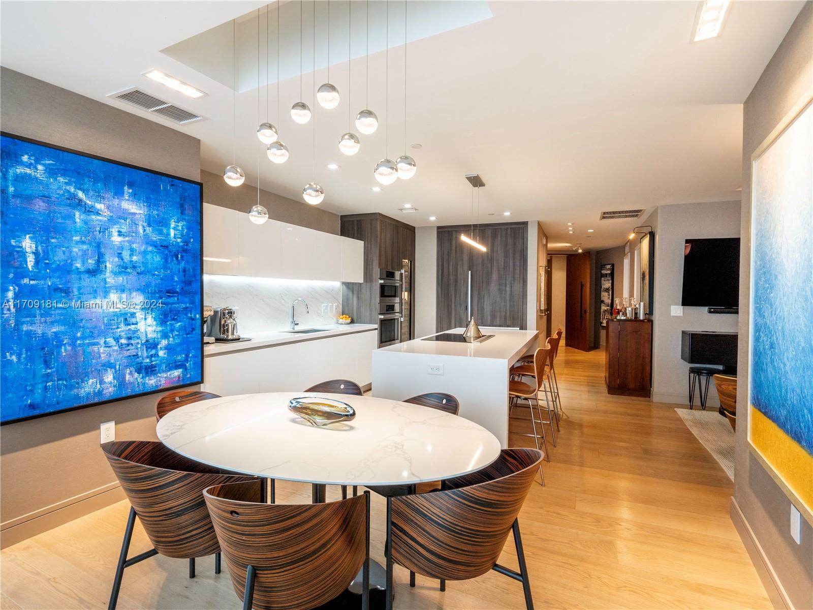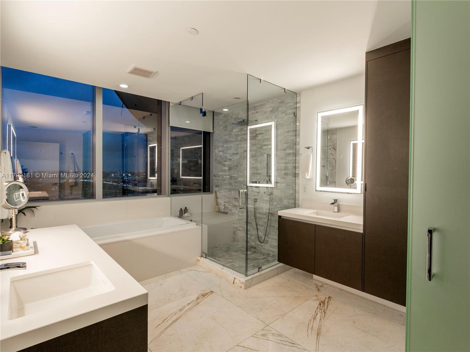 Welcome to a 2,320-SqFt home with 3 beds + den, 4 baths with views of the bay and city skyline at Paramount Miami Worldcenter. Enter through private elevator foyer with custom Walnut pivot door, extending to 2 outdoor terraces of 300 SqFt. Professionally designed with over $350k in luxury upgrades: English Oak wide-plank floors, custom profiled baseboards, upgraded fixtures, commercial grade lighting. Kitchen features paneled appliances, 102 bottle Sub-Zero wine fridge & large cooking island. Resort-style amenities: 5 pools, 6-acre amenity deck, state of the art fitness, boxing ring, spa, golf simulator, soccer field, basketball, tennis & racquetball courts. Located steps from dining, shopping & entertainment: Miami Heat/Kaseya Center, Performing Arts Center, Museums, Bayfront Park & more