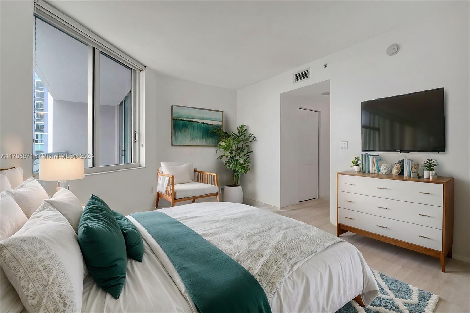 26th-floor corner apartment with beautiful views of Biscayne Bay, the Port of Miami, and the city skyline. The living room and second bedroom feature floor-to-ceiling windows, filling the space with natural light. The main bedroom offers a peaceful view of the bay and port. The unit includes an open layout, a private balcony, a functional kitchen, and plenty of cabinet storage. Amenities include bike storage, a billiard room, a business center, a clubhouse, a community room, an elevator, an exercise room, a heated pool, a regular pool, a sauna, and a spa/hot tub. Conveniently located near shopping, dining, and entertainment options.