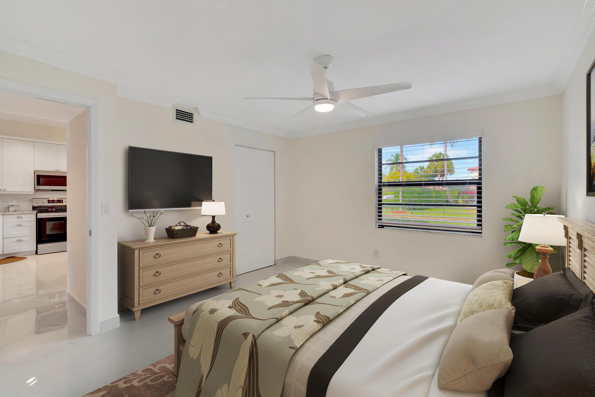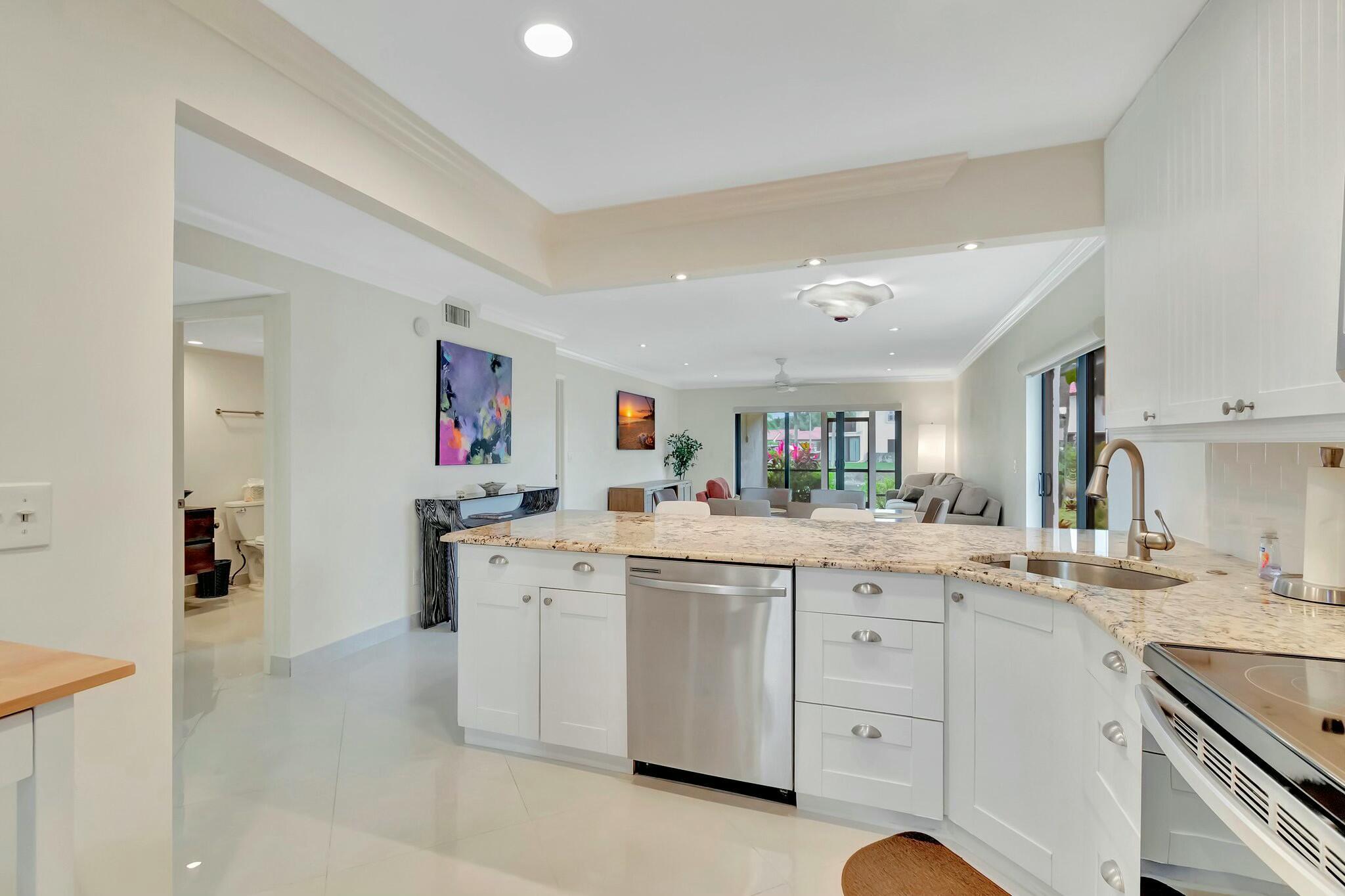 Move-in ready 2BR/2BA ground-floor corner condo with lake views in the gated & manned, membership-optional country club of Boca Lago. Fully remodeled with 24'' diagonal marble tile, crown molding throughout, open concept kitchen with quartz counters, white cabinetry, tile backsplash, and stainless-steel appliances. Updated bathrooms feature frameless showers with shower panels and body jets. Also includes no popcorn ceilings, solid wood doors throughout, built-in closets, total storm protection (impact windows/sliders/door), new window treatments, full size Samsung W/D, and newer A/C & tankless water heater (both 2020). Enjoy an enclosed lakefront patio + outdoor side patio just steps to pool & assigned parking. 2024 roof, strong reserves & no assessments. Offered partially furnished.