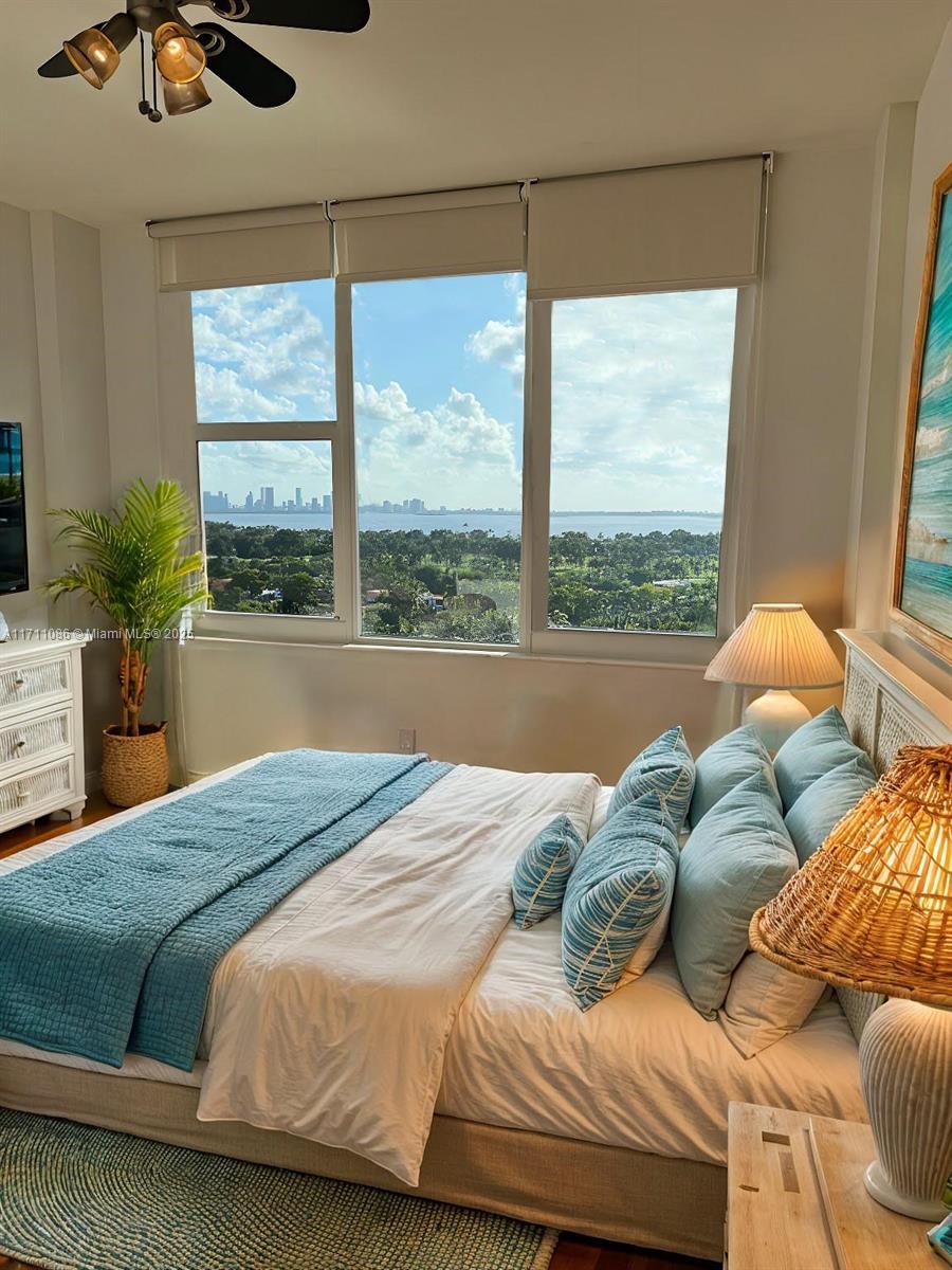 2-bedroom, 2-bathroom unit in a premier high-rise, featuring floor-to-ceiling windows in the living room that showcase sweeping water views and the dazzling downtown skyline. Both bedrooms have high-impact windows offering the same stunning views. Includes in-unit washer & dryer, 1 assigned parking space, and exclusive storage unit J on floor 15. Experience upscale living with resort-style amenities: a marina with 20 boat slips, a heated pool, a waterfront restaurant, and a state-of-the-art fitness center—all in a pet-friendly community. Maintenance fees cover cable, high-speed internet, water, and central A/C . Ideally located at 56th and Collins Avenue, near Bal Harbour Shops, pristine beaches, a scenic 7-mile boardwalk, top-rated schools, boutiques, and places of worship.