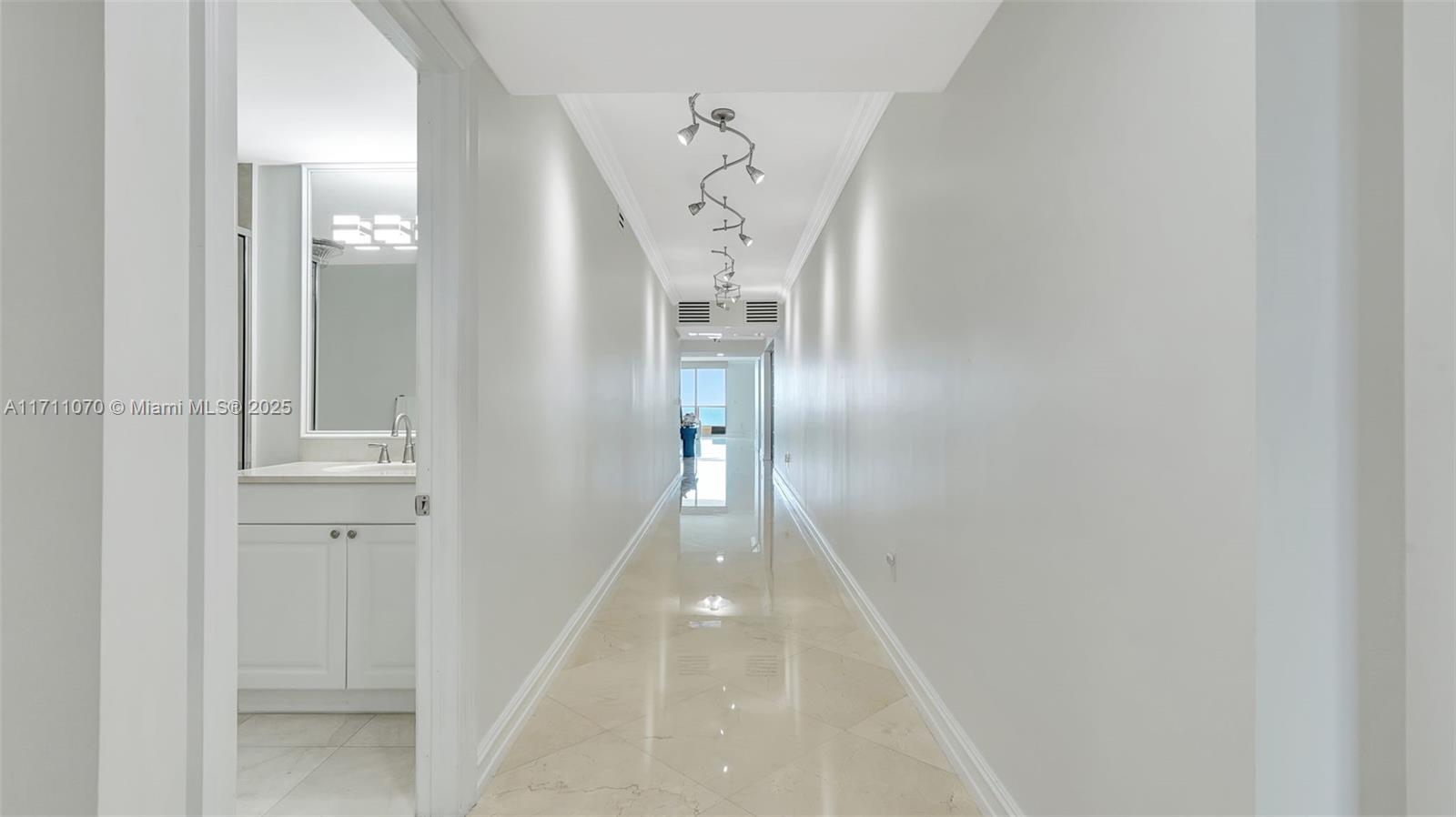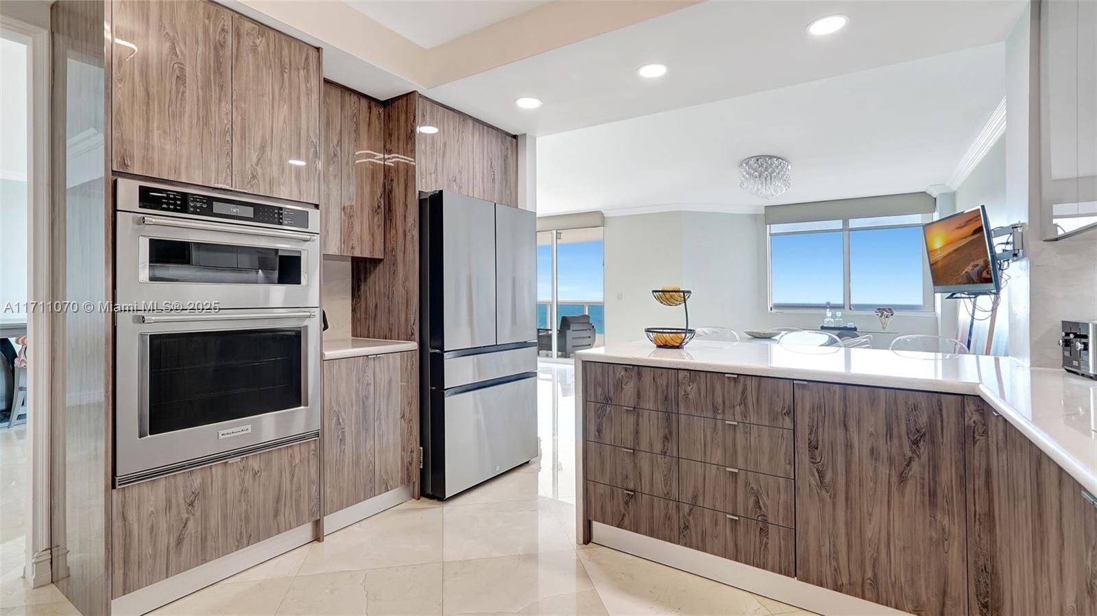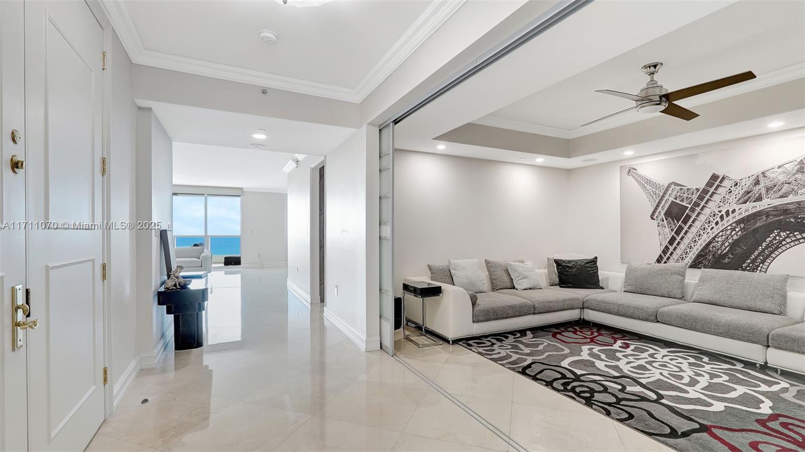 Extraordinary PENTHOUSE! Enter from private elevator foyer and immediately see the best ocean views over Golden Beach, intracoastal, golf/lake, & city views. This renovated spacious 3,264SQ FT residence is a 3 bedroom plus den or 4th bedroom, 4 baths, & 1 large utility room/ staff quarters, 2 New ACs. NEW NEW NEW state of the art gourmet kitchen just completed! Finest finishes, marble floors, throughout. Large primary suite with custom closets. Expansive terraces. A must see! Five Star Amenities: Pools, Gym, Media Rm, Library, Event Rm, Spa, Sauna, Nail Spa, Racquetball & Tennis Courts, Kid Rm, Teen Rm, Card Rm, & Private Hamptons Restaurant, Movie Theater, Cafe & More!