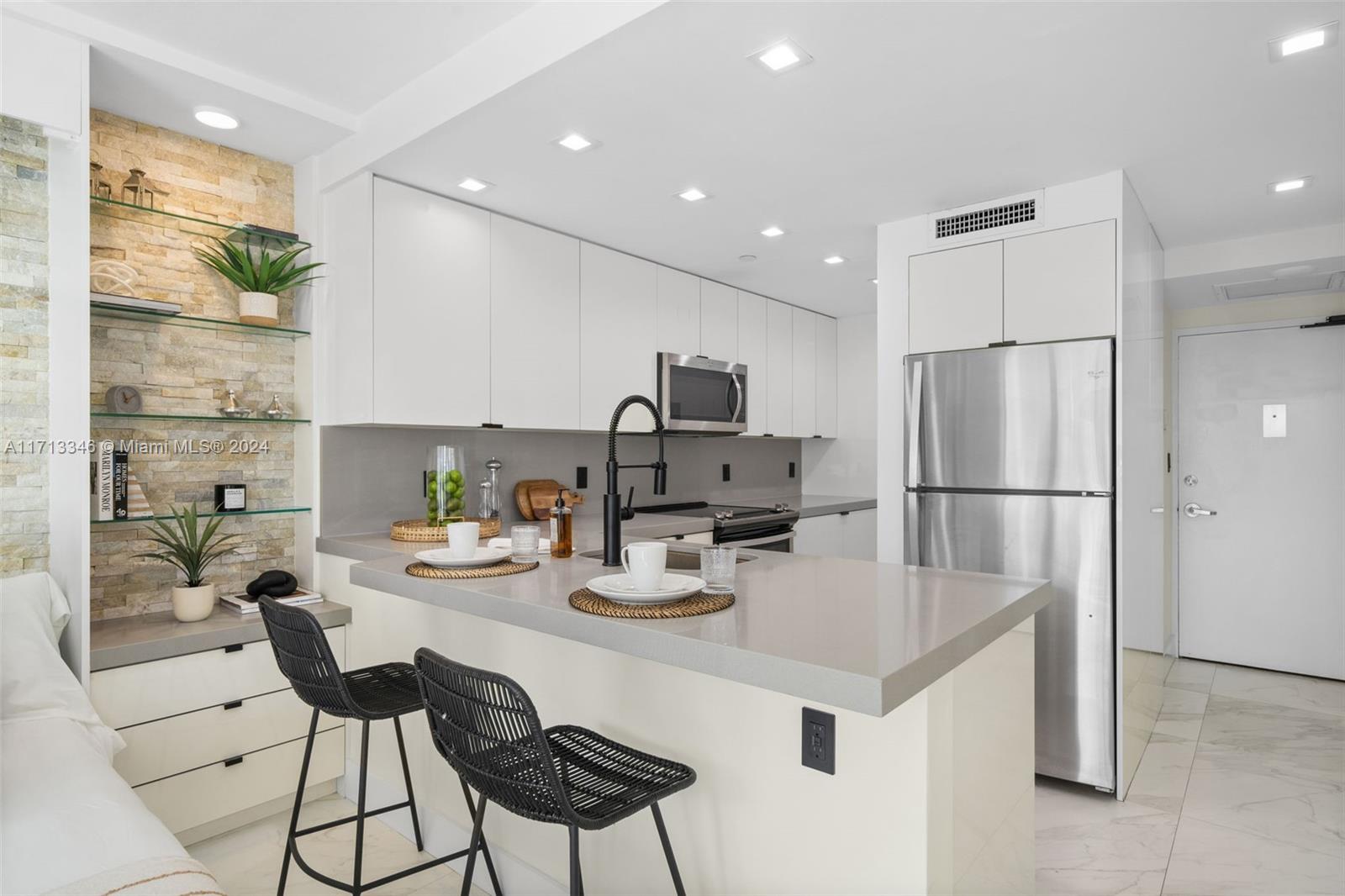 Absolutely stunning, meticulously remodeled unit at the Mirador North. Best location within the building - the closest balcony to Biscayne Bay which offers full privacy. The views are incredible! Unit features an open kitchen with lots of storage, in-unit washer/dryer, updated bathroom, Murphy bed, beautifully finished walk-in closet, and impact windows. Mirador is located in the most walkable area of South Beach - steps to Whole Foods, Sunset Harbor, Lincoln rd, and a short walk to the beach. Resort-style amenities include a newly equipped fitness center, bay front pool and jacuzzi, convenience store, 24/7 security etc. Valet is available at an additional monthly cost. Pets welcome, can rent right away for 4 months minimum up to 2x year. Can be sold furnished or unfurnished. A MUST SEE!