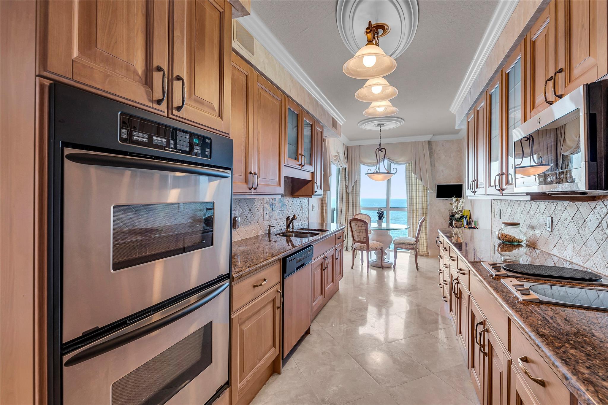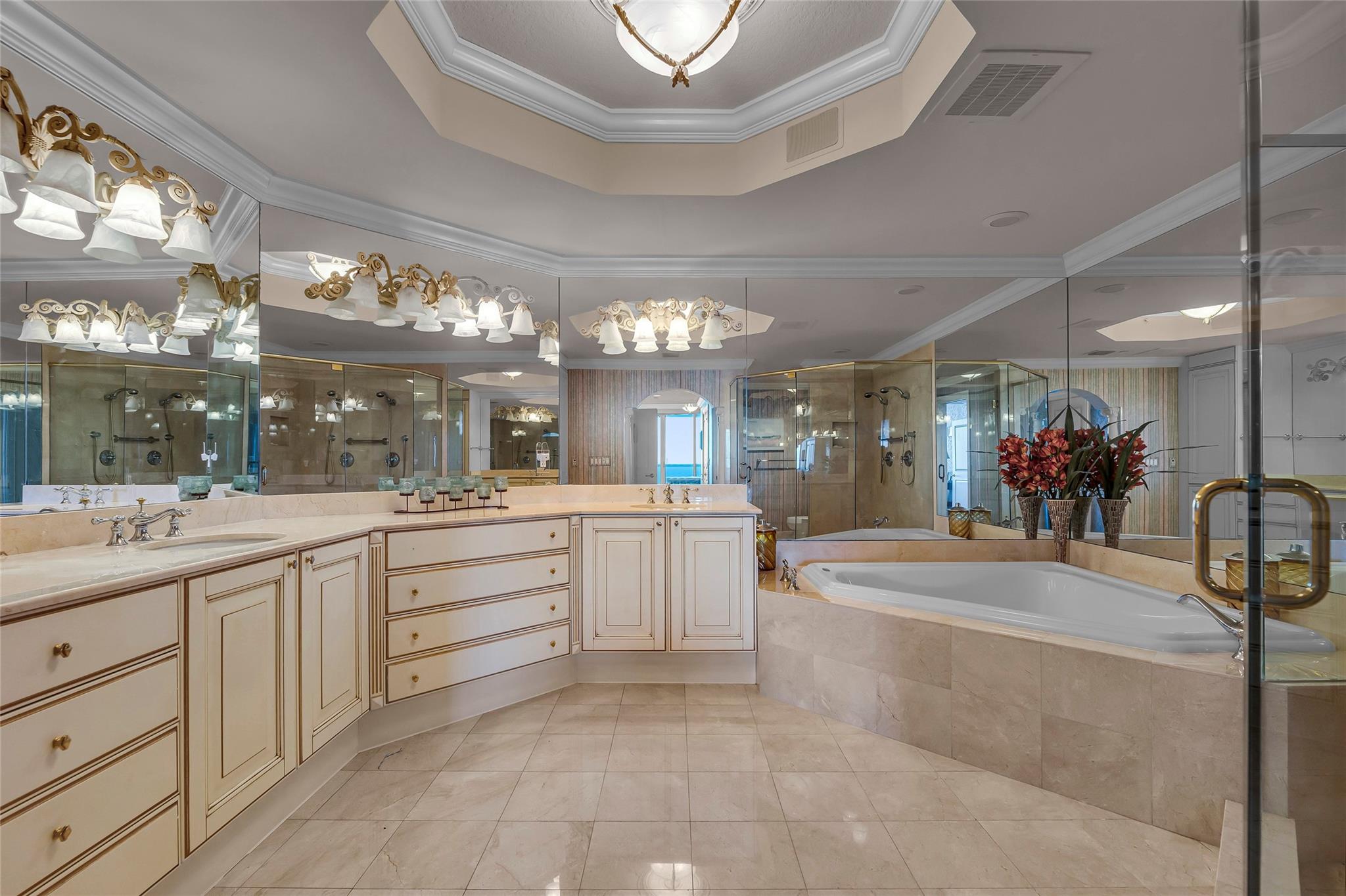Rarely available, this stunning 21st floor L'Ambiance condo offers panoramic ocean and Intracoastal views. With only three units on the entire floor, a transitional floor plan and floor-to-ceiling windows, this unit offers gorgeous natural light spanning from east to west. Enjoy exceptional amenities, including a pool, hot tub, BBQ, wine room, and a state-of-the-art gym. Three covered garage spaces are deeded to the unit. EV chargers and valet service are available.