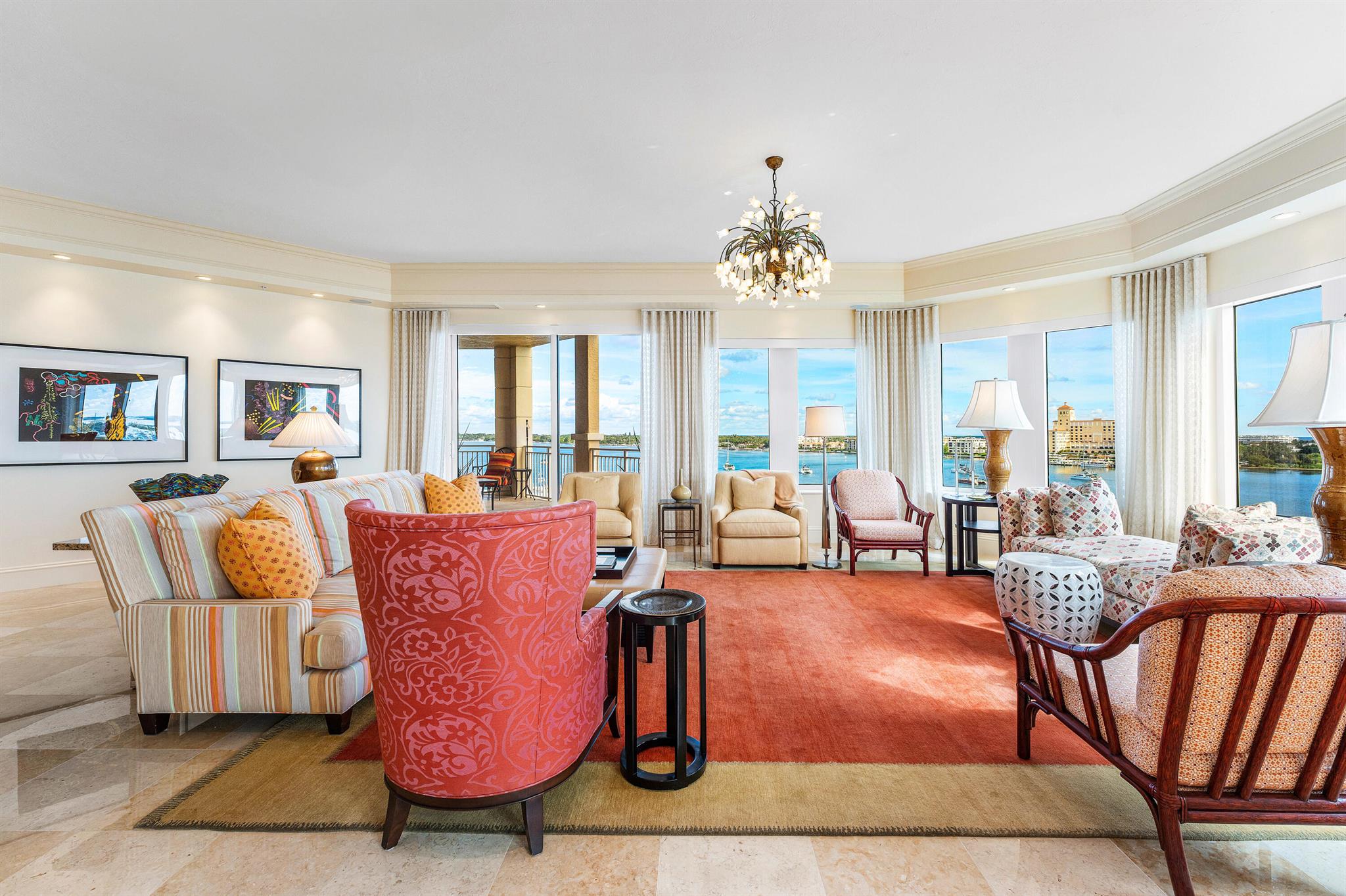 Welcome to Estate Tower Residence 604, an exceptional 4 bed, 4.5 bath residence overlooking breathtaking views of the Intracoastal, Palm Beach, and Atlantic from within West Palm's prestigious One Watermark Place. Become immersed in the sights of both sea and city from the moment you exit your private elevator foyer into the remarkable 5,650 sq. ft. of open living spaces, including a gourmet kitchen with custom finishes and state-of-the-art appliances, and a total of 787 sq. ft. private terraces perfect for entertaining. A boutique building of just 48 waterfront residences, the renowned One Watermark Place offers a full-service lifestyle & resort-quality amenities to its residents, including a newly completed full-service marina with 22 slips for vessels ranging from 46-100+ ft in length