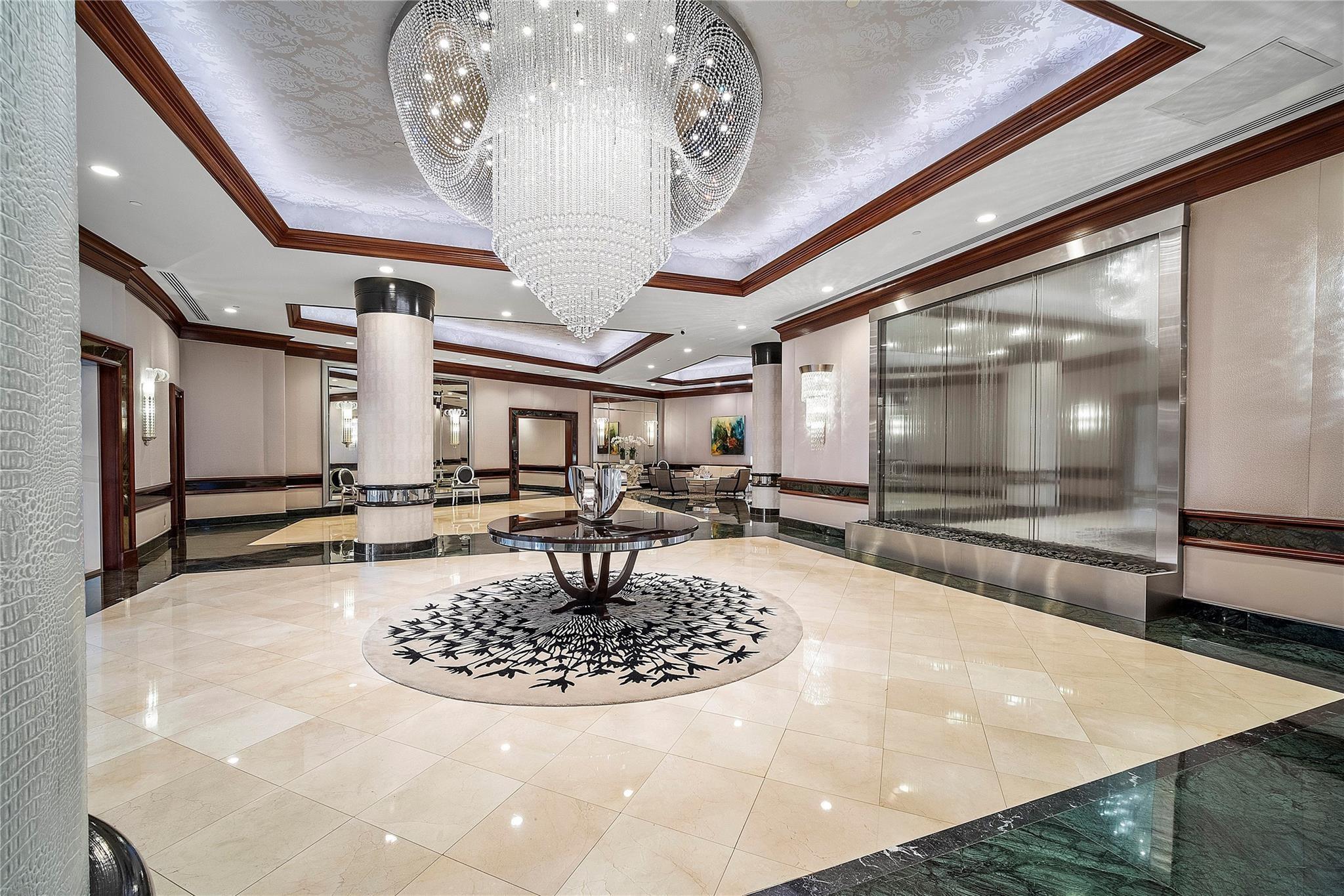 Enjoy breathtaking direct ocean, coastline, Intracoastal, and downtown views from every angle in this stunning high-floor double-corner unit at the Carlyle in L'Hermitage. This meticulously renovated residence offers a sophisticated blend of luxury and modern convenience, featuring high-impact windows, porcelain flooring, and an open-concept kitchen with top-tier cabinetry and appliances. The design layout includes extra closet space, a spacious laundry room, a den/third bedroom, and two expansive patio decks perfect for entertaining or relaxing. The unit also boasts private elevators, elegant glass front doors, a new A/C and water heater, a surround sound system, a smart thermostat, a smart lighting system, and a water filtration system. Pre-plumbing for wet bar in living room provided.