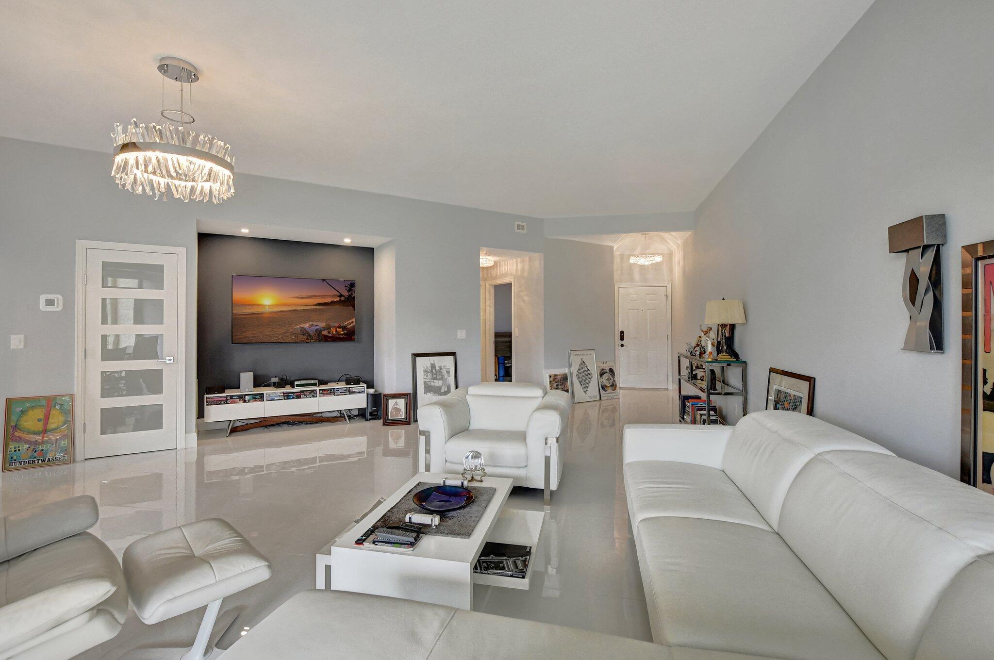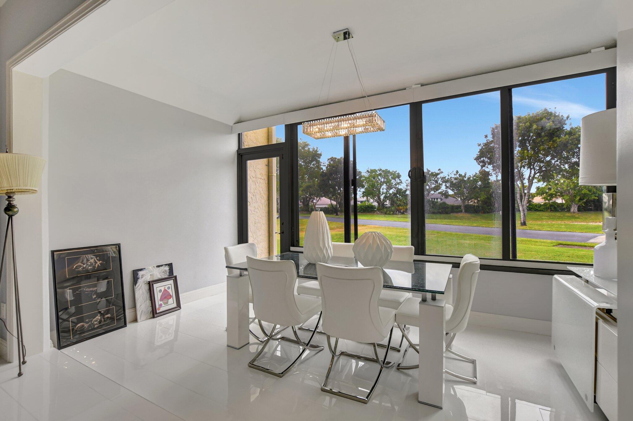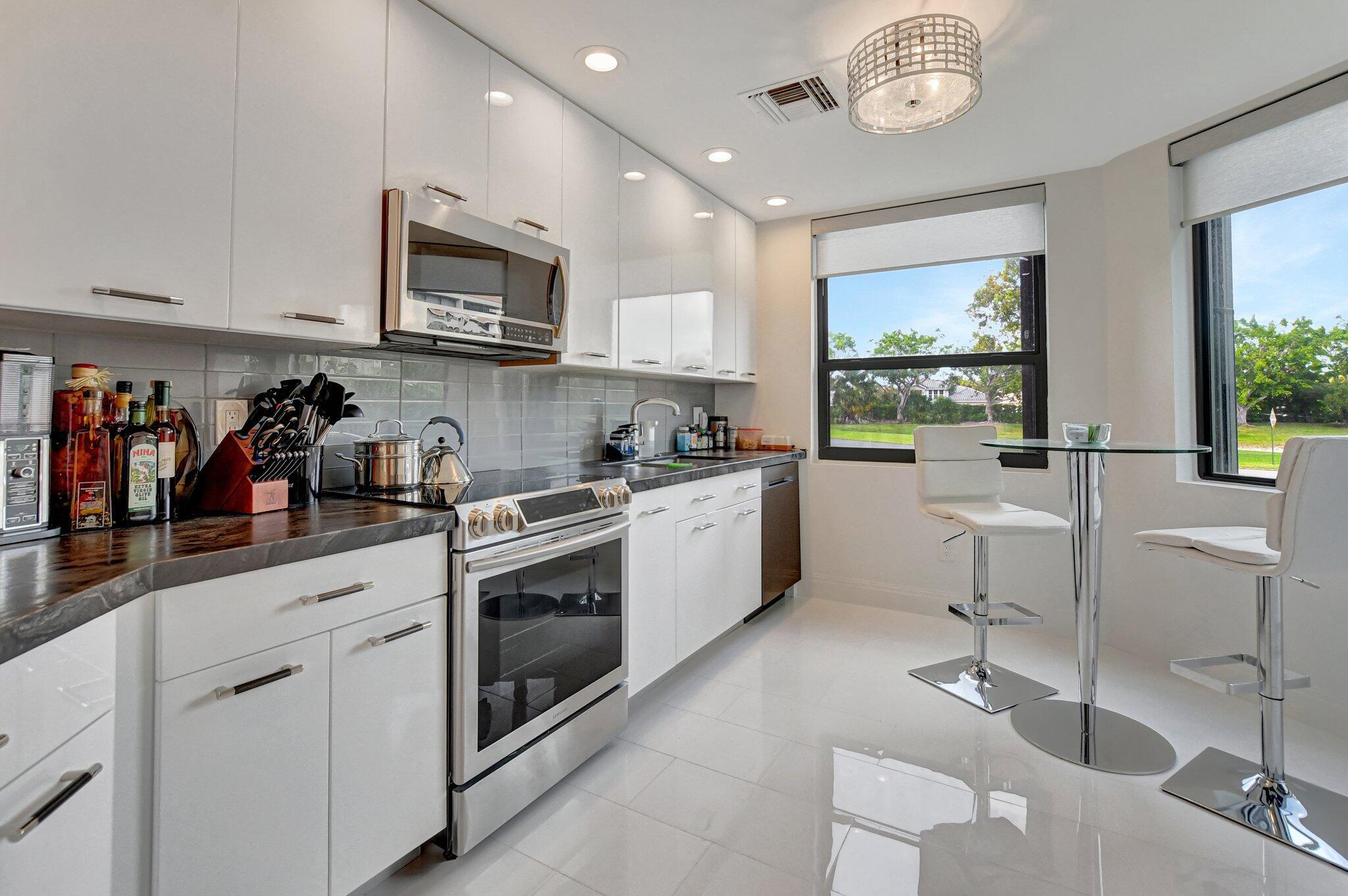 Spacious and beautifully updated first-floor garden apartment with 2 bedrooms and 2 baths. Every detail of this home has been thoughtfully renovated, featuring elegant large tile floors that flow seamlessly throughout. The enclosed patios provide additional versatile living areas. Recently updated kitchen shines with sleek countertops, modern cabinetry, and upgraded appliances, while the renovated bathrooms feature contemporary finishes and fixtures. One covered, assigned parking space. Impact glass throughout. Nestled in a vibrant community offering 2 sparkling pools, 2 tennis courts, and a welcoming community room, this condo is the perfect place to call home. Don't miss out on this meticulously maintained and move-in-ready property!