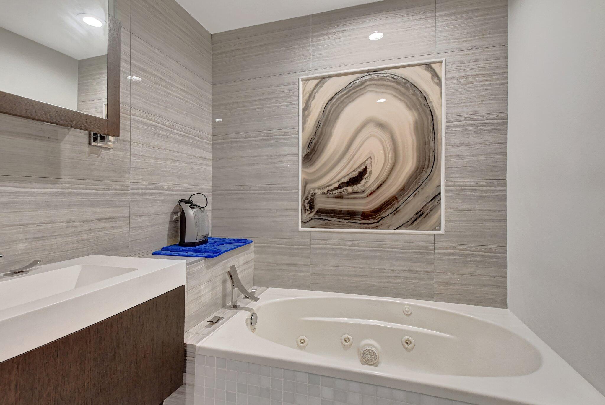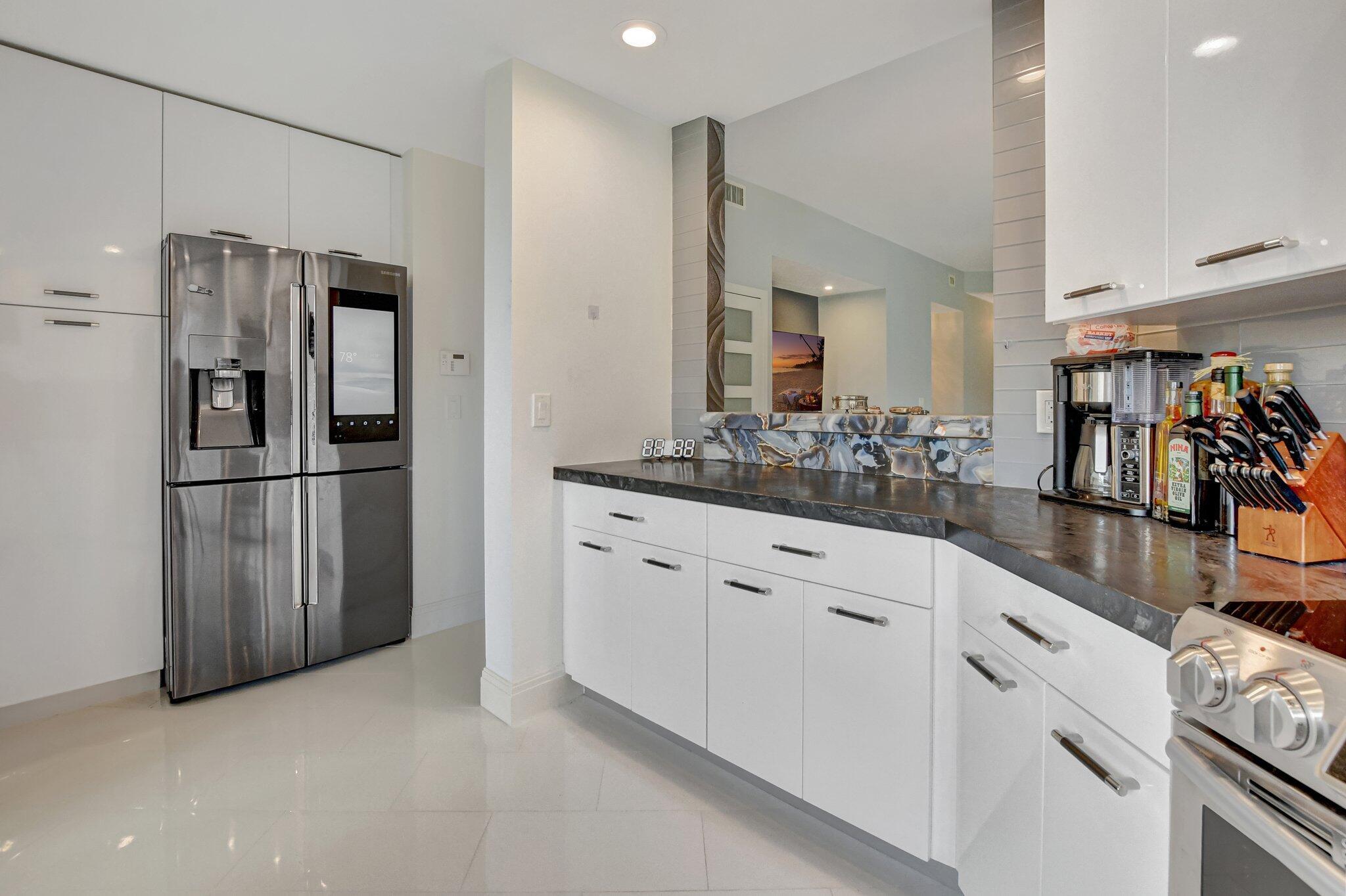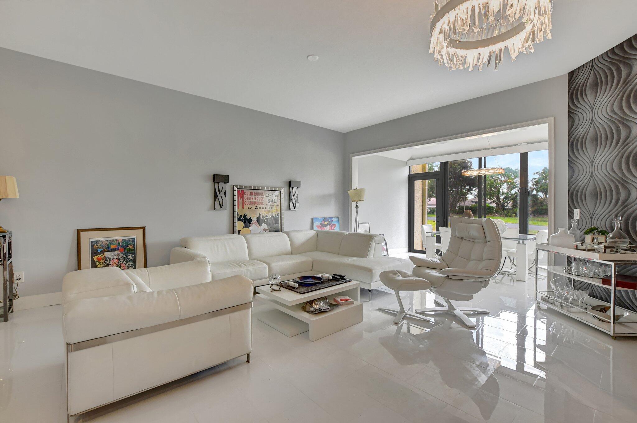 Spacious and beautifully updated first-floor garden apartment with 2 bedrooms and 2 baths. Every detail of this home has been thoughtfully renovated, featuring elegant large tile floors that flow seamlessly throughout. The enclosed patios provide additional versatile living areas. Recently updated kitchen shines with sleek countertops, modern cabinetry, and upgraded appliances, while the renovated bathrooms feature contemporary finishes and fixtures. One covered, assigned parking space. Impact glass throughout. Nestled in a vibrant community offering 2 sparkling pools, 2 tennis courts, and a welcoming community room, this condo is the perfect place to call home. Don't miss out on this meticulously maintained and move-in-ready property!
