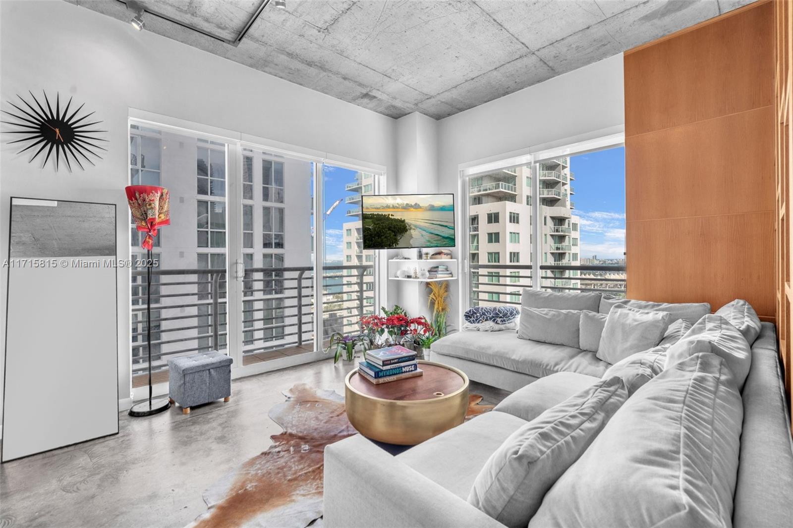 STUNNING SOUTH-FACING CORNER UNIT WITH GORGEOUS WESTERN VIEWS! This stylish 2-bedroom, 2-bathroom residence on the 25th floor features a modern open floor plan, 10-ft high ceilings, and sleek polished concrete floors. Being sold partially furnished, including custom-made desks and beds in both bedrooms—move-in ready! Currently rented until March, this unit is an excellent income property with strong rental potential. Enjoy a well-managed building with strong reserves and low condo fees. Fees include Wi-Fi, cable, water, trash, and 24-hour security. Amenities include a rooftop pool, lap pool, gym with panoramic views, club room, sauna, and hot tub. Optional garage parking for $60/month. Located in a vibrant neighborhood with trendy cafes—perfect for modern living!