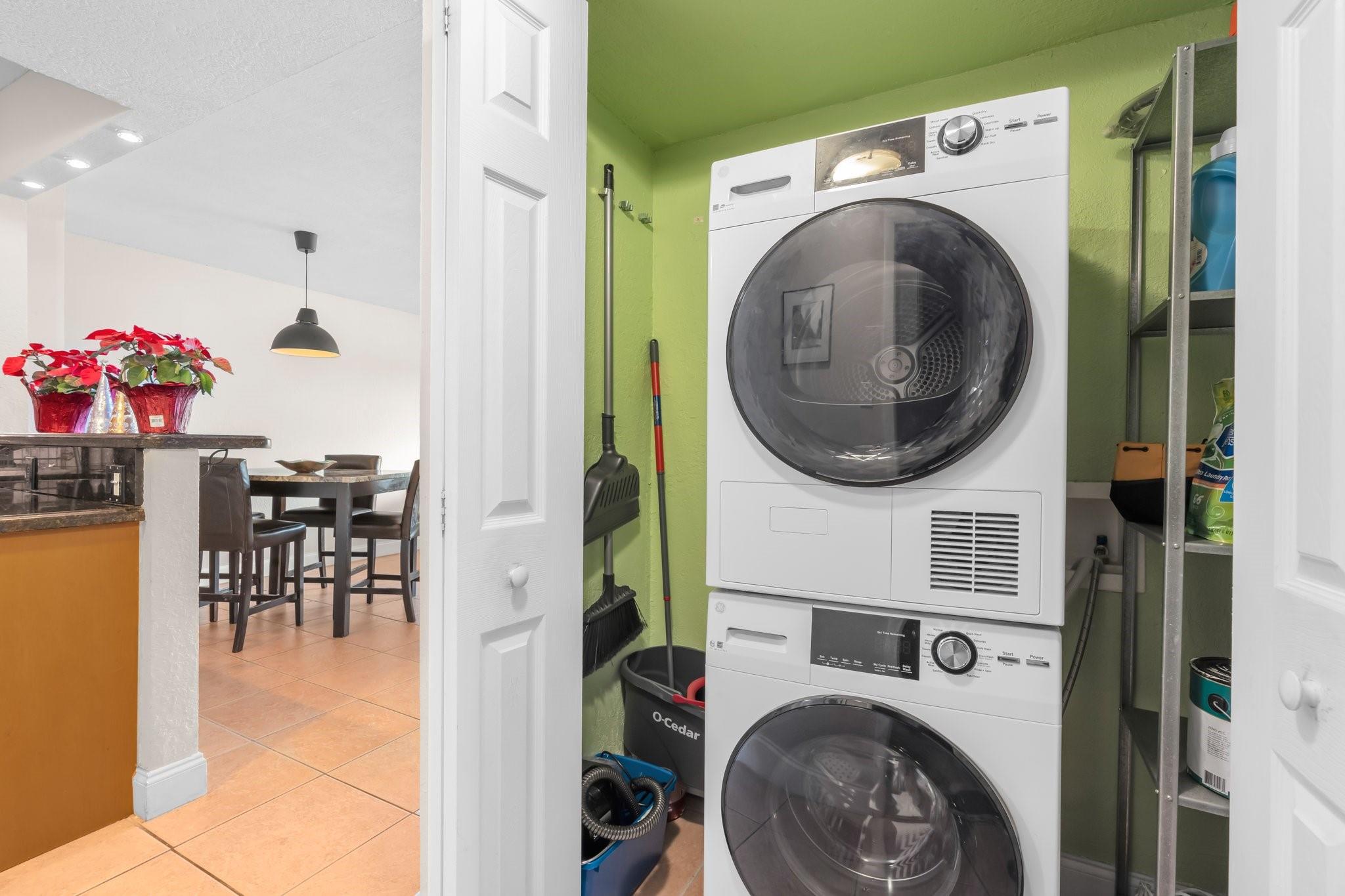 This beautiful 2 bedroom, 2bathroom condominium offers a perfect blend of comfort and convenience. Enjoy two private balconies: one off the master bedroom, overlooking the scenic Normandy golf course, and the other off the second bedroom with a serene view of the canal. The master bedroom is equipped with custom-built closets, providing ample storage space. The unit comes fully equipped with modern appliances, including a brand-new in-unit washer and dryer and a new refrigerator. Additional features include central air conditioning, two parking spaces in a secure garage with remote control entrance, and extra storage space in the garage for bikes or personal belongings. There’s also a dedicated space for a moped. Ideal for those seeking a relaxed lifestyle in a prime location.