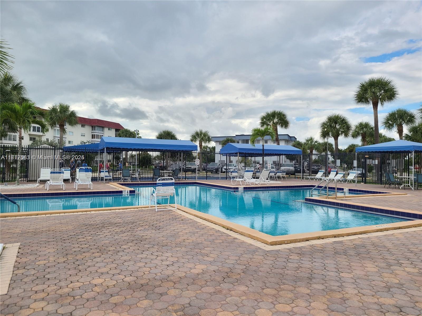 Cozy 1 Br, 1 Ba with eat-in kitchen in Castle Gardens Apartments, 55+ community. Closed-in-porch, convenient parking space located next to rear door entry, secure intercom, security patrol, neat and clean lobby. Community has lots of amenities, heated pools large club house, gym and much more. Close to Shopping and Dining