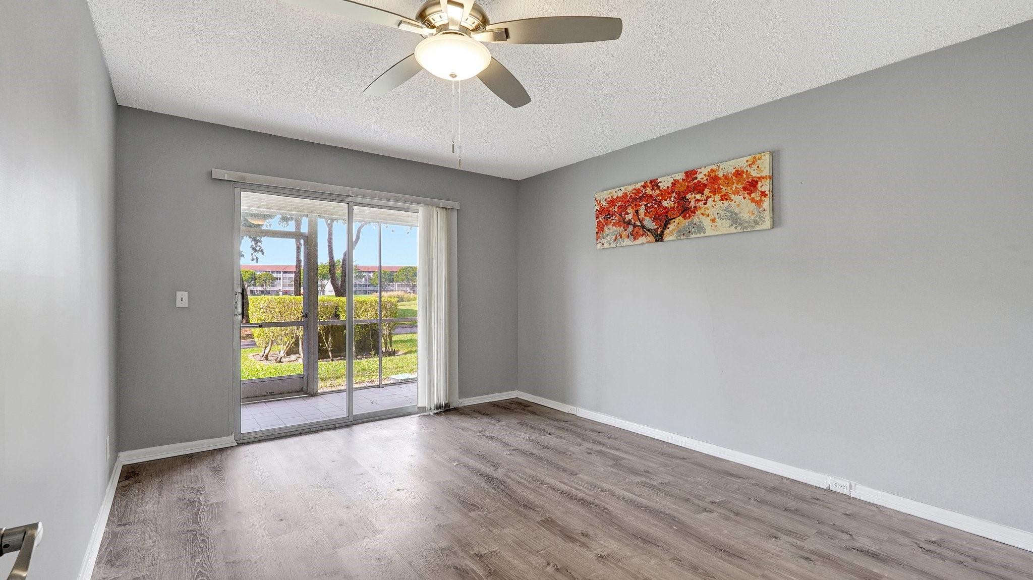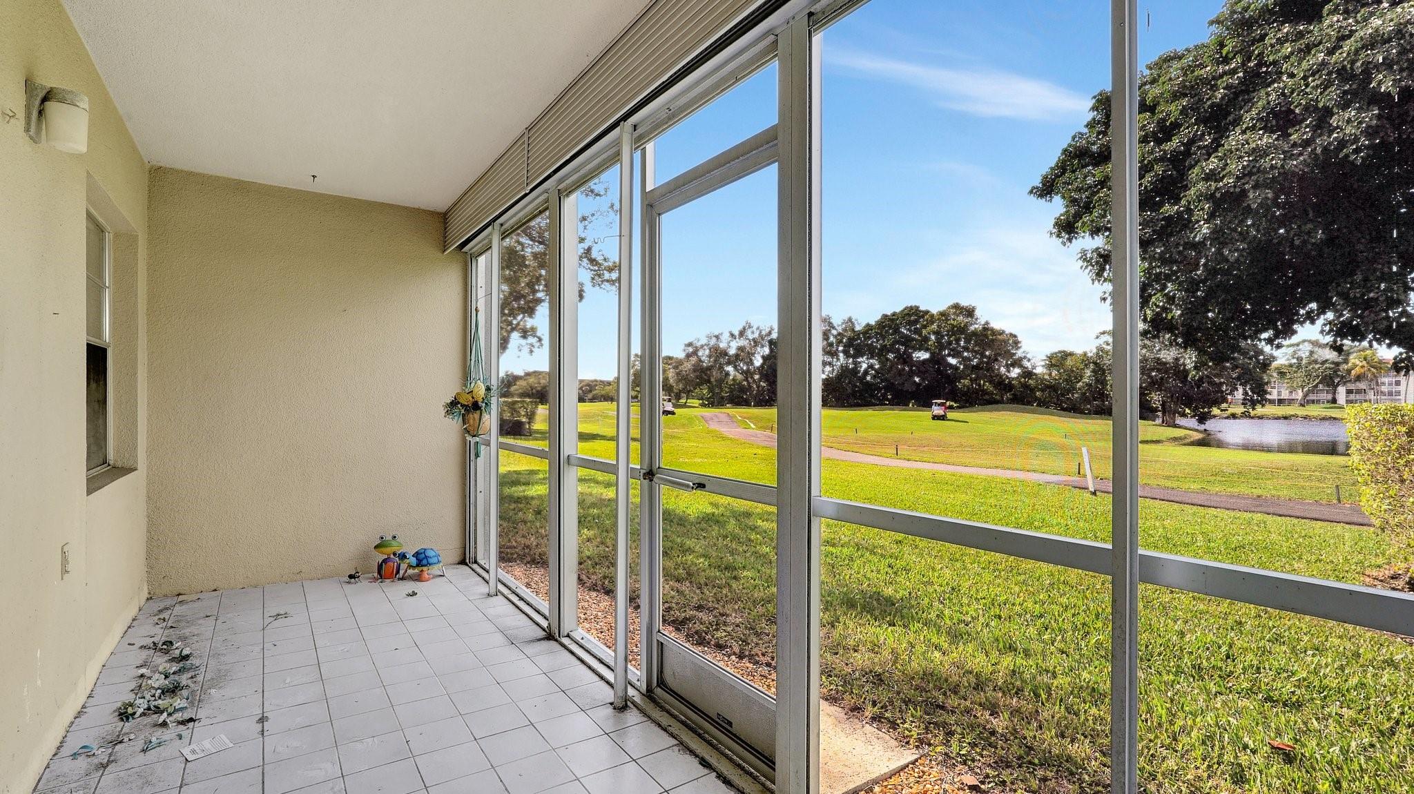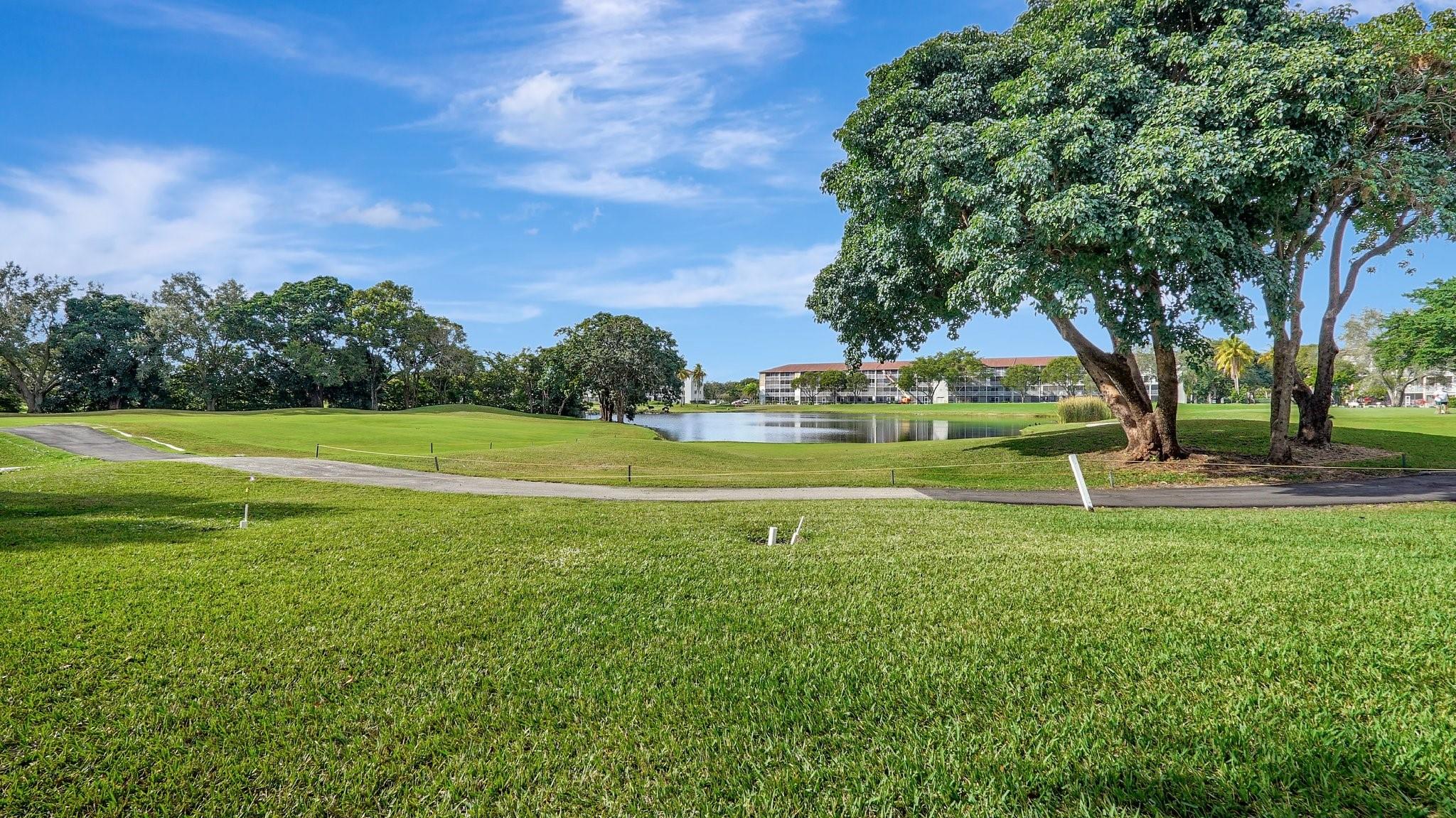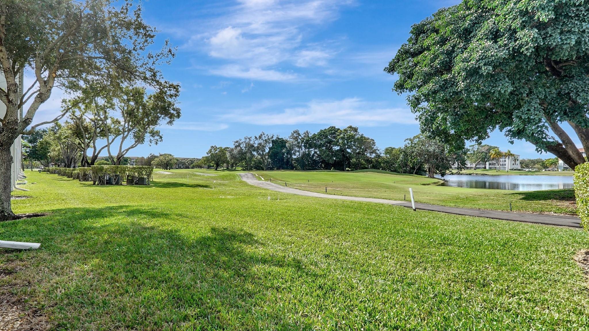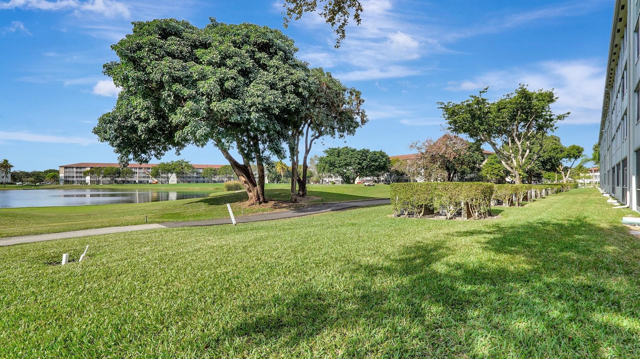 Fabulous 1st Floor Corner Unit!!! Open floor plan that is remodeled, new flooring throughout with amazing views of water and no rear neighbor. Lots of windows that allow all of the natural light that you need to see the beautiful scenery. Two bedrooms and two full bath which leaves your master bedroom with its own private bathroom and walk in closet. Updated kitchen with quartz countertops. Just bring your toothbrush and live the lifestyle so desired in Century Village. 24/7 security in a gated community provides peace of mind. Private screened patio with extra built-in storage. AC 2022 Water, Cable, and Internet Included in the HOA payment. 1 assigned parking. Plenty of guest parking. FREE shuttle service to shops and restaurants. CAN BE RENTED IMMEDIATELY AND READY TO MOVE.