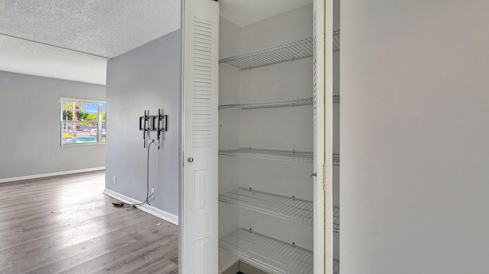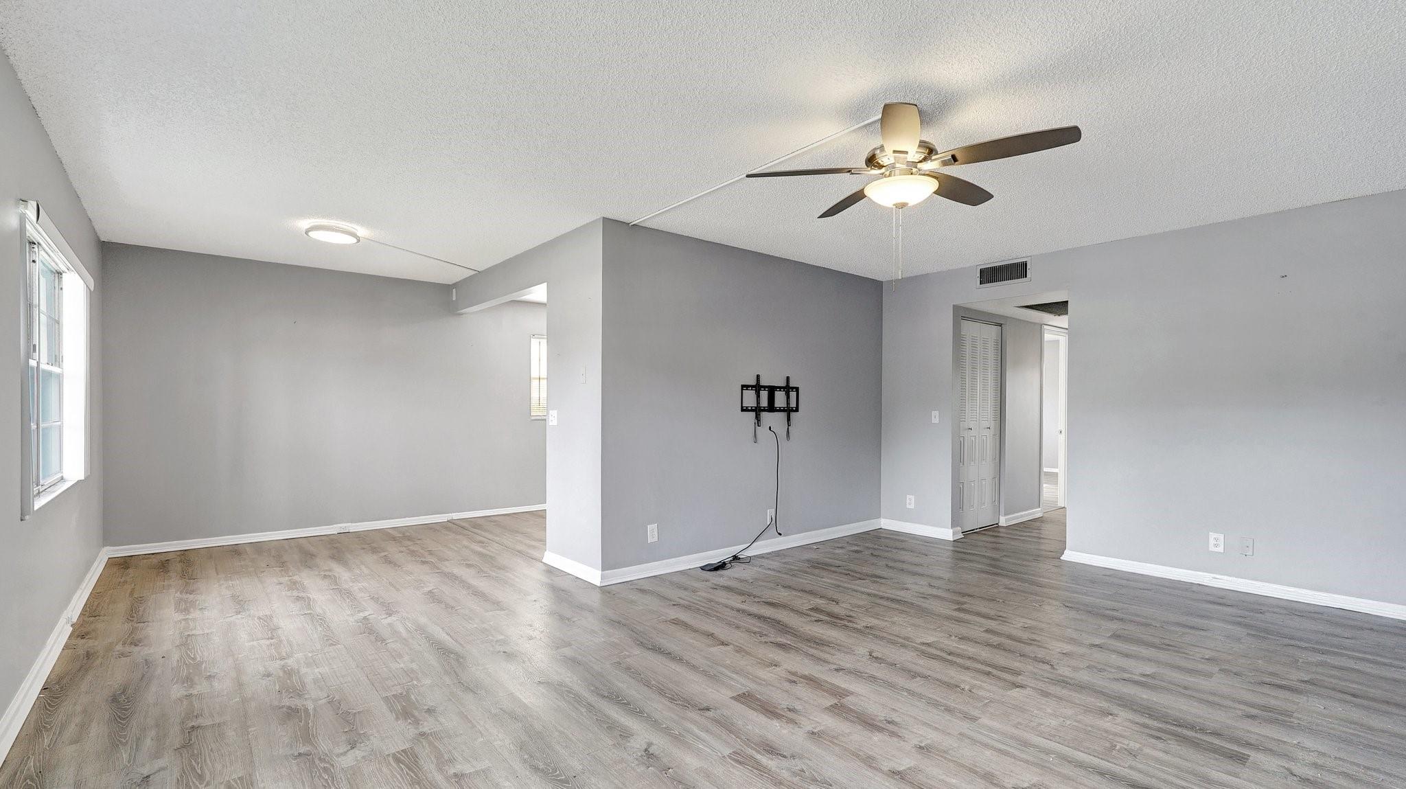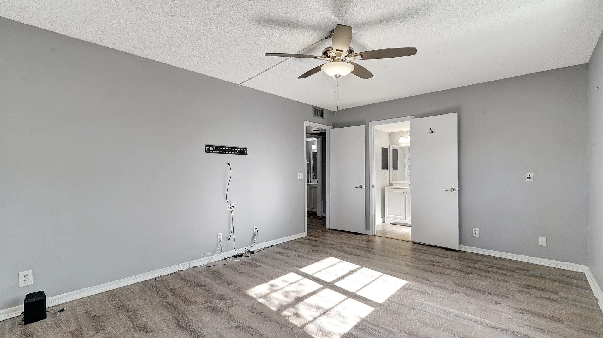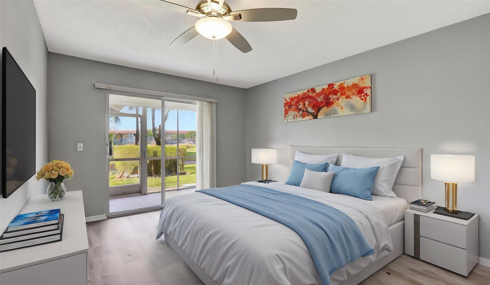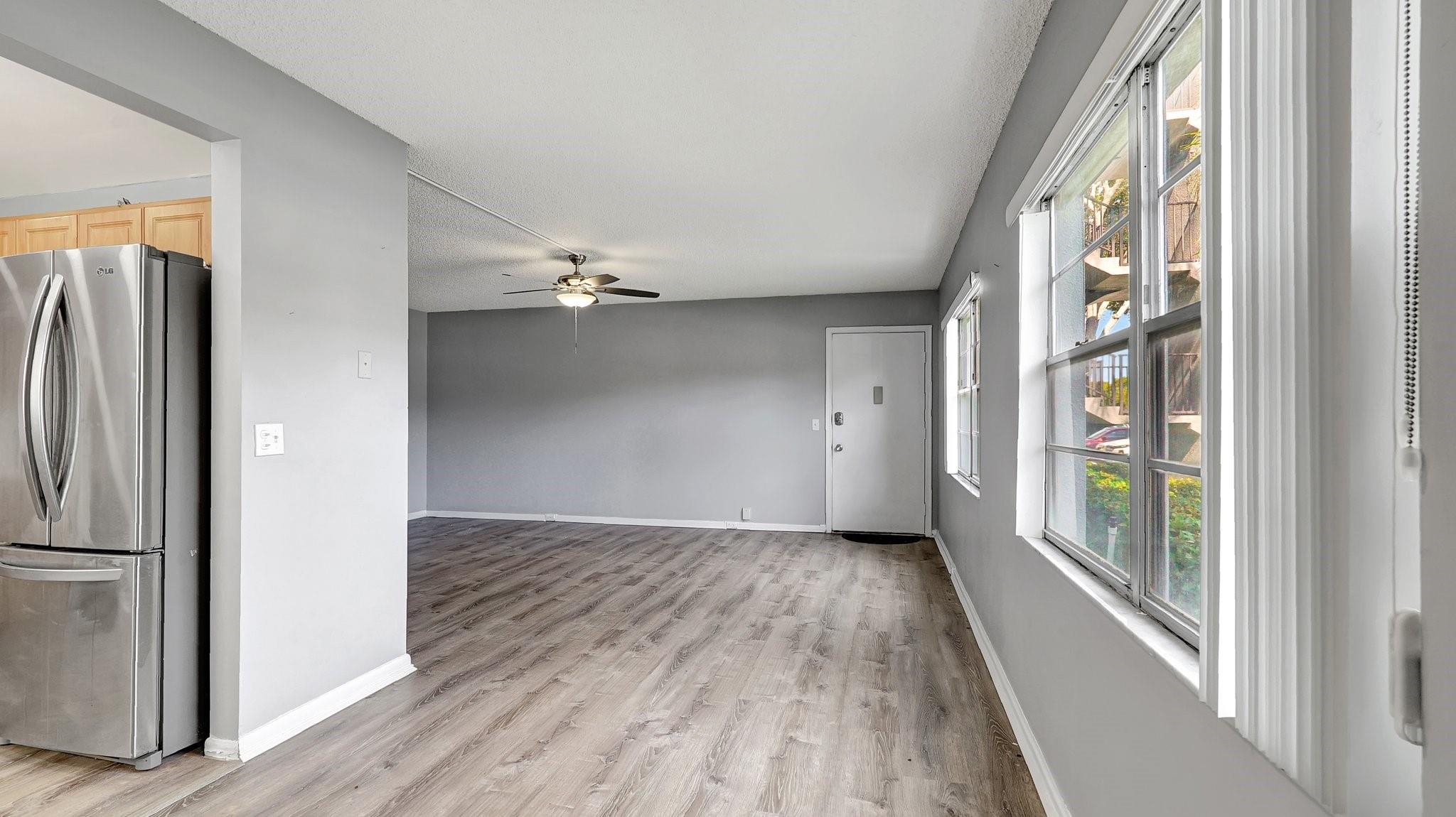 Fabulous 1st Floor Corner Unit!!! Open floor plan that is remodeled, new flooring throughout with amazing views of water and no rear neighbor. Lots of windows that allow all of the natural light that you need to see the beautiful scenery. Two bedrooms and two full bath which leaves your master bedroom with its own private bathroom and walk in closet. Updated kitchen with quartz countertops. Just bring your toothbrush and live the lifestyle so desired in Century Village. 24/7 security in a gated community provides peace of mind. Private screened patio with extra built-in storage. AC 2022 Water, Cable, and Internet Included in the HOA payment. 1 assigned parking. Plenty of guest parking. FREE shuttle service to shops and restaurants. CAN BE RENTED IMMEDIATELY AND READY TO MOVE.