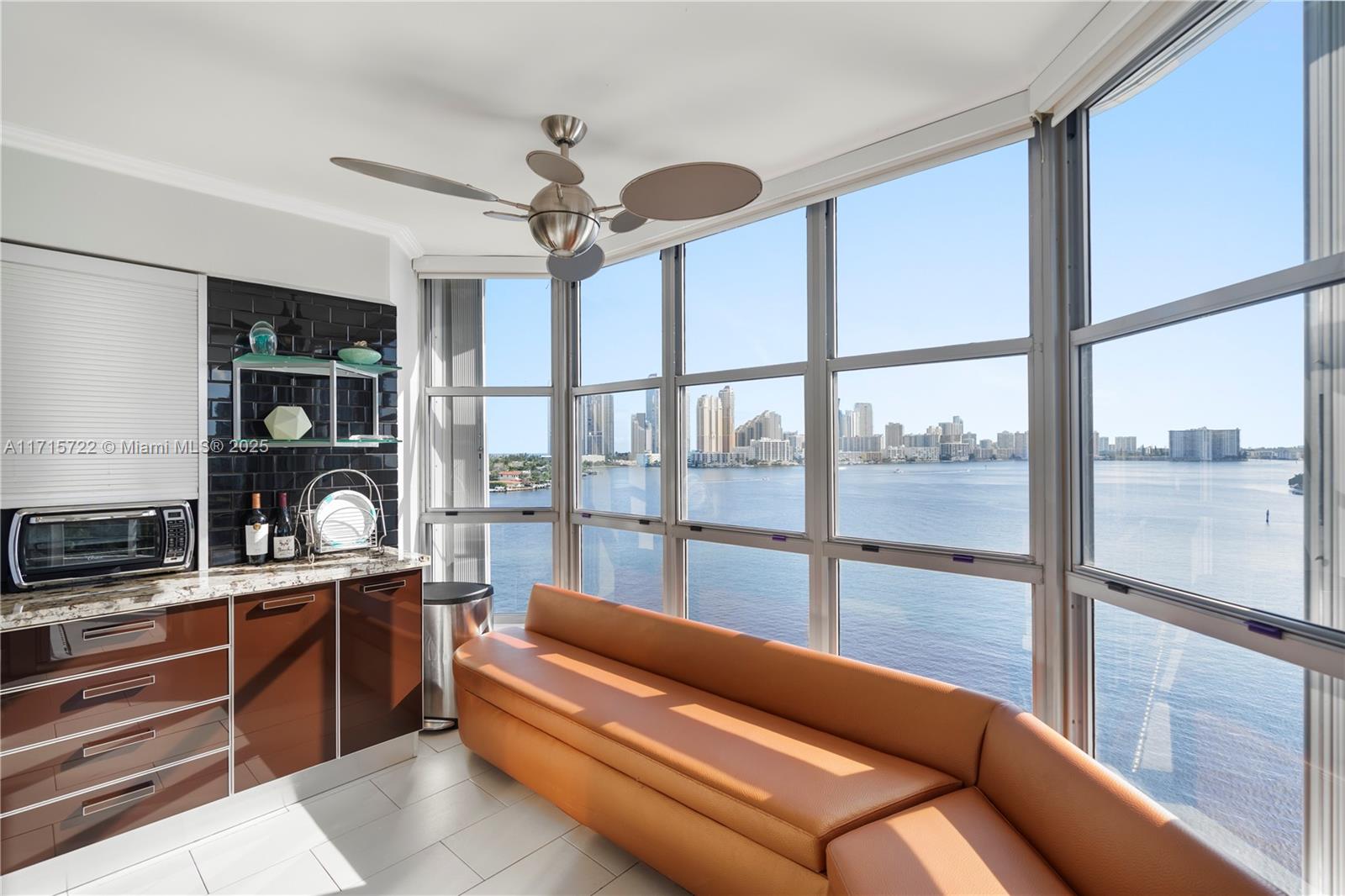 Experience the best line with breathtaking direct Intracoastal views, offering expansive water vistas and unique sunrises and sunsets. This stunning condo features an open, modern kitchen with state-of-the-art appliances, smart home features, floor to ceiling windows, and a seamless integration of ceramic and engineered floors. The spacious primary bedroom boasts an ensuite bathroom with universal shower design and a custom-made walk-in closet. Ample closet space and wrap-around balcony with hurricane shutters. Resort-style amenities such as pickleball, tennis, marina, pool, gym, restaurant, mini-market, lush grounds, private lake, and basketball. Mystic Pointe is located close to houses of worship, Aventura Mall, intl airports, the beach and Bal Harbour Shops. A true waterfront paradise!