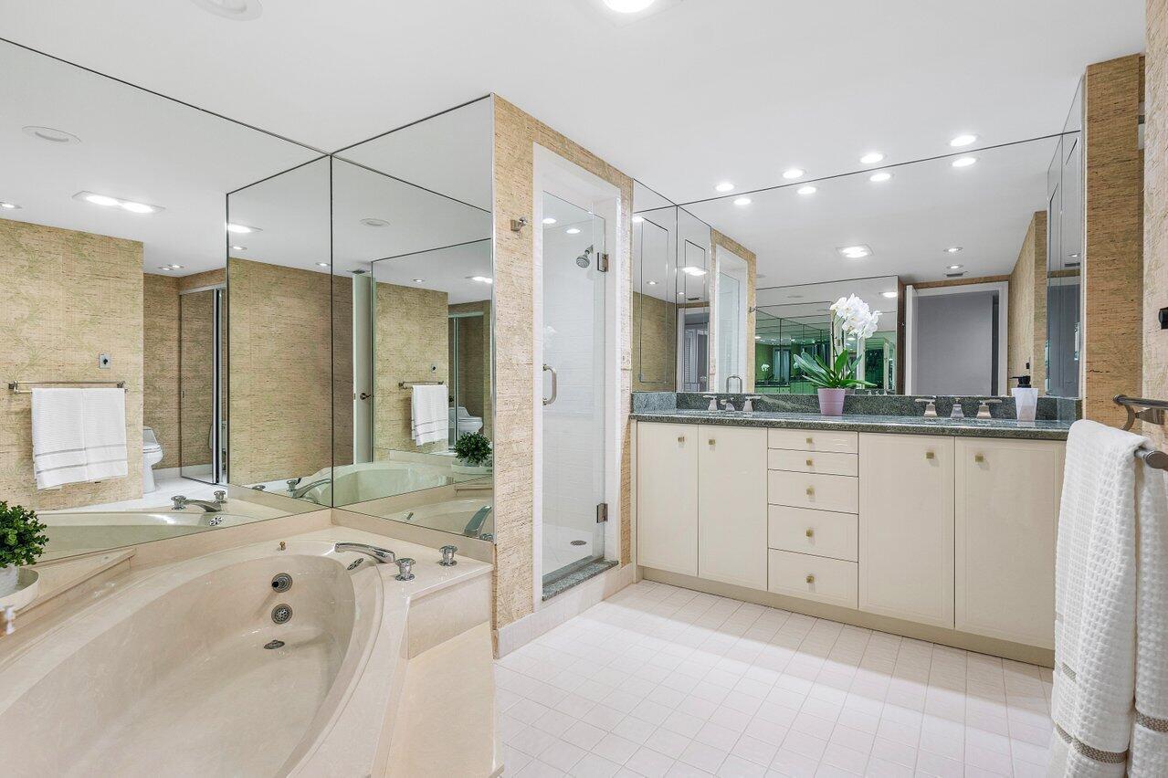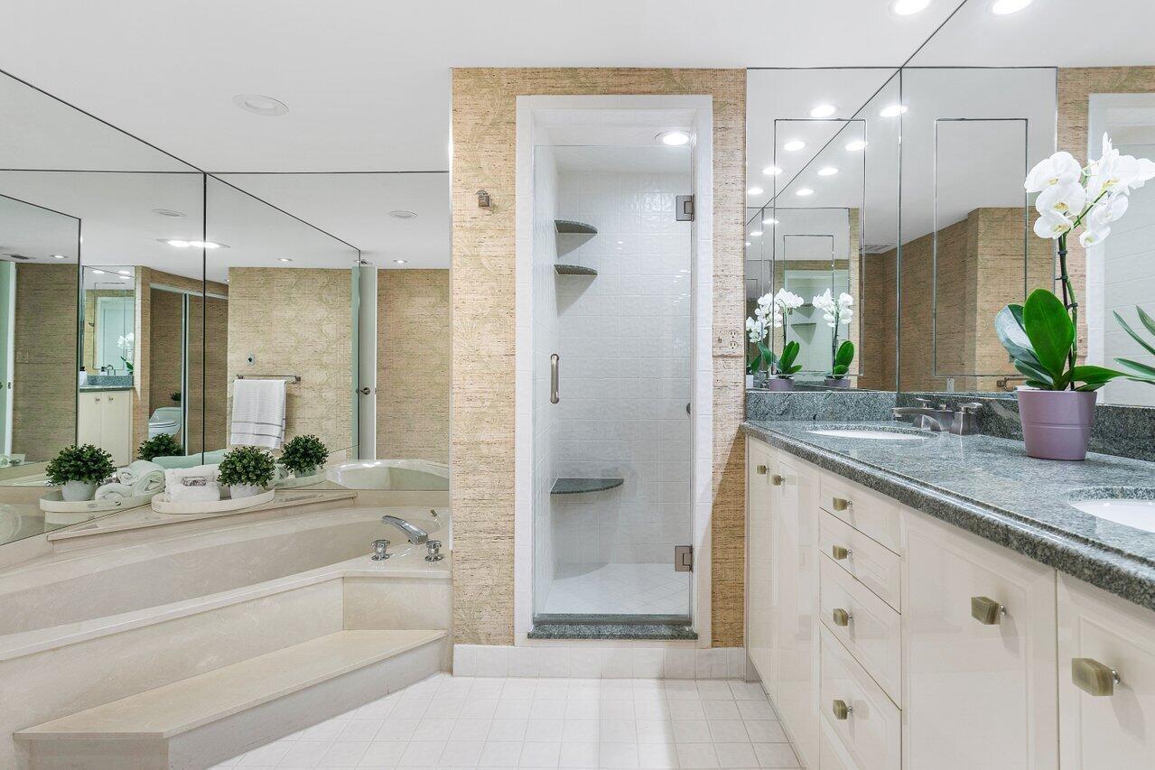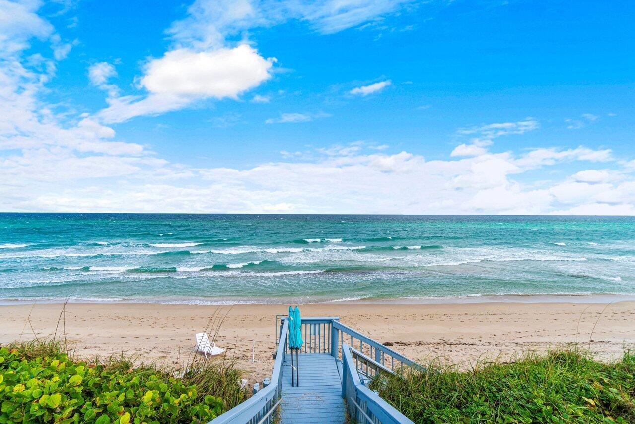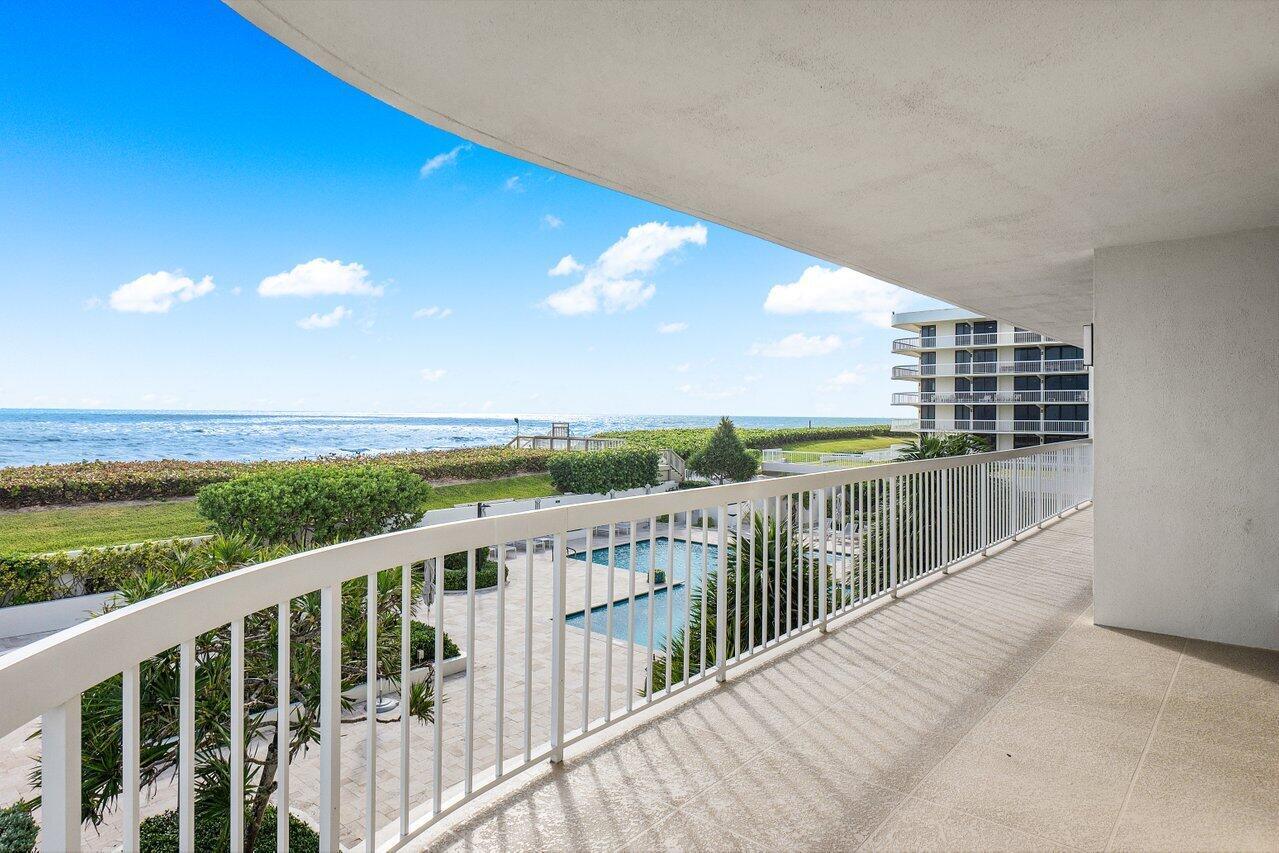 Spectacular Oceanfront 3-bed, 3-full bath home offers expansive 40+ foot terrace. This rarely available corner apartment has Gorgeous waterfront vistas and a spacious layout.This is the best priced 3 bedroom condo in a luxury building.The Meridian offers a complete restoration with new impact windows and doors, new roofs, and balconies. Enter the double-width living/dining room with floor-to-ceiling impact windows and sliding glass doors. The over-sized 3-bedroom floor plan has a great flow. Updated granite kitchen and baths, full laundry.The Meridian has an elegant pool and hot tub, a private sandy beach, 2 tennis courts, a fitness center, guard house, on-site manager, indoor parking and EV charging stations. Close to the Four Seasons, the Par-3 Golf Course and Worth