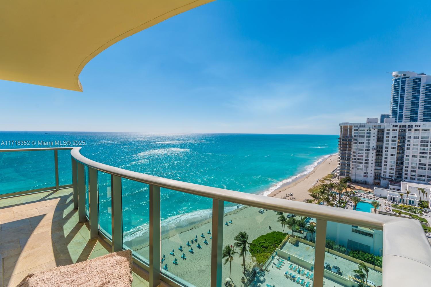 Experience this spectacular modern, completely remodeled 2 BD residence, offering direct ocean views. Enjoy large wraparound balcony where you can soak in the breathtaking ocean scenery. Hurricane-proof windows will provide peace of mind. Open-concept kitchen features a Calacatta island and high-end appliances, perfect for entertaining or enjoying a quiet meal with the ocean as your backdrop. Spacious walk-in closets offer ample storage space. The Wave- one of the finest buildings on the beach offers Resort-style pool deck featuring lush palm trees, soothing fountains, a Jacuzzi, Gym overlooking the ocean. Complimentary beach services. Great for investors or those seeking a vacation home. Rent up to 4 times per year. Pet-friendly building. Perfect location!