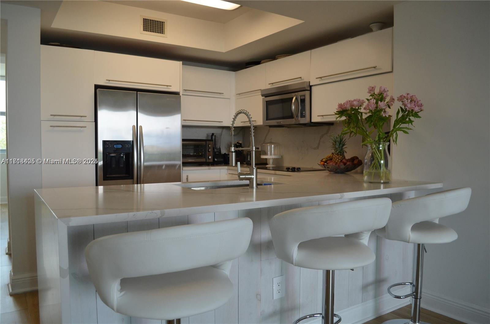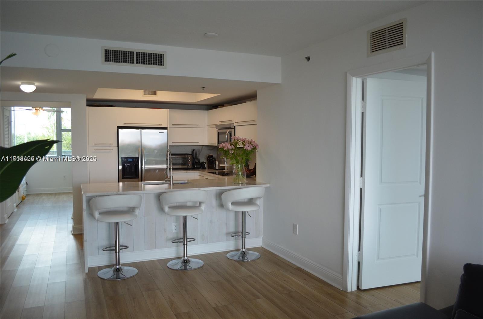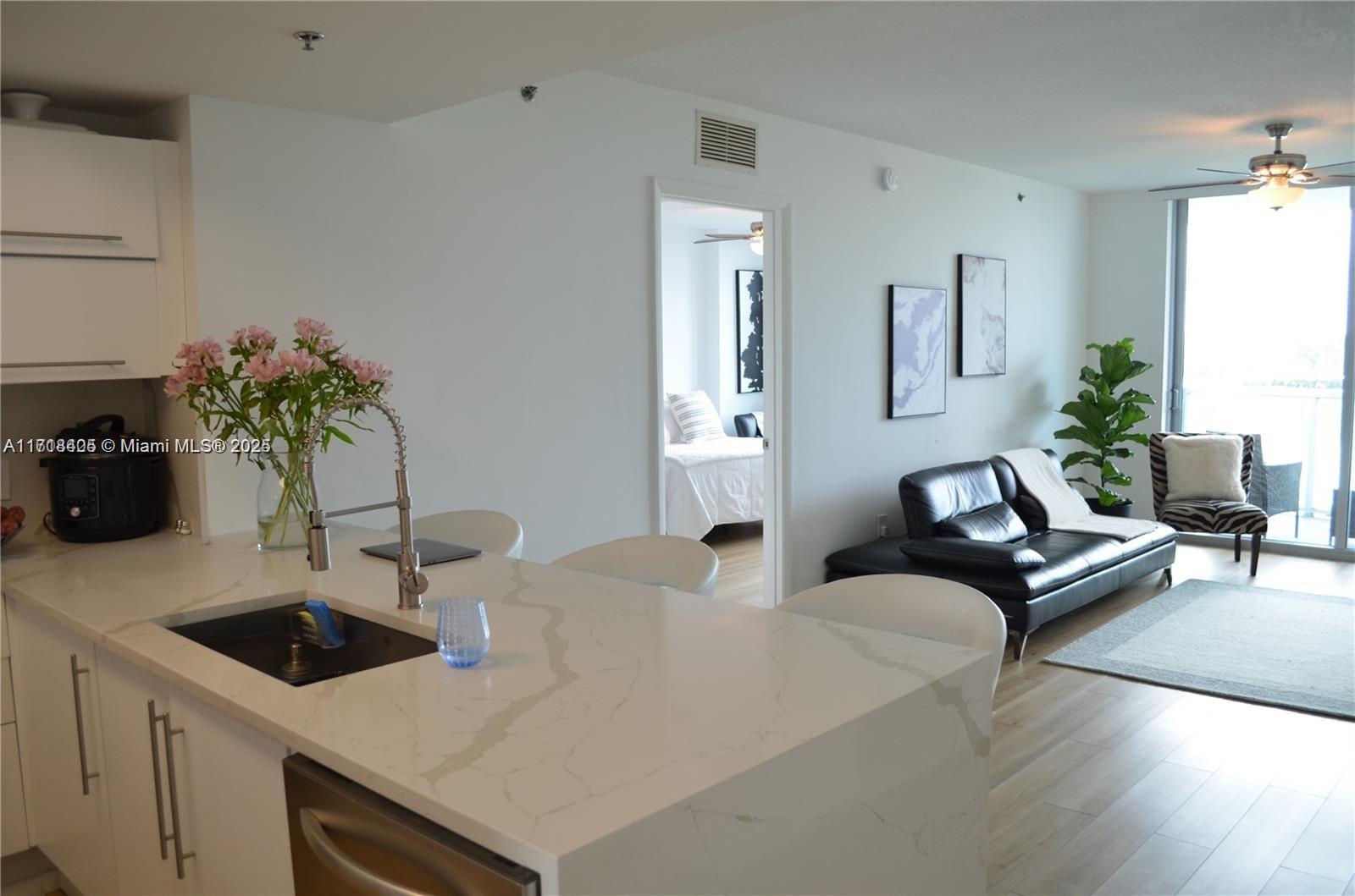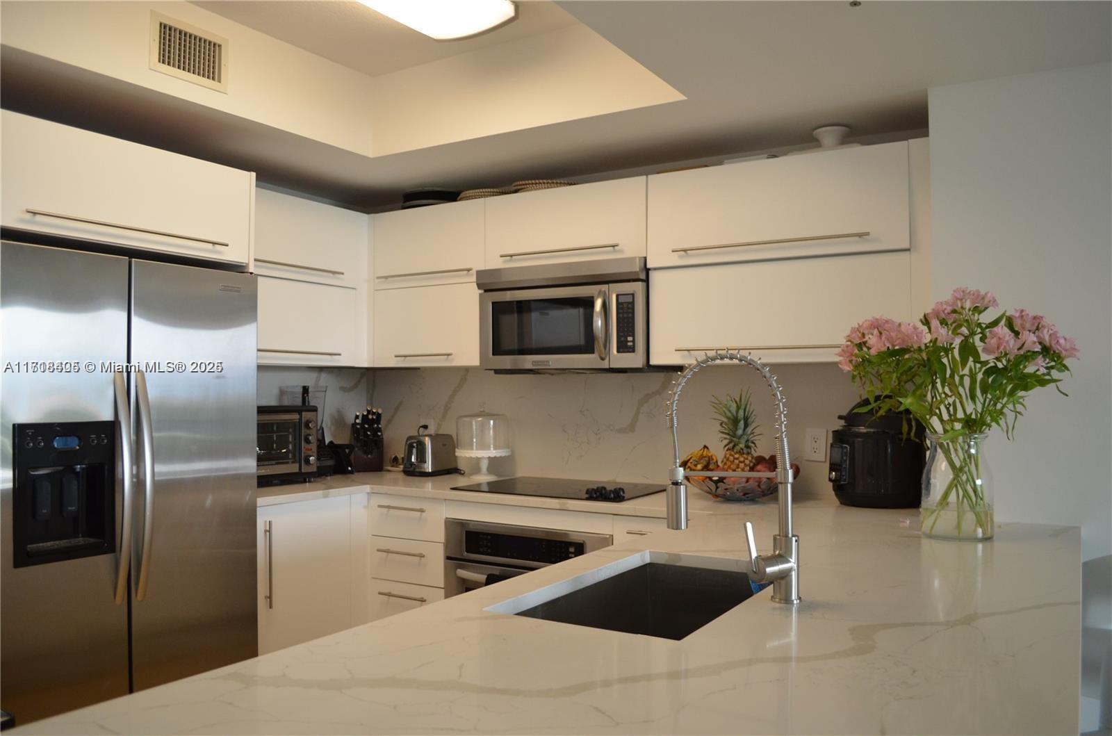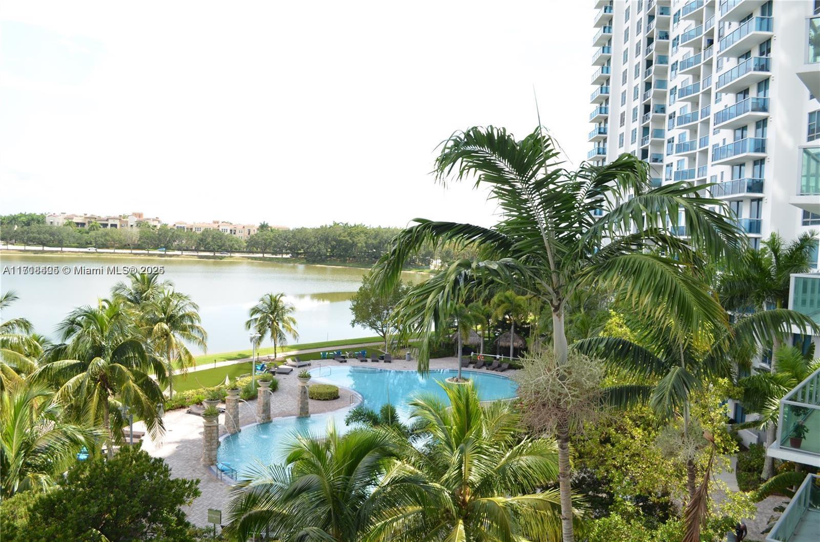 Beautiful 2/2+Den in the prestigious TAO high-rise. 2 parking spots. Bright and open floor plan with exceptional luminosity through its large windows. Conveniently located on the 5th floor, with amazing views both in front and back of the building, including the lake, large pool, garden, and tennis courts. Newer kitchen with SS appliances, new SS sink, and new white granite countertops ideal for entertaining. Newer LVP floors and freshly painted. Its resort-style amenities include a fitness center, tennis courts, lagoon-style pool, jacuzzi, BBQ grills, children's beach area, recreation lounge, and much more. TAO is located across Sawgrass Mall, with easy access to shopping and restaurants. This is the perfect place to enjoy a comfortable and modern lifestyle. Welcome home!