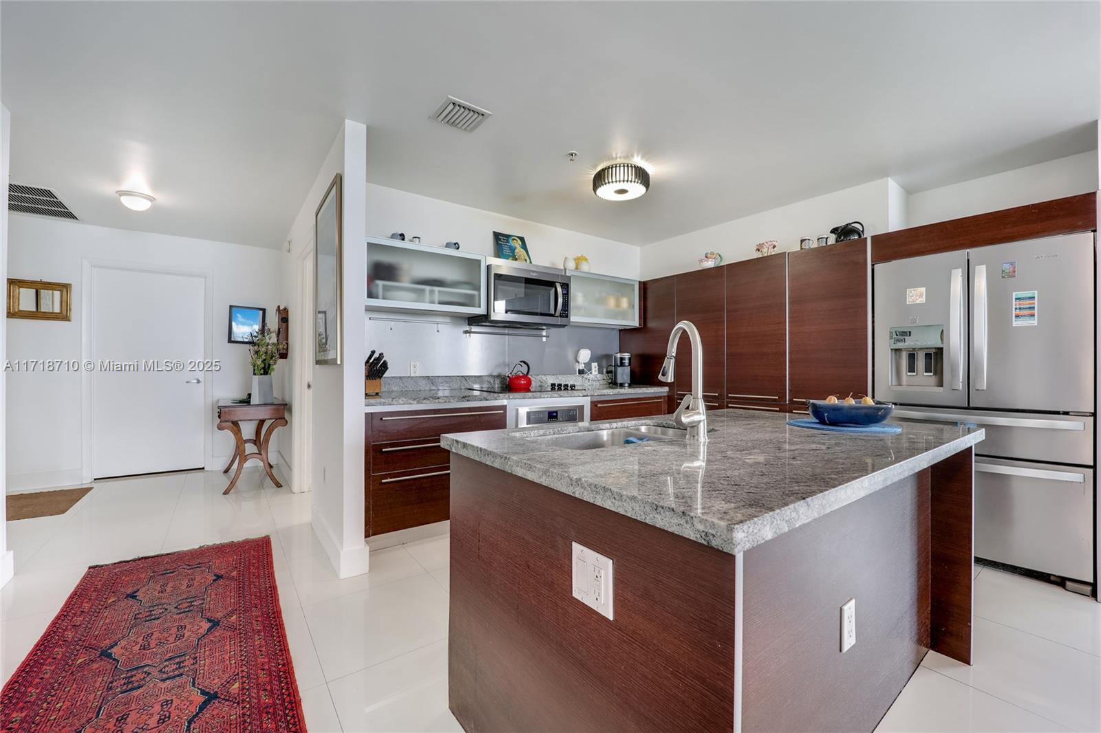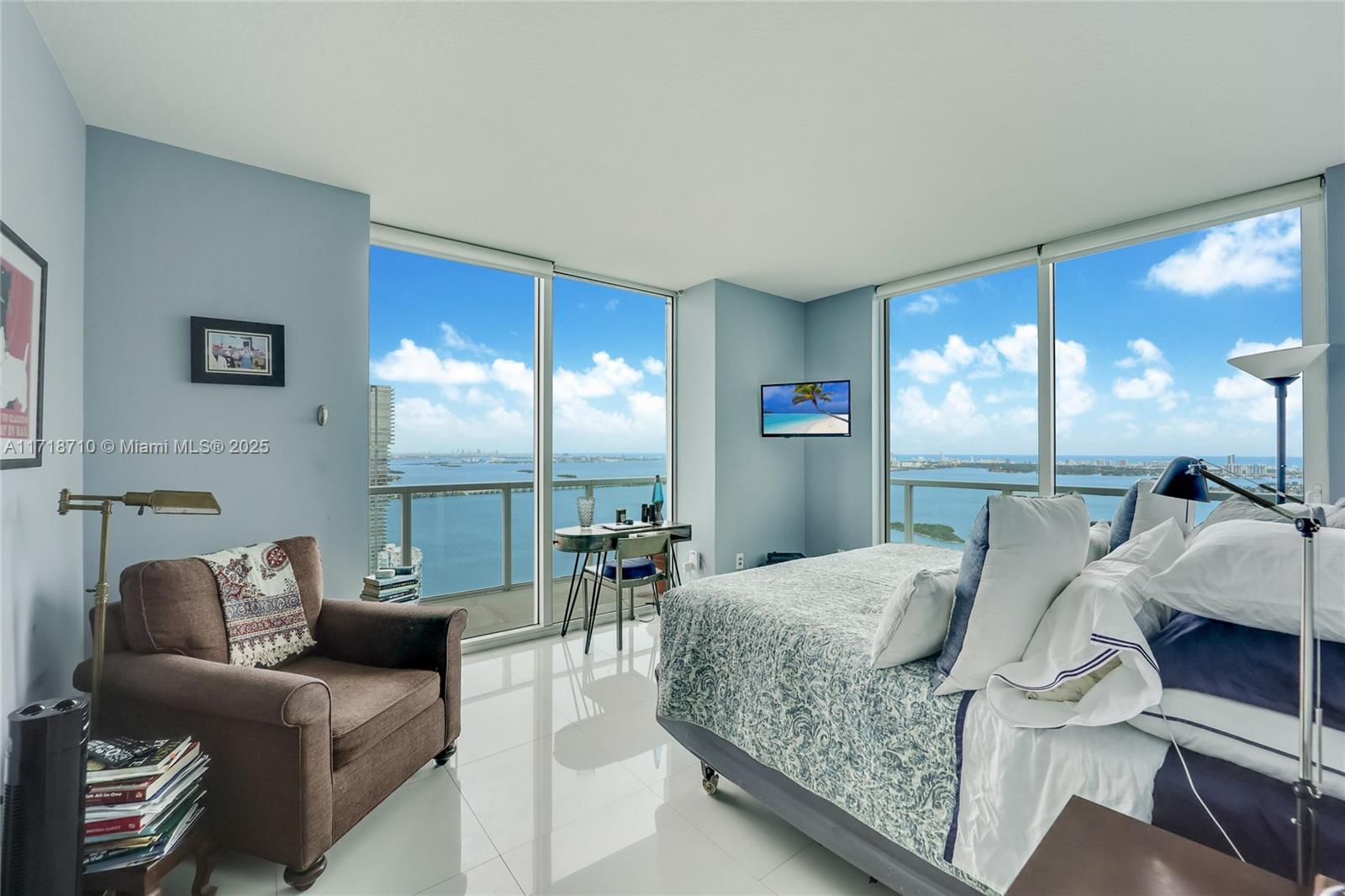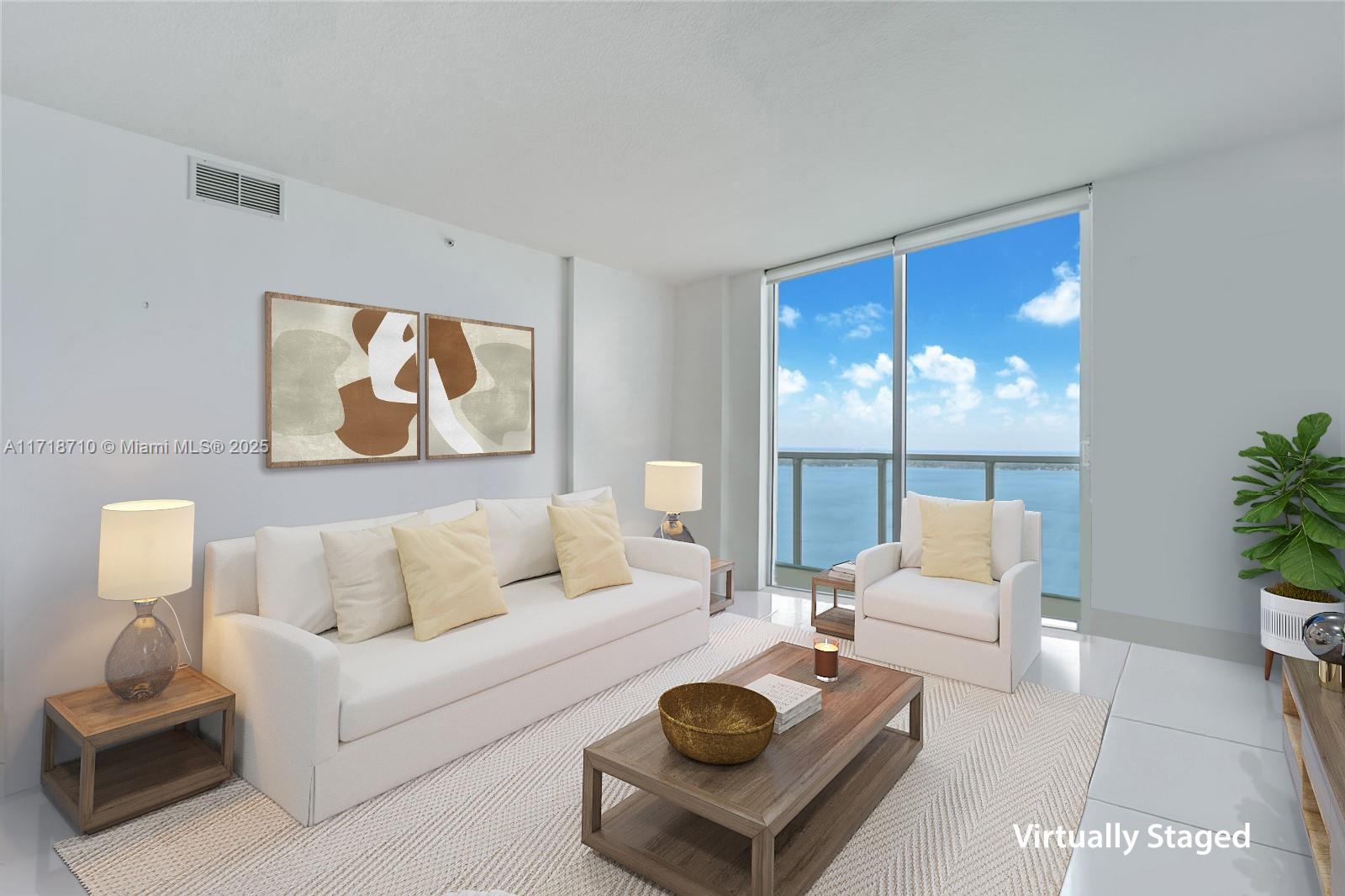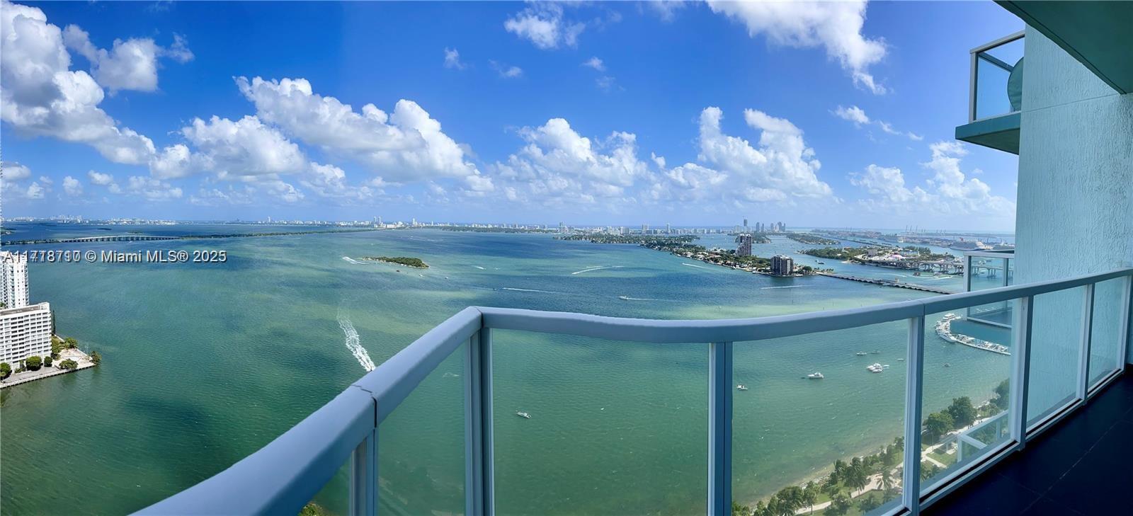 Best Priced! This is a rare opportunity to own a highly coveted, high-floor unit in the desirable 02 line of the South Tower. This 2-bedroom freshly painted and updated residence features en suite baths, a powder room and brand-new SS appliances as well as new granite kitchen counters and an updated powder room. This incredible condo offers sweeping, unobstructed views of the ocean and bay, along with total privacy and two expansive balconies. Situated directly across from Margaret Pace Park, the location is perfect, with easy access to shopping, dining, and entertainment. The building provides exceptional amenities, including a two-story entertainment room with water views, east and west pools, a fitness center, front desk service, and valet parking.