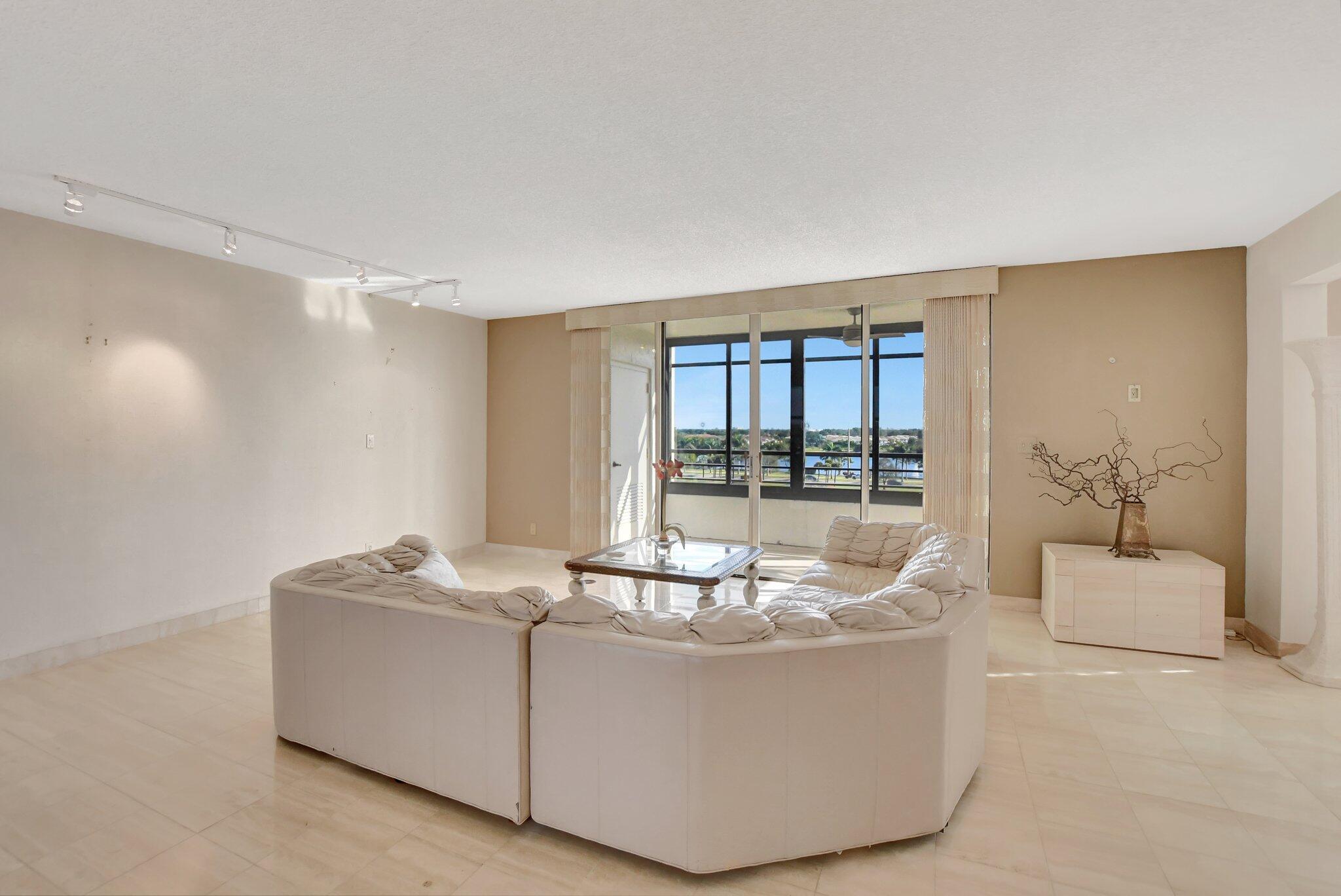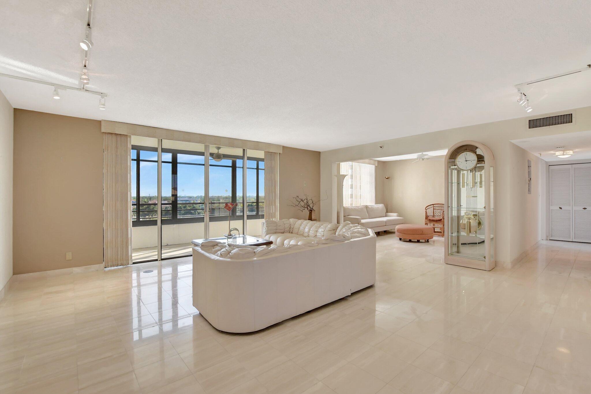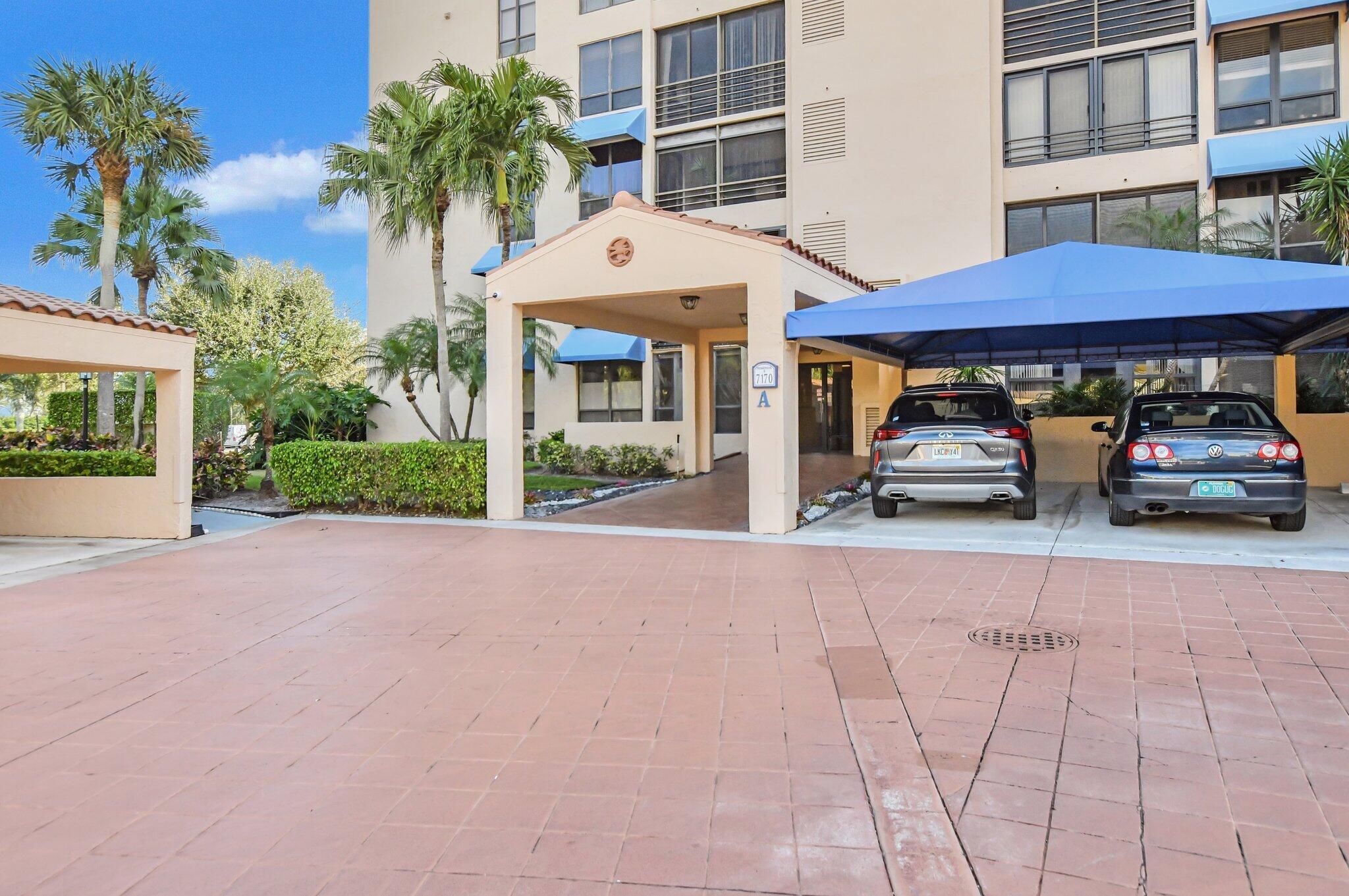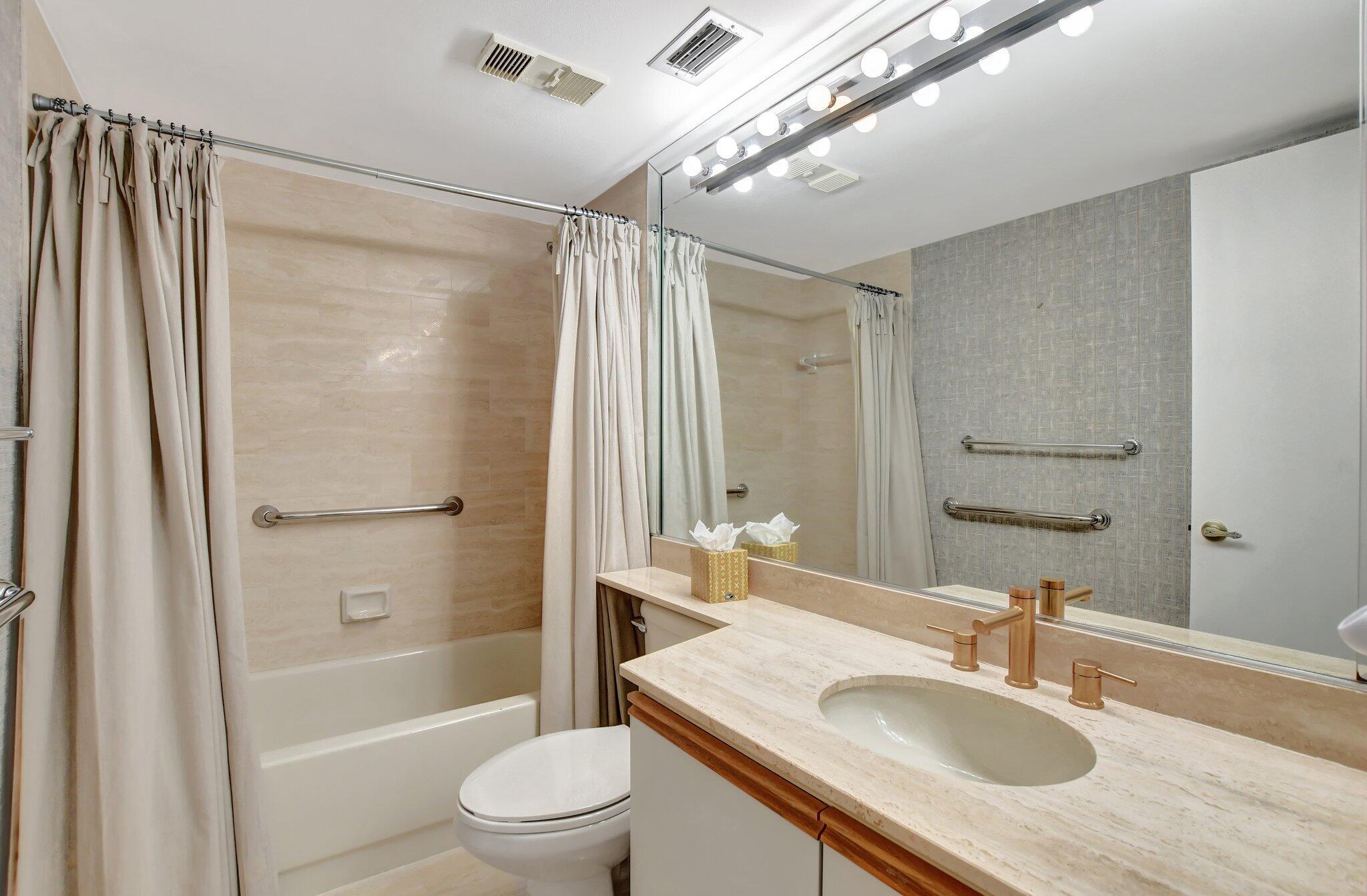 Highly desirable Brittany model on a high floor with stunning golf and water views now available in Promenade at Boca Pointe! The open kitchen has been beautifully updated with white cabinets, stainless steel appliances, custom counters, and a stylish backsplash. Both patios are glass-enclosed, with hurricane glass on the back patio and a storage closet. Marble floors adorn the living areas, while the bedrooms feature cozy carpet. Recent updates include A/C and water heater replacements within the last 5 years. The spacious primary suite offers a large walk-in closet and an additional storage closet. Additional features include plantation shutters, a half bath, an open den or 3rd bedroom, and one assigned covered parking space. Enjoy the community pool, clubhouse, and on-site manager!