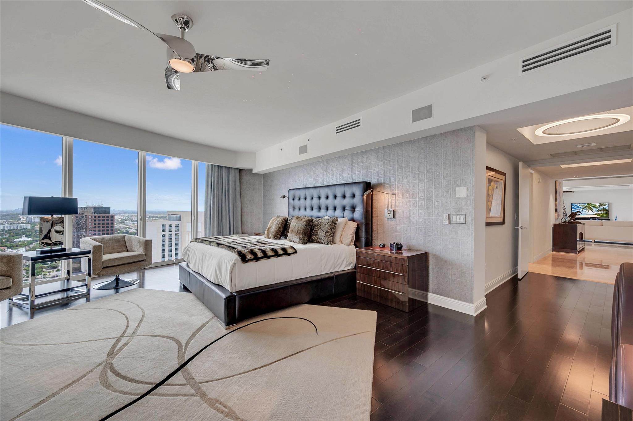 Beautifully FURNISHED modified 5th Ave model w/ 3 bed, 3.5 bath, family room & office/den. Floor-to-ceiling windows illuminate the sprawling floor plan w/North and South balconies. Recent improvements include- fresh paint, polished Travertine floors, 2 Bosch air systems(2022), new vanities, all south windows tinted, upgraded sound system, custom metal/glass doors in private elevator vestibule. Situated in the heart of Las Olas' walkable lifestyle, easy access to the city's cultural, dining, shopping, entertainment scene. Building has undergone dramatic enhancements with contemporary design for modern luxury living. High-end amenities, state-of-the-art fitness center, a resort pool, concierge. - Assessments paid, fully reserved. Offered at $689 a SF FURNISHED