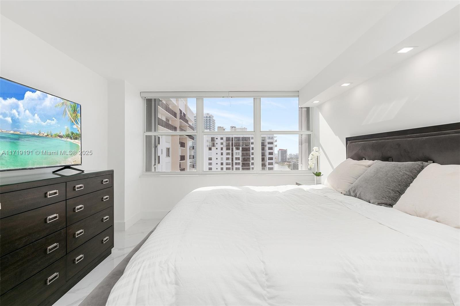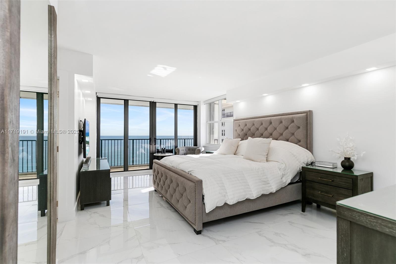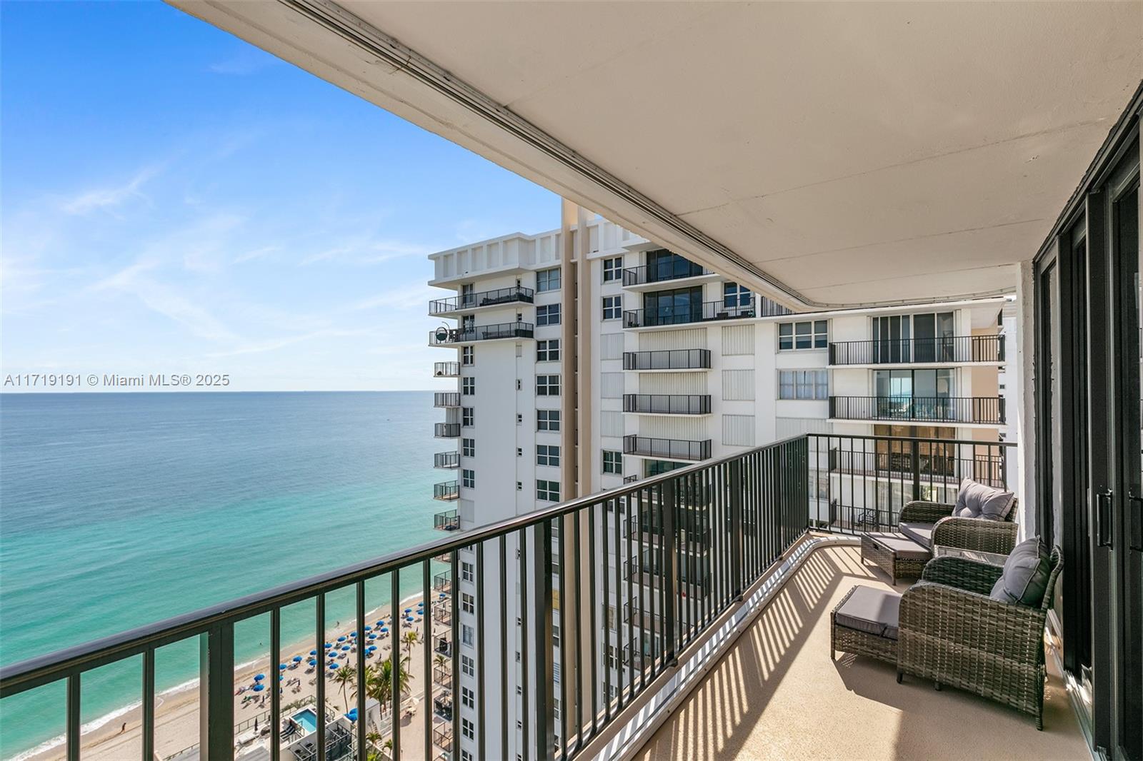 One of a kind, stunning and bright, spacious oceanfront condo! Fully renovated 2-bedroom, 2-bath with direct ocean views. Open kitchen, quality finishes, upgraded bathrooms, oversized tile, and stylish light fixtures. Impact windows, electric shades, and a large balcony— perfect for ocean breezes. Sold turnkey with furniture and electronics—move in, relax! Located in The Quadomain, a premier resort community. Enjoy beach service, 24/7 security, two pools, two fitness centers, a restaurant, fitness classes, beauty salon, business center, and more. This oceanfront gem is ready to become your home!