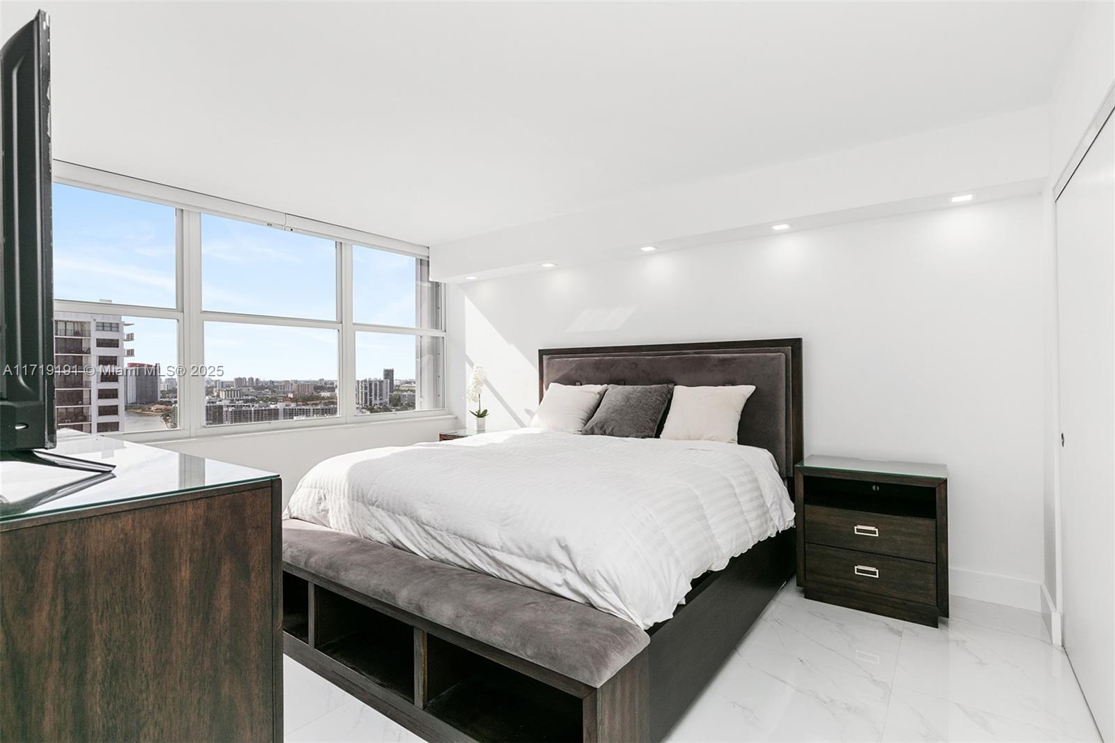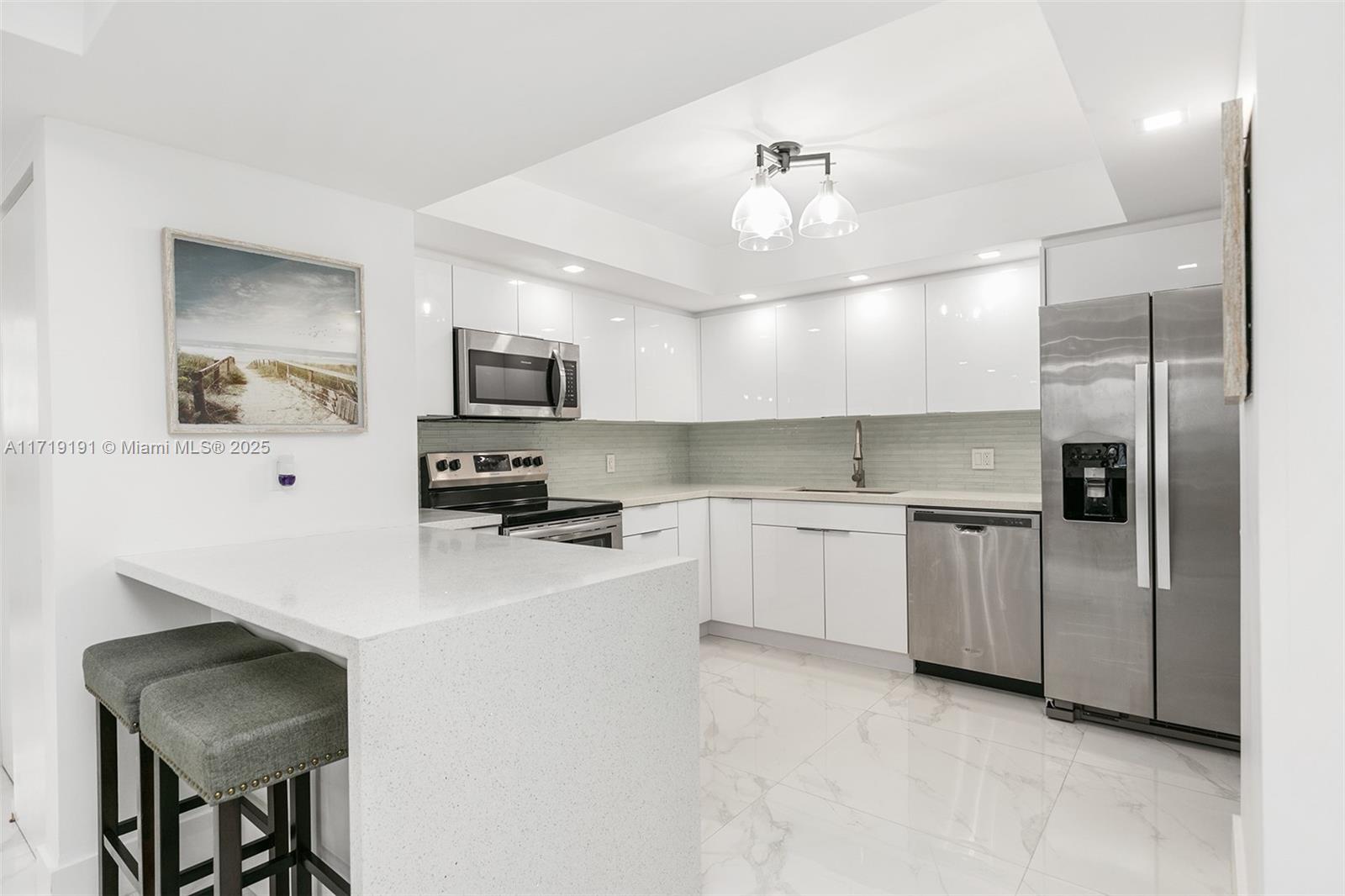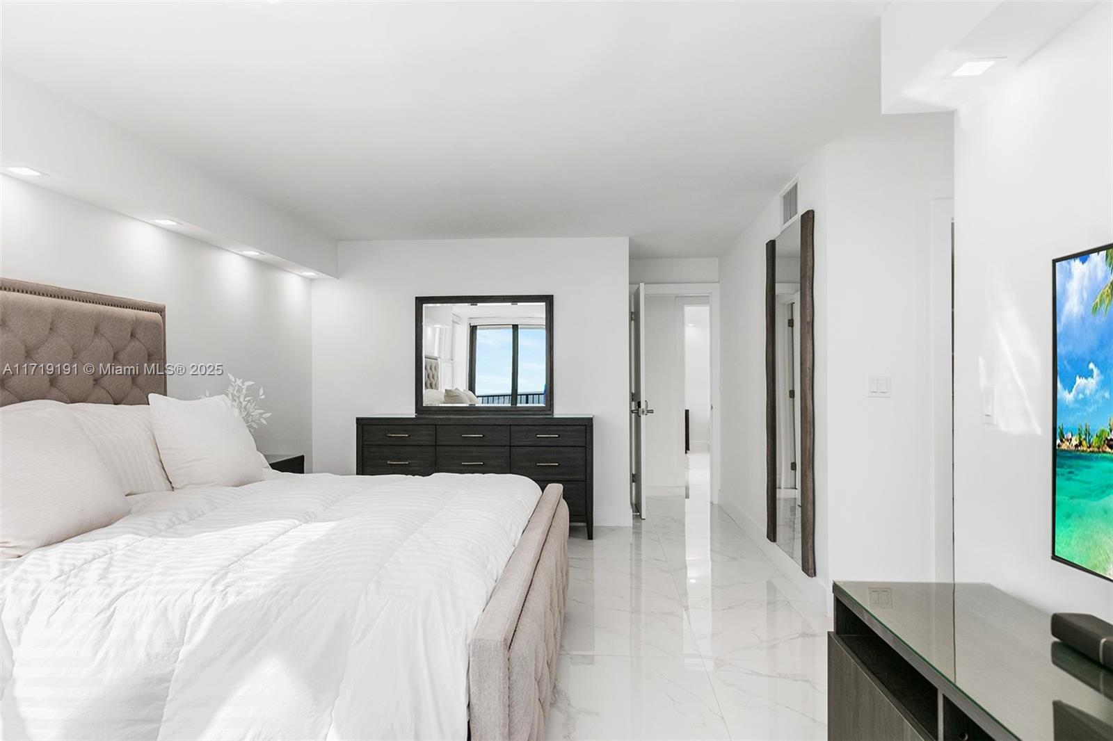 One of a kind, stunning and bright, spacious oceanfront condo! Fully renovated 2-bedroom, 2-bath with direct ocean views. Open kitchen, quality finishes, upgraded bathrooms, oversized tile, and stylish light fixtures. Impact windows, electric shades, and a large balcony— perfect for ocean breezes. Sold turnkey with furniture and electronics—move in, relax! Located in The Quadomain, a premier resort community. Enjoy beach service, 24/7 security, two pools, two fitness centers, a restaurant, fitness classes, beauty salon, business center, and more. This oceanfront gem is ready to become your home!