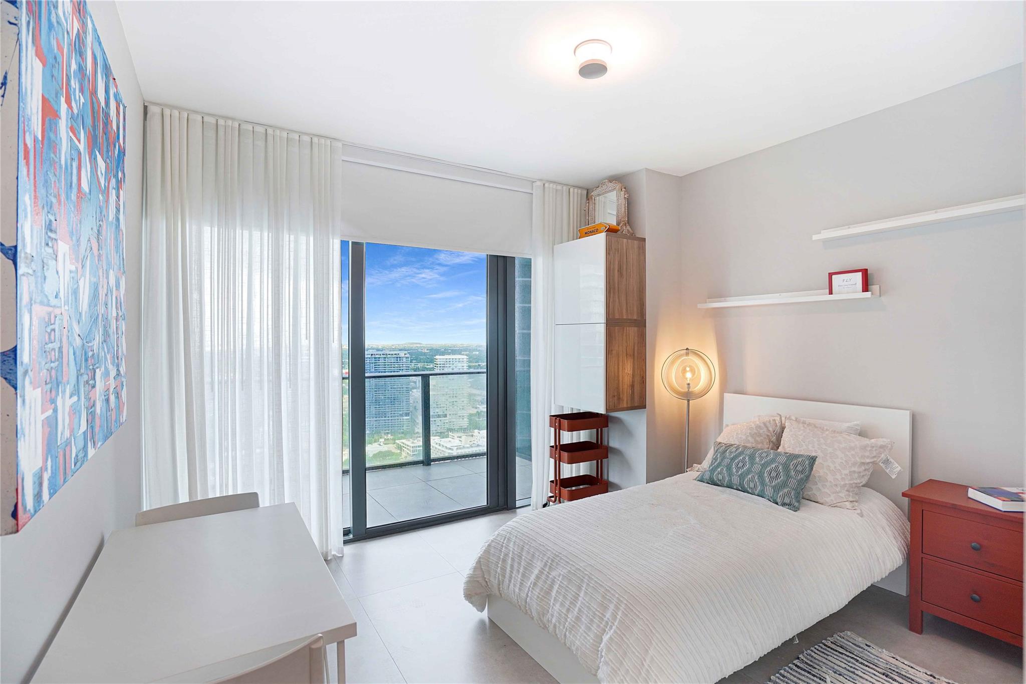 This condo is the best in the building, featuring the extra value of 1 parking space on the SECOND FLOOR and larger balcony. The unit includes three full bedrooms, a Den, and 3.5 bathrooms. The upgrades include an eat-in kitchen island, custom doors, ample cabinets for storage, built-in closets, recessed lighting with dimmers throughout, and electric blinds in every room. Breathtaking views from every room! Residents can enjoy a range of amenities such as sauna, spa, three pools (one lap), gym, theater, and more, all within an incredible community that also includes shops and restaurants, located in the heart of Miami just minutes away of Miami Beach, Design District, Wynwood, Midtown and the Miami's Health District.