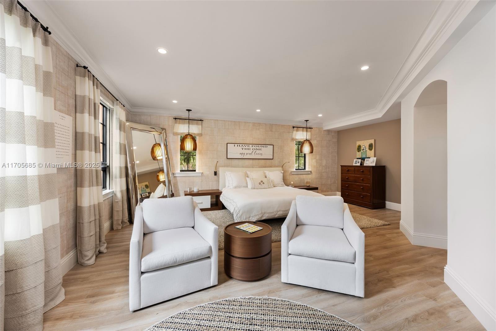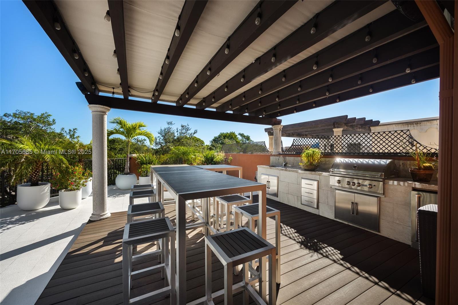 This stunning villa, nestled in the exclusive Cloisters on the Bay, offers the ultimate in luxury living. Steps from the best of the Grove, this meticulously redesigned residence underwent a $1M renovation—every inch radiating elegance and charm. The main level seamlessly merges generous living and dining areas, a refined office, and a dream MiaCucina eat-in kitchen with top-tier finishes. Upstairs, three beautifully appointed bedrooms feature ensuite baths. Guests enjoy privacy in a separate suite with bedroom, kitchenette, bath, and living area. A rooftop oasis with summer kitchen sets the stage for unforgettable entertaining. Additional highlights include a brand-new elevator, seven parking spaces, and community clay tennis court, heated pool, and clubhouse.