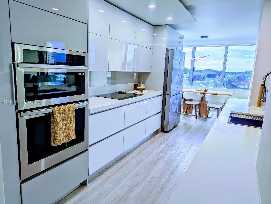 Unique floor plan fully renovated to perfection! Luxury 2/2+den, balcony, open concept living, dining, white quartz kitchen counters, top of the line s/s appliances, decorative fireplace & Ruvati sink. Big master bedroom, walking closets, electric blinds & 2 full baths w/smart toilets. 3rd room w/closet ideal as a small guest bedroom/office. Enjoy amazing views & sunsets of SOBE/Downtown skyline & the bay from this modern, oceanfront building w/floor to ceiling high impact windows, walking distance to Lincoln Rd mall, Faena/Hotel 1 fine dining & vibrant SOBE entertainment. Building includes 24/7 concierge, pool, gym, sauna, social rooms, laundry p/floor, private access to ocean & boardwalk. Quarterly maintenance includes WIFI, cable, hot/cold water, extermination ss & 1 prkng. MUST SEE!!!