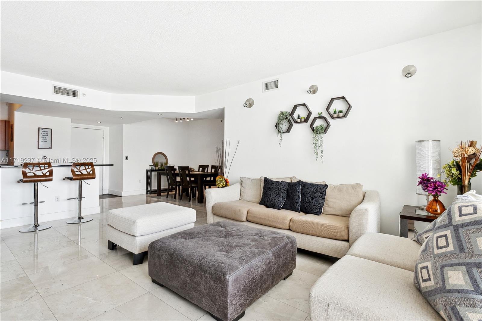 Largest 2 bed |2 bath at the VENTURE EAST condo in Aventura. Spectacular marble floors throughout. Open and modern kitchen with granite counter tops and stainless-steel appliances. Balcony with a relaxing pool view. Custom-built closets. Hunter Douglas window treatment. Washer/Dryer inside the unit. WiFi and Cable are included. One covered parking space plus more spaces available. AMENITIES include: 2 infinite pools with cabanas, hot tub, fitness center, movie theater and lounge for parties. Also: valet parking, 24 hrs security and concierge. Venture East is located in the heart of AVENTURA within minutes to restaurants, shopping, Publix, Walgreens, and much more. Also, to the Aventura Mall. 5’ to Beaches and 10’ to the main highways. Ready to move in.